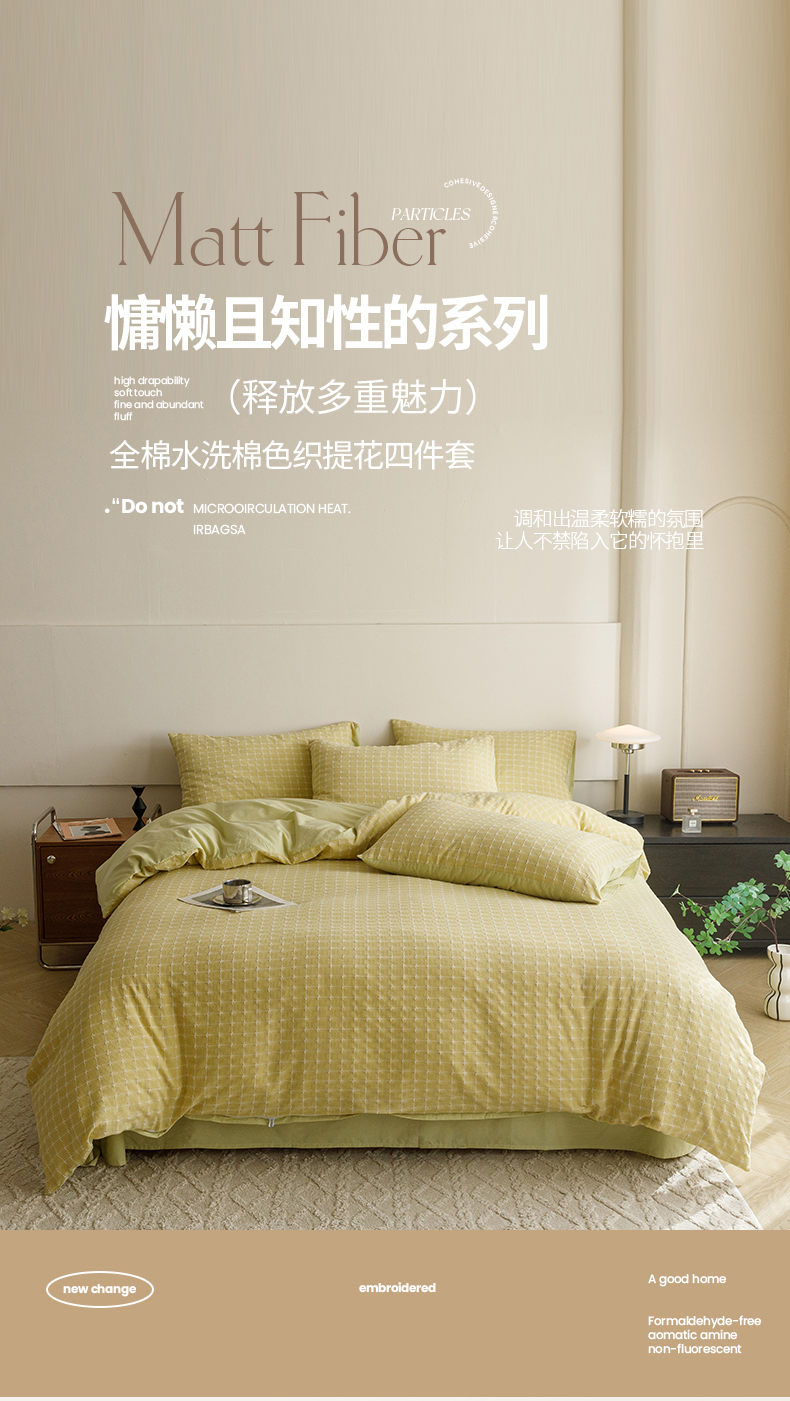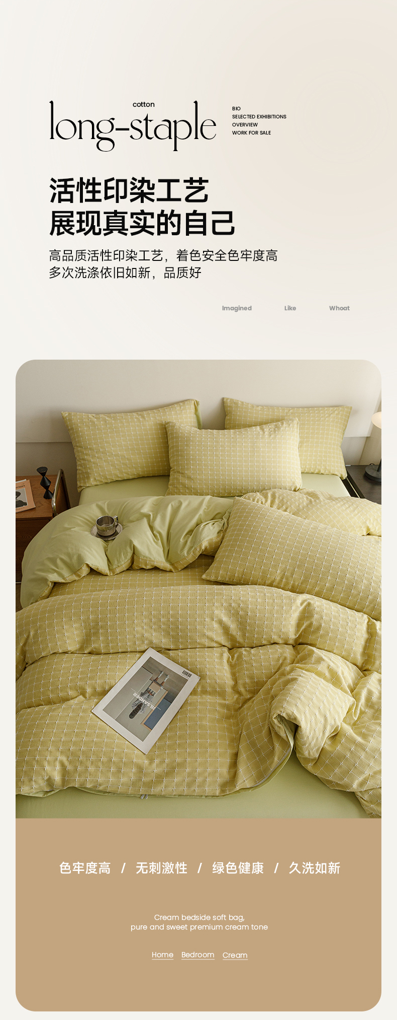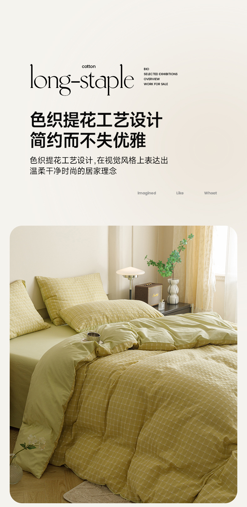商品名称:蜜柚 2024新款全棉色织水洗提花四件套 月光绿