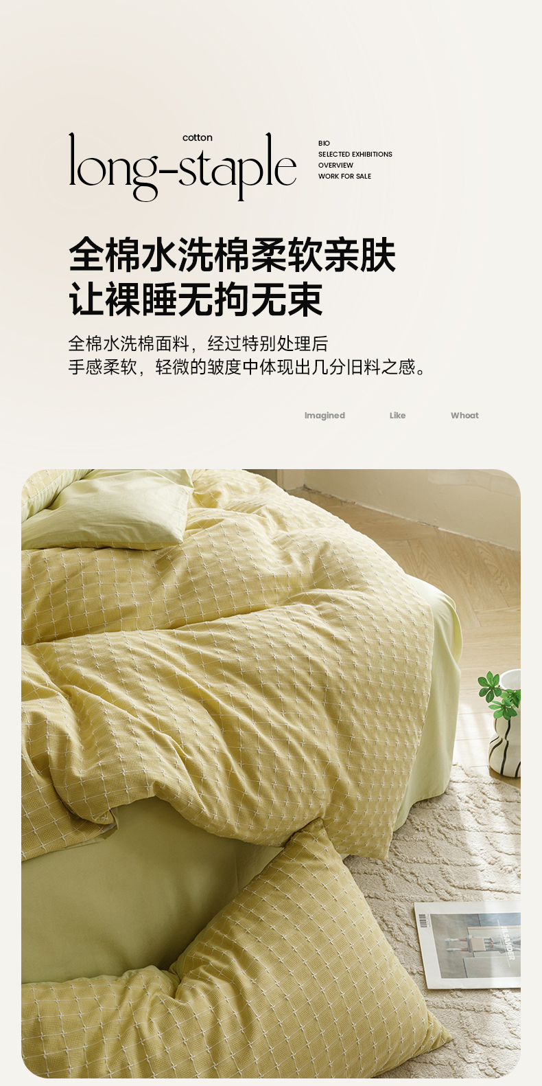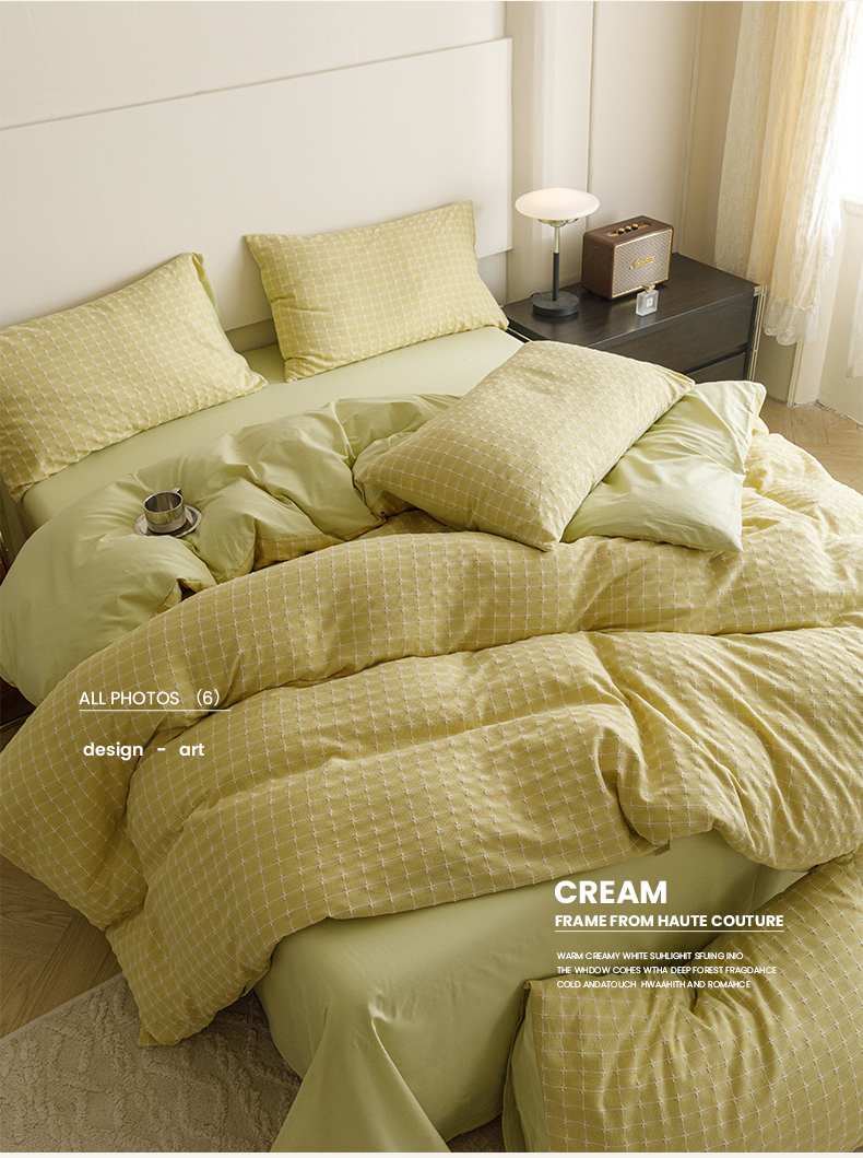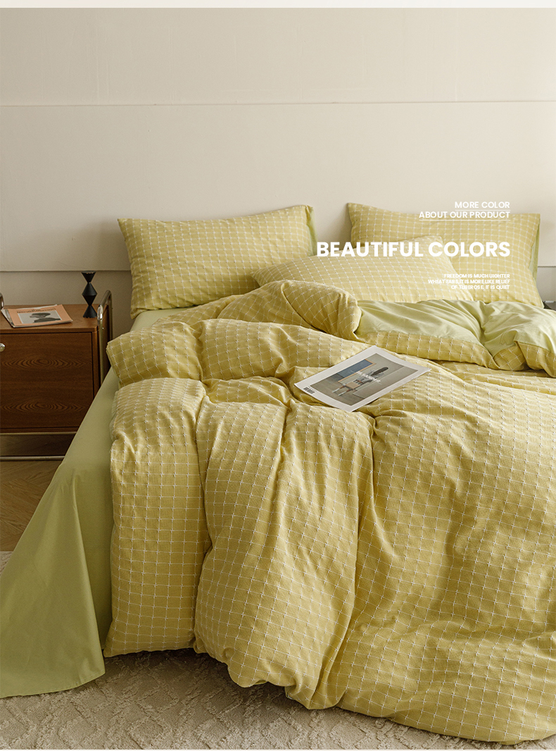 商品名称:蜜柚 2024新款全棉色织水洗提花四件套 月光绿