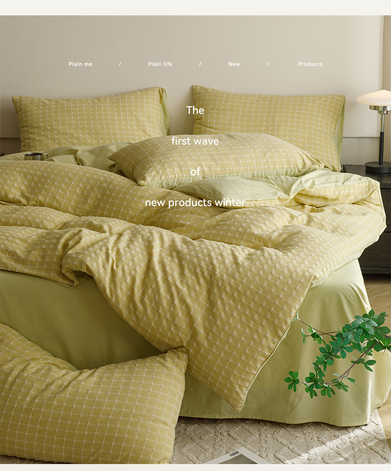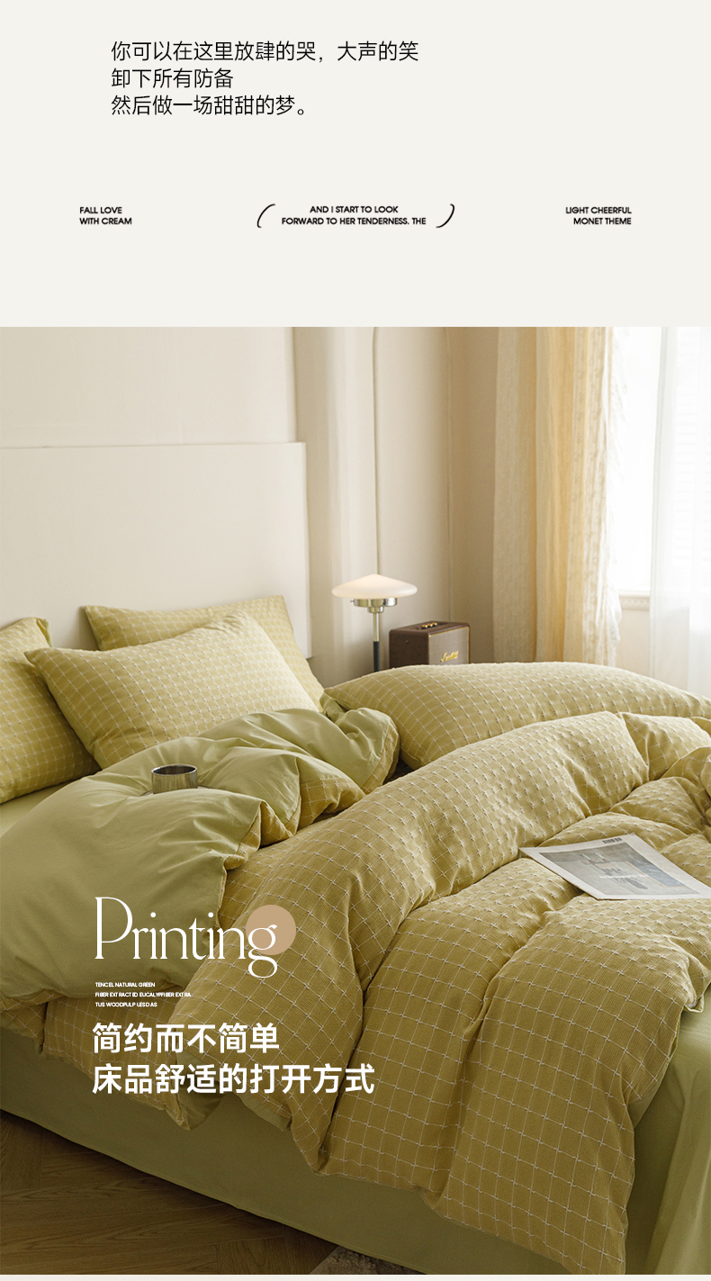 蜜柚 2024新款全棉色织水洗提花四件套 月光绿
