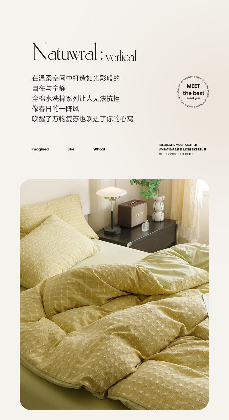 (总)蜜柚 2025秋冬新款色织水洗棉贴布花边款四件套,童趣-浅玉,童趣-卡其,童趣-洋气红
