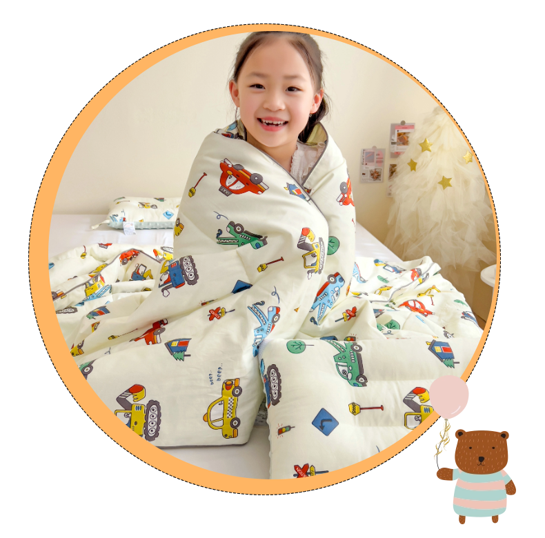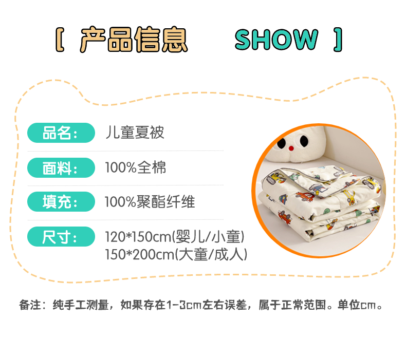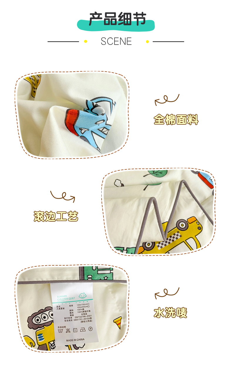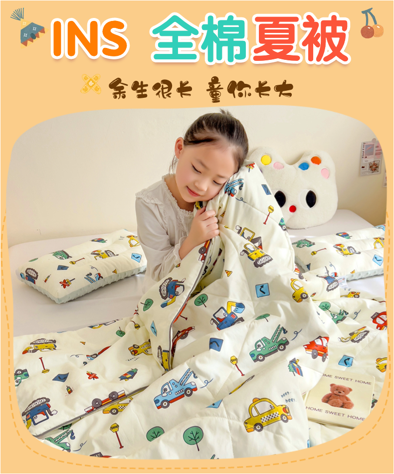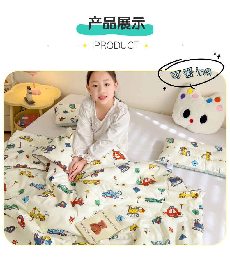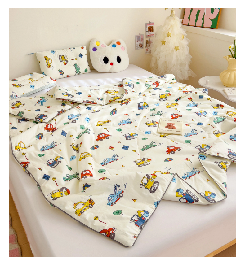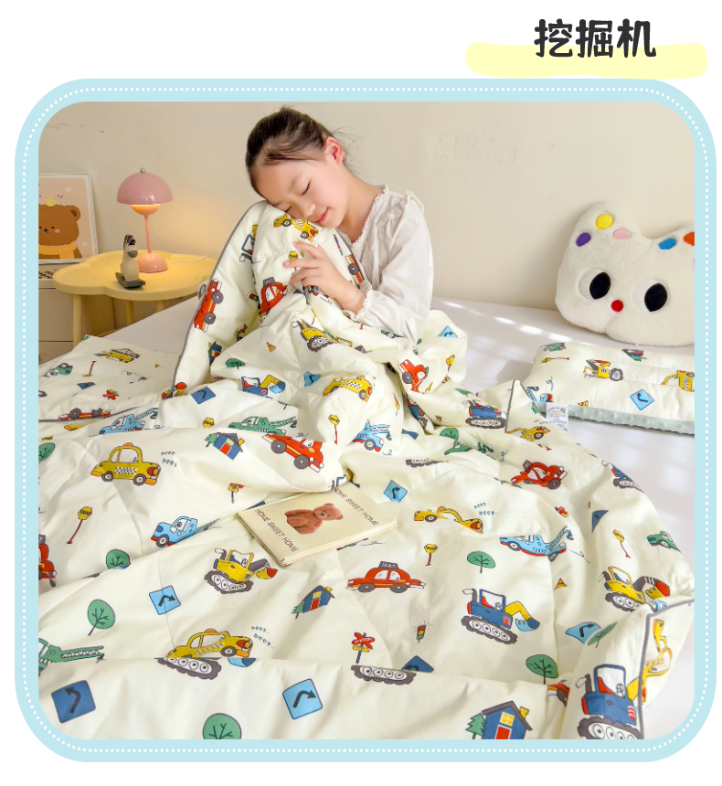 商品名称:十九色 2024新款全棉13372 ins儿童夏被 挖掘机