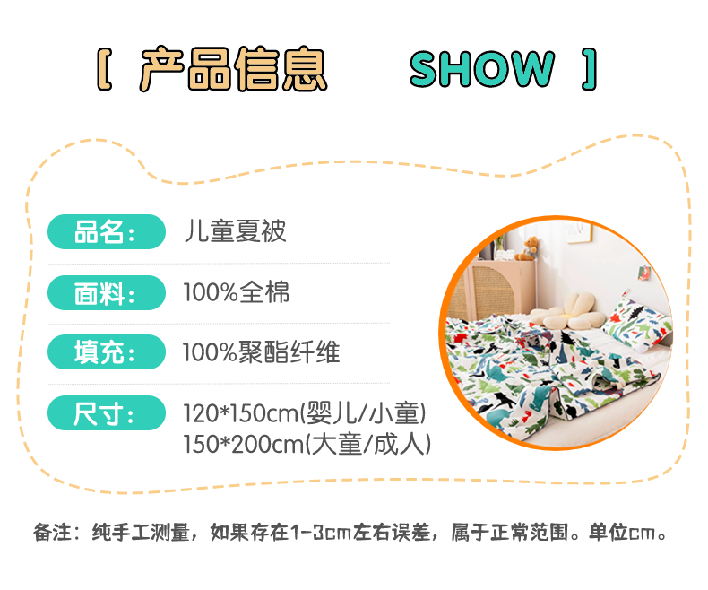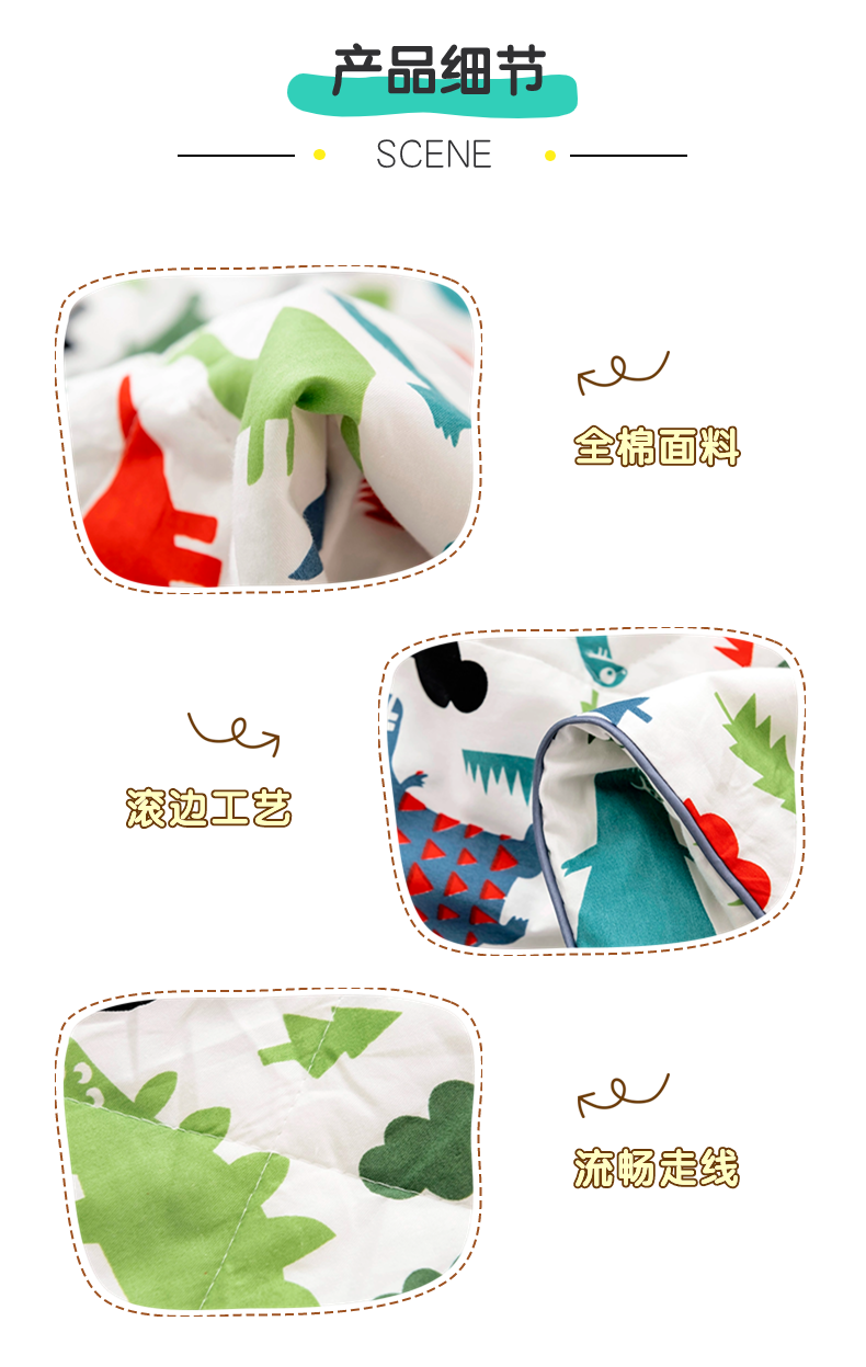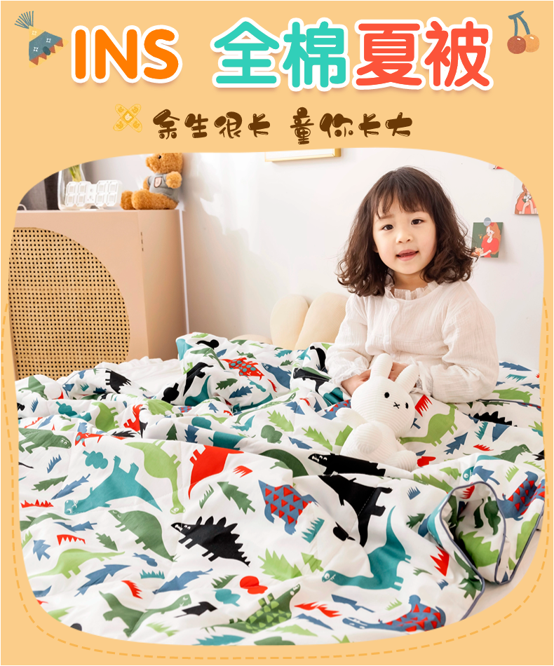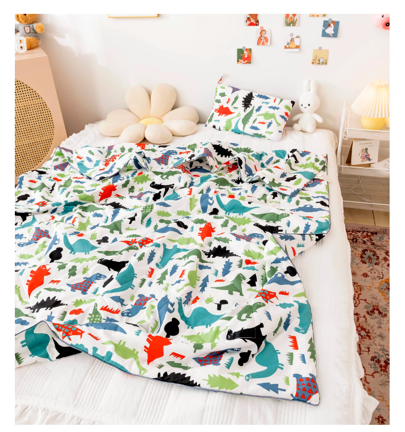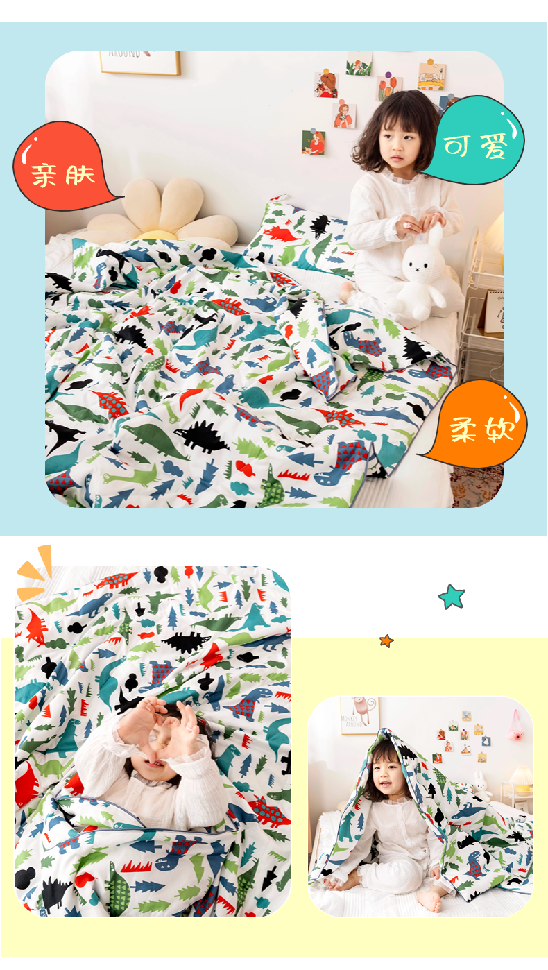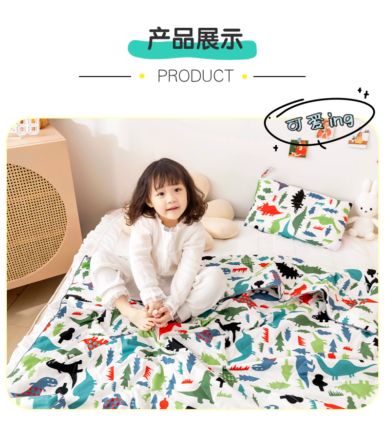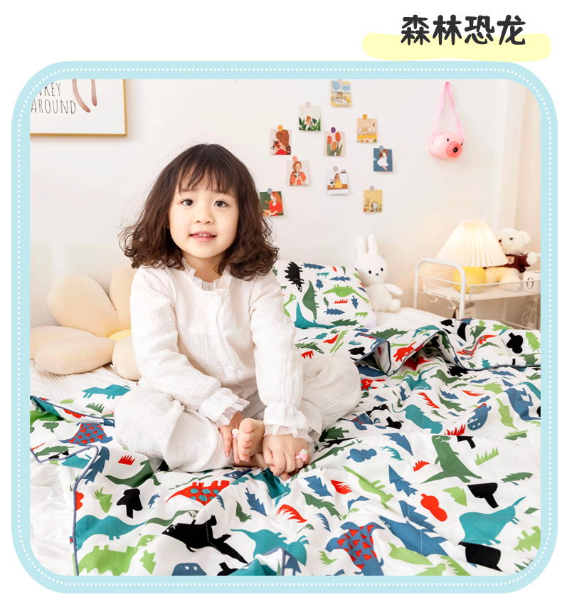 商品名称:十九色 2024新款全棉13372 ins儿童夏被 森林恐龙