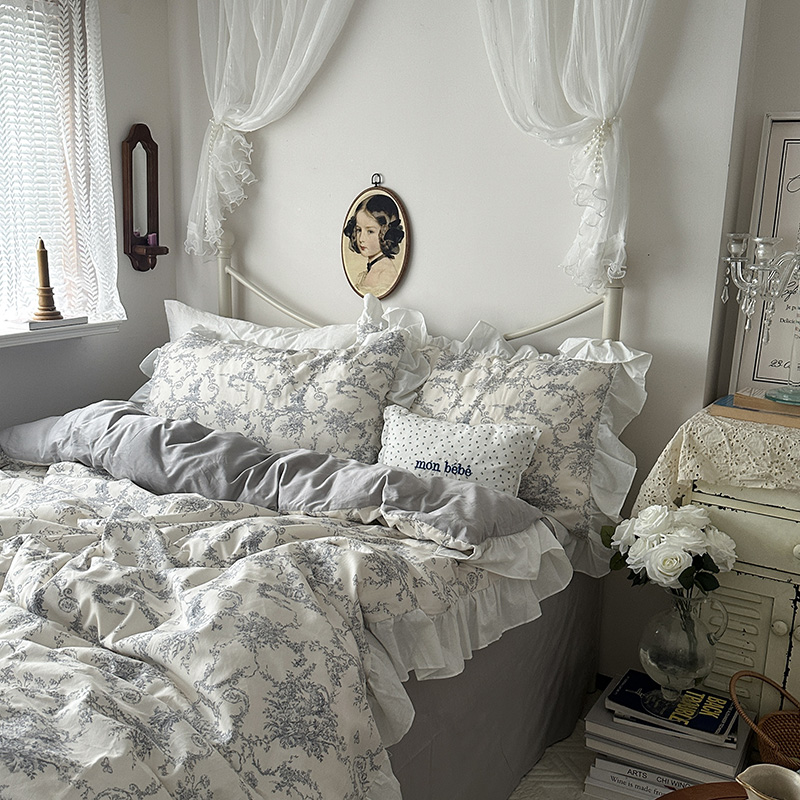 当前位置: 91家纺网 > 商品网购 > 床品套件 > 四件套 > 全棉普通四件套 > 恋恋三季 2024新款40支全棉花边法式浪漫四件套公主请上床系列 月下华尔兹