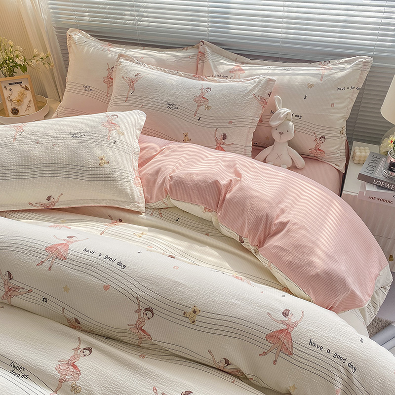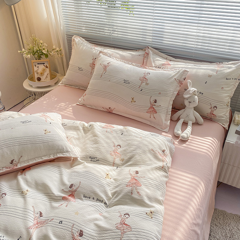 商品名称:寐时代 2024新款A类有氧提花水洗泡泡棉四件套 芭蕾少女