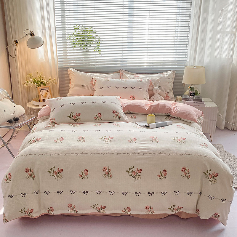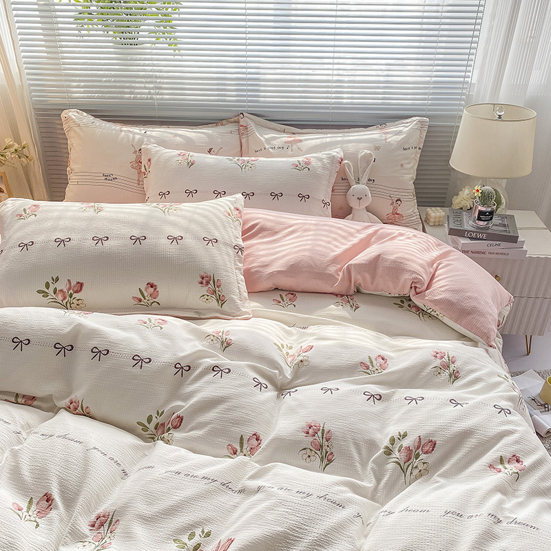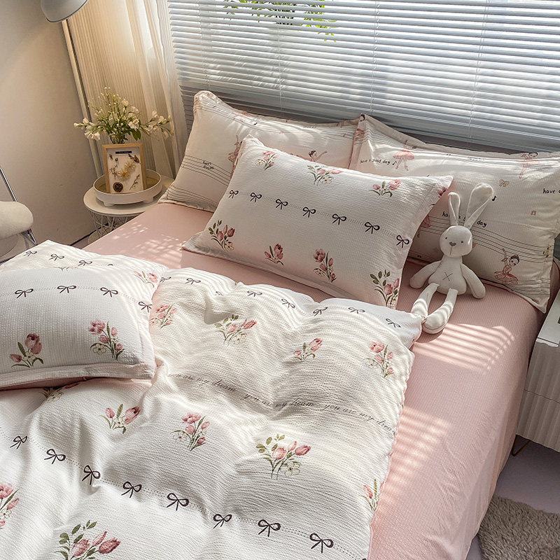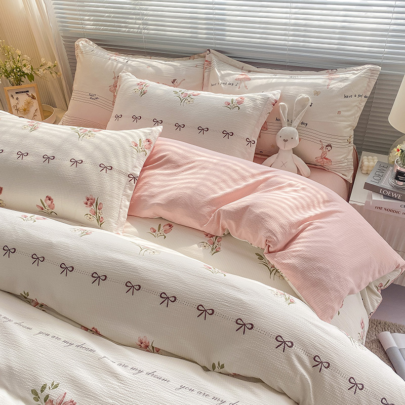 (总)寐时代 2024新款A类有氧提花水洗泡泡棉四件套,心动,安吉拉,安妮,暗香,芭蕾少女,草莓乐园,春意,格子熊,公仔派对,猫咪日记,南法假日,南瓜派对,暖暖,泡泡熊,甜茶,夕颜,小苍兰,小情歌,樱桃熊,紫色浪漫