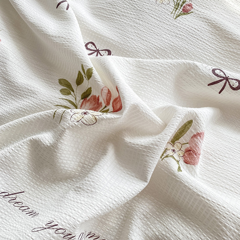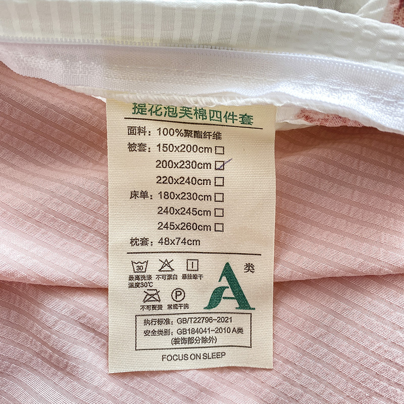 商品名称:寐时代 2024新款A类有氧提花水洗泡泡棉四件套 小情歌