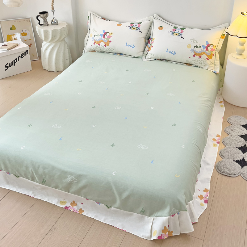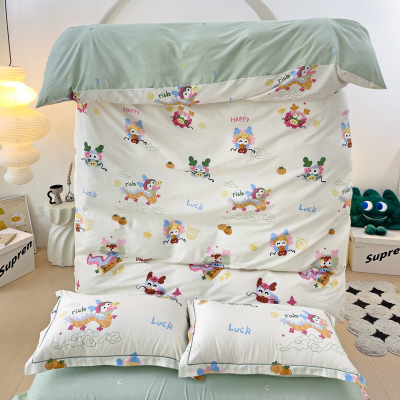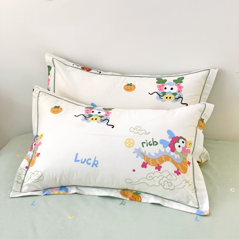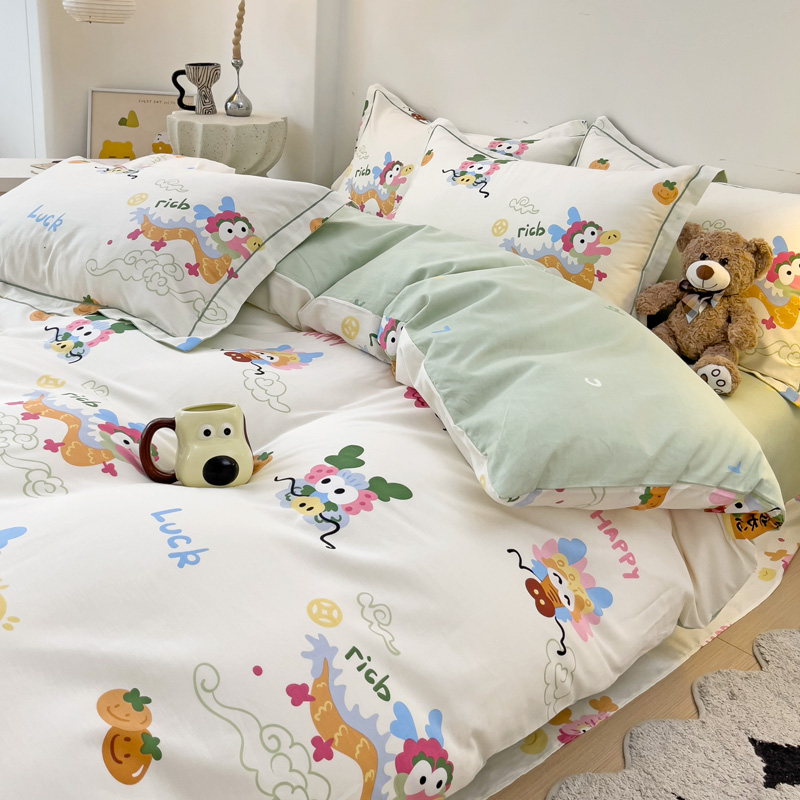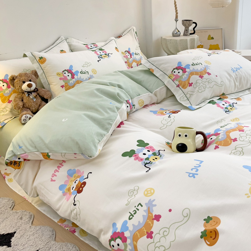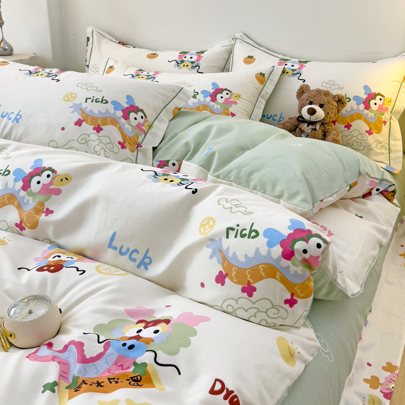 云锦家居 2024新款13070纯棉印花吊边款一字绣四件套 财运长龙