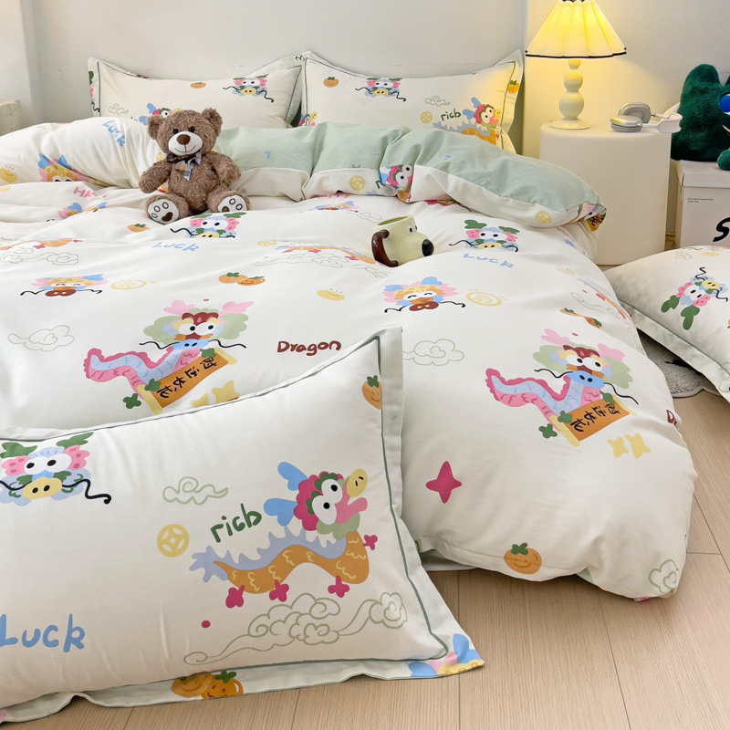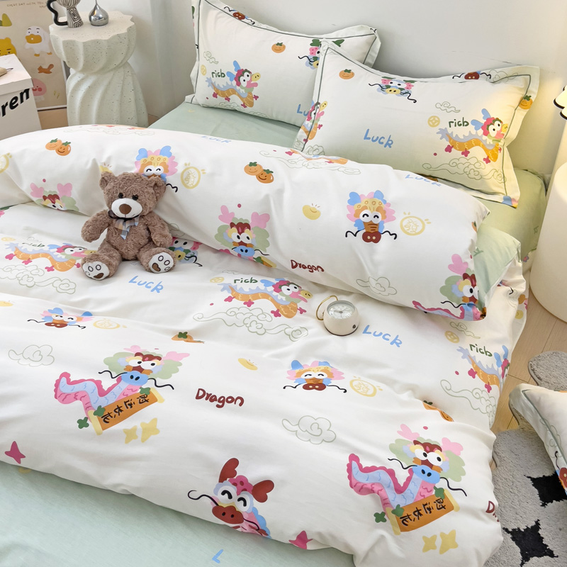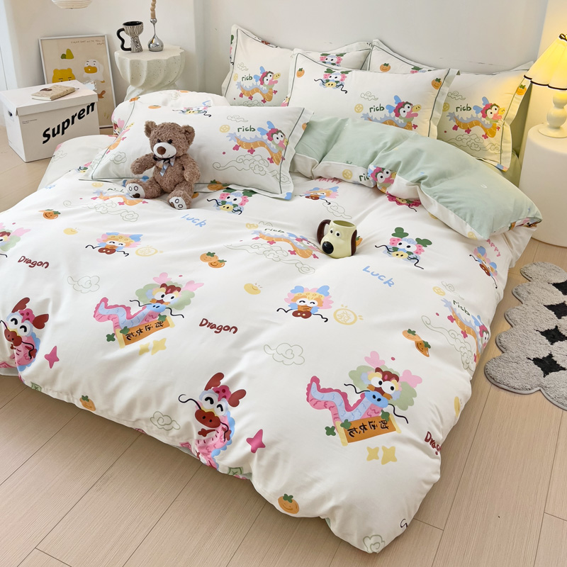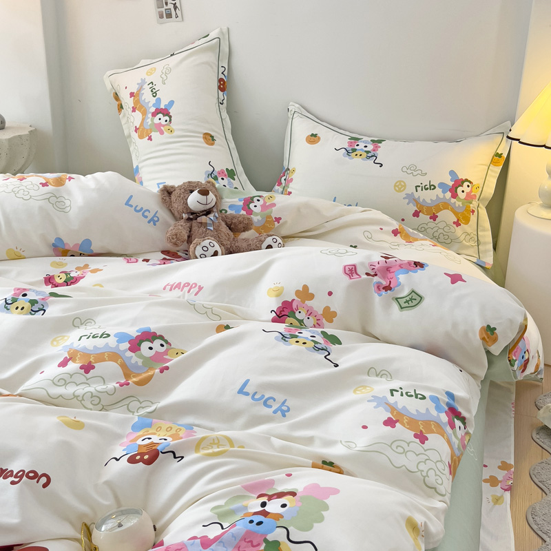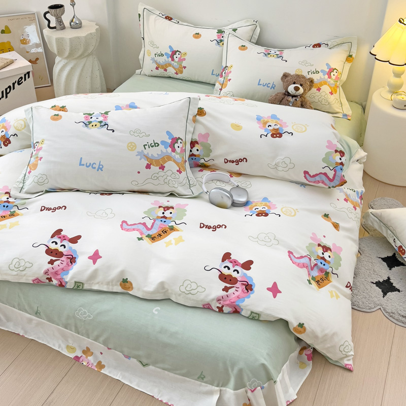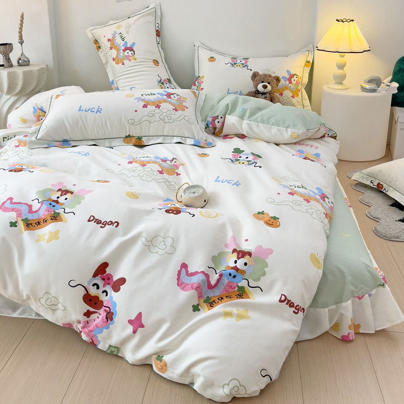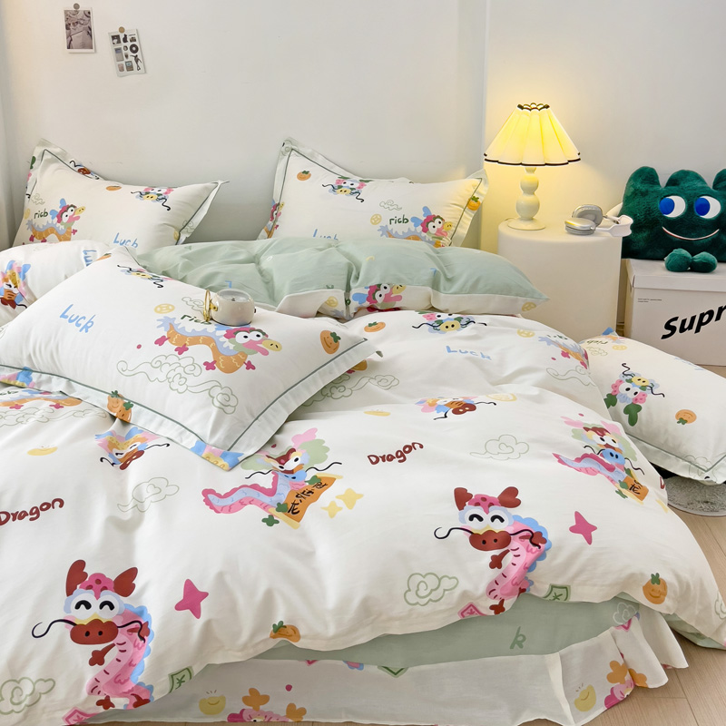 商品名称:云锦家居 2024新款13070纯棉印花吊边款一字绣四件套 财运长龙