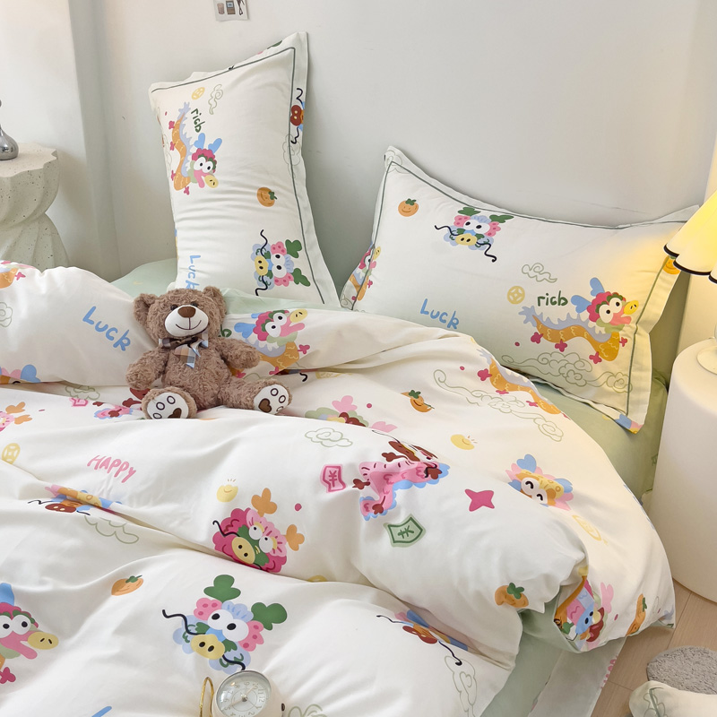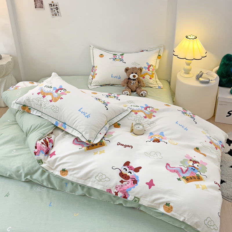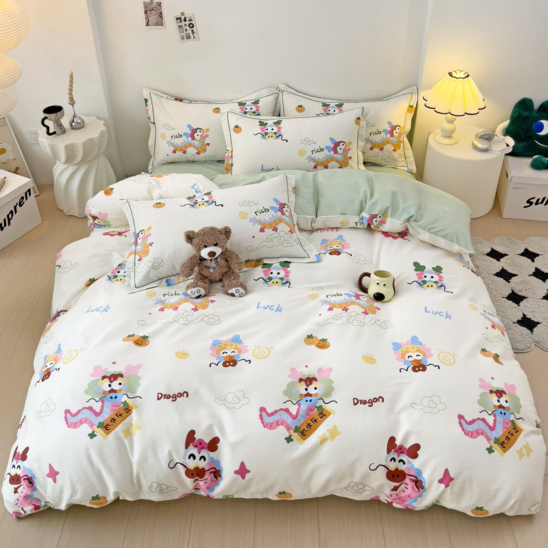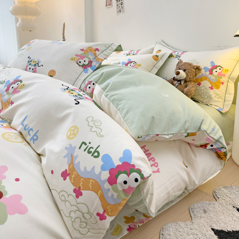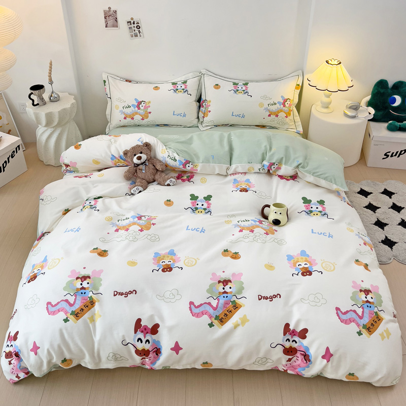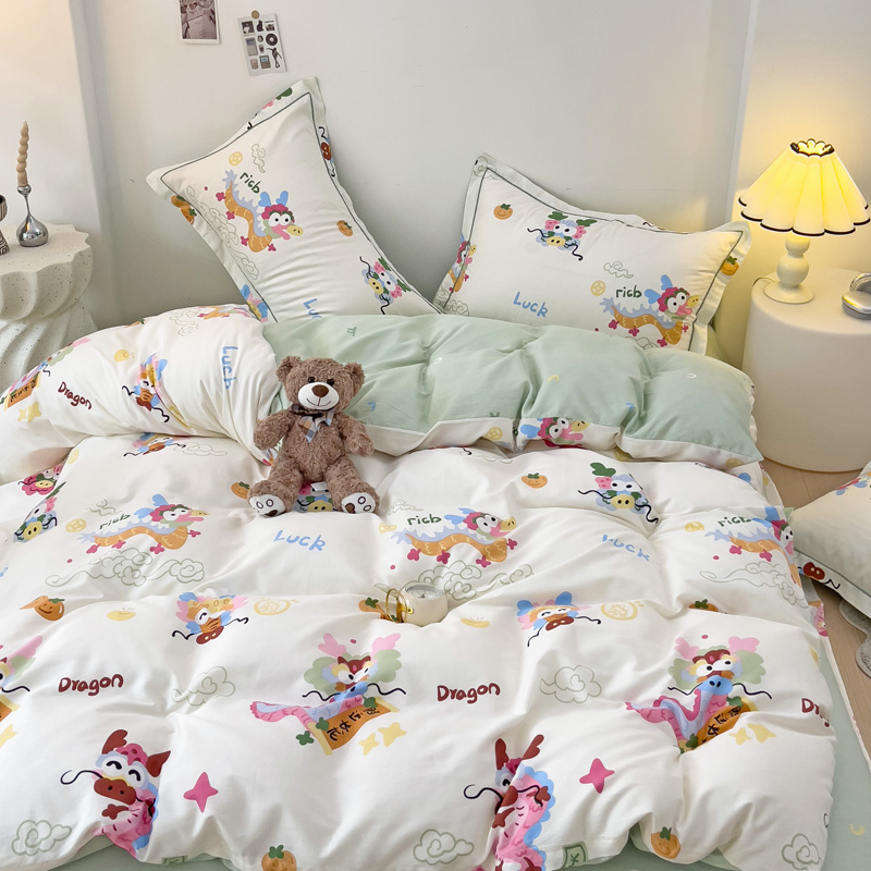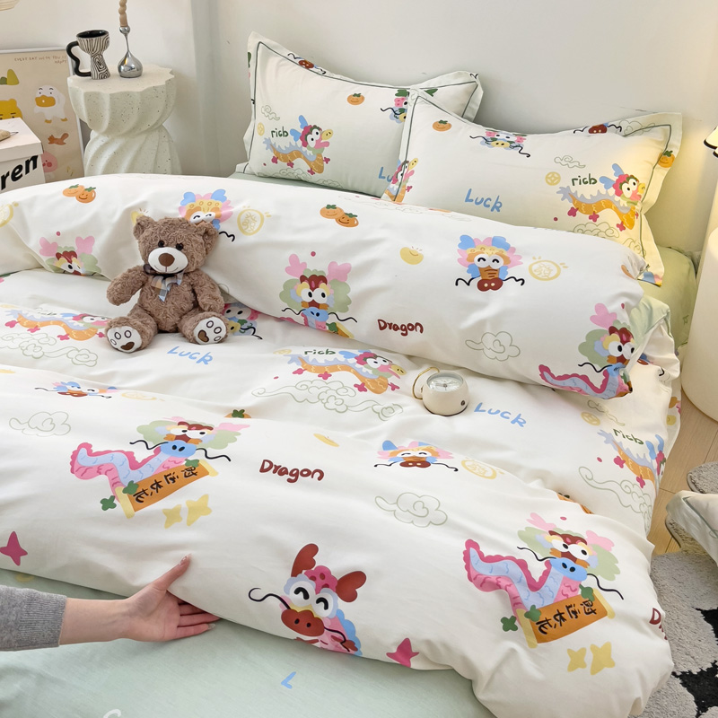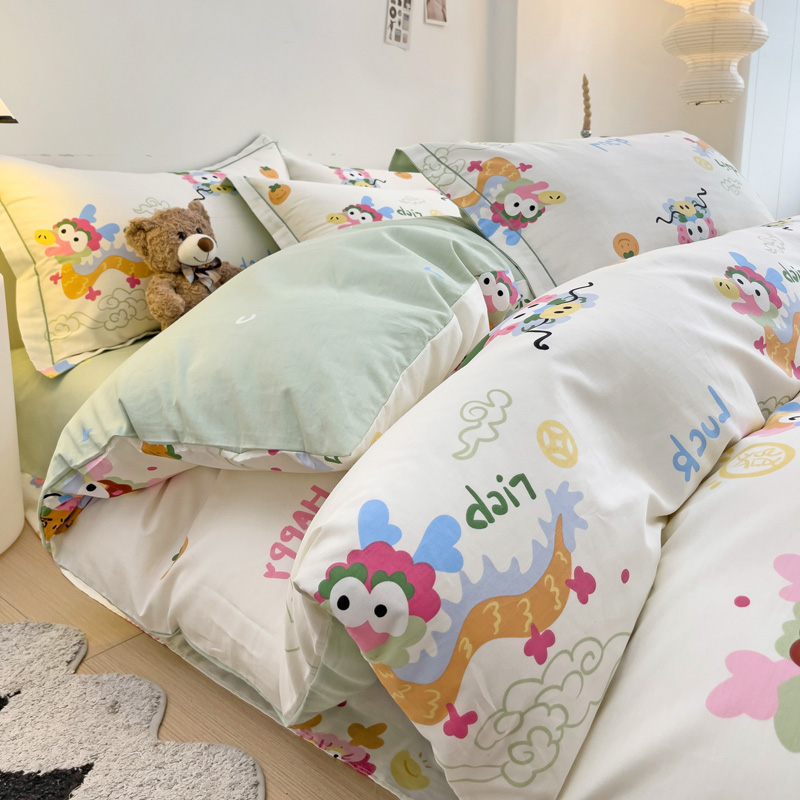 商品名称:云锦家居 2024新款13070纯棉印花吊边款一字绣四件套 财运长龙