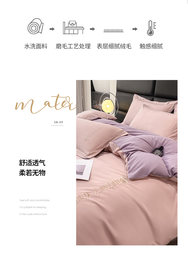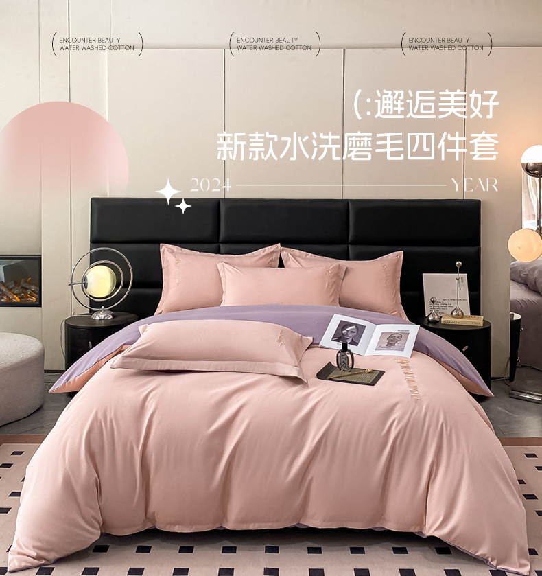 商品名称:N先生2024新款水洗磨毛四件套-露娜系列 粉