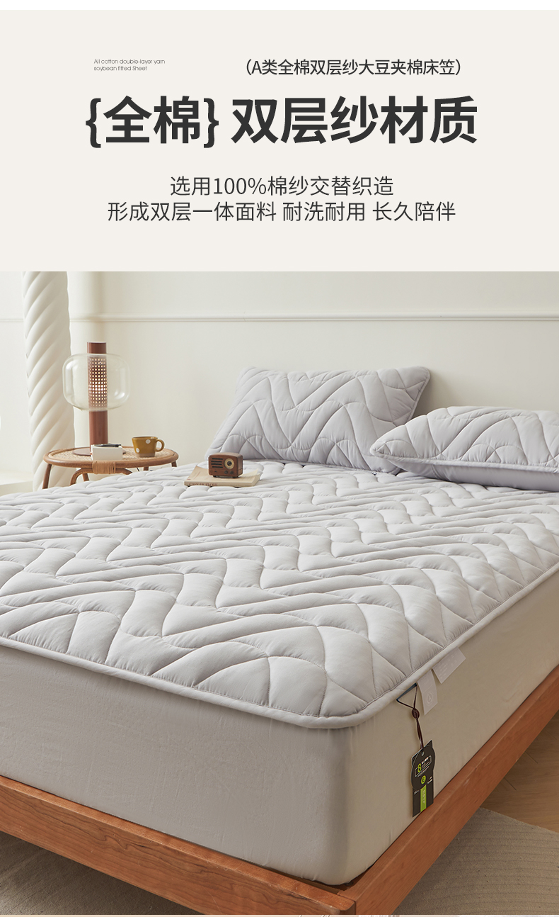 商品名称:3C 2024新款全棉双层纱大豆床笠 流光灰