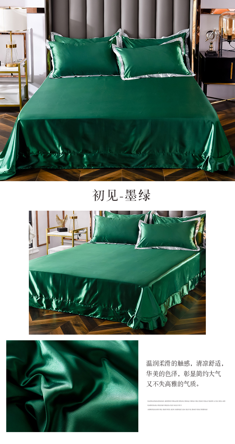 商品名称:经年 2025新款奢华真丝手感冰丝单品套件-初见系列 单床单 初见-墨绿