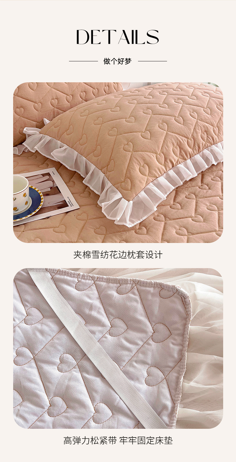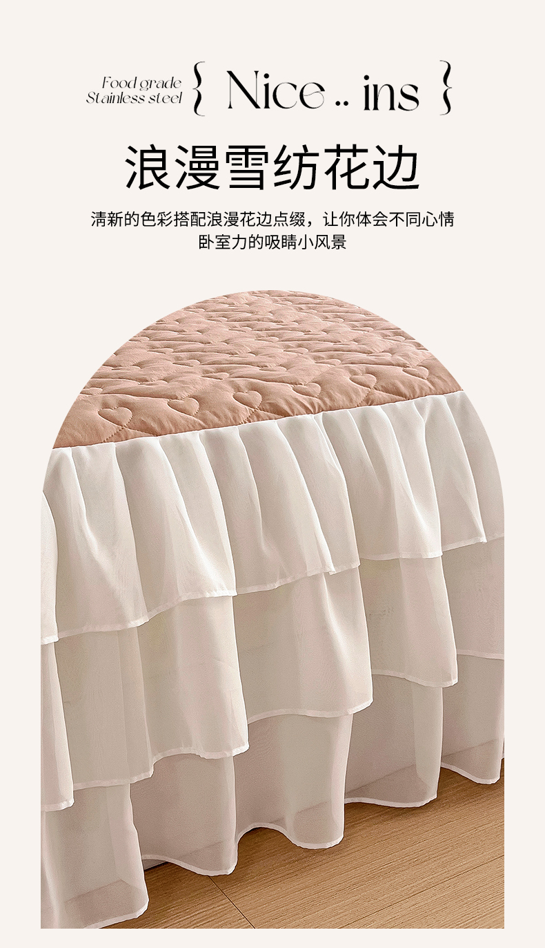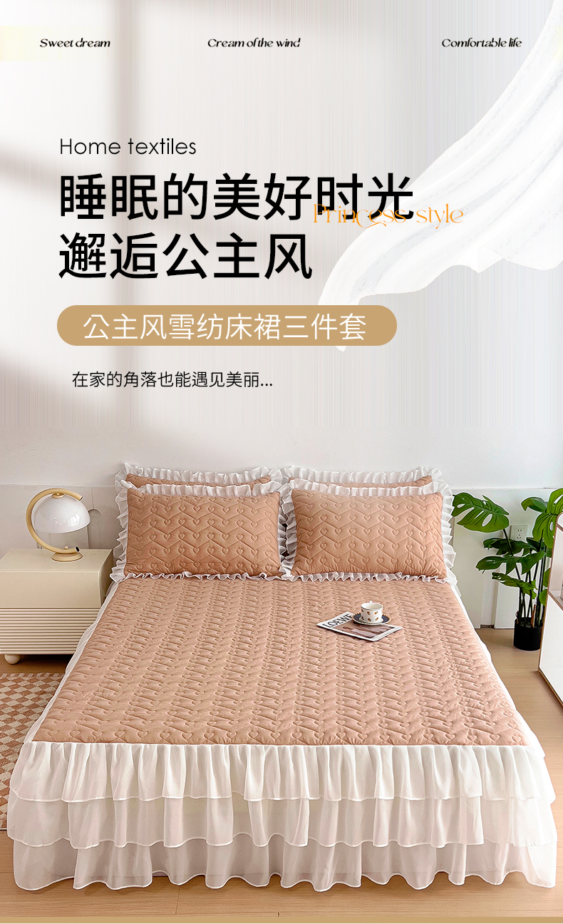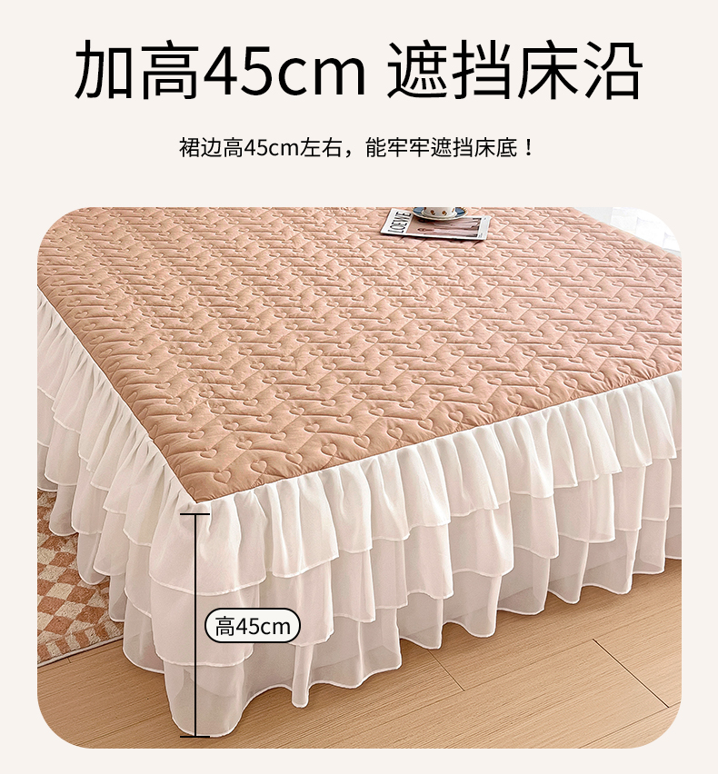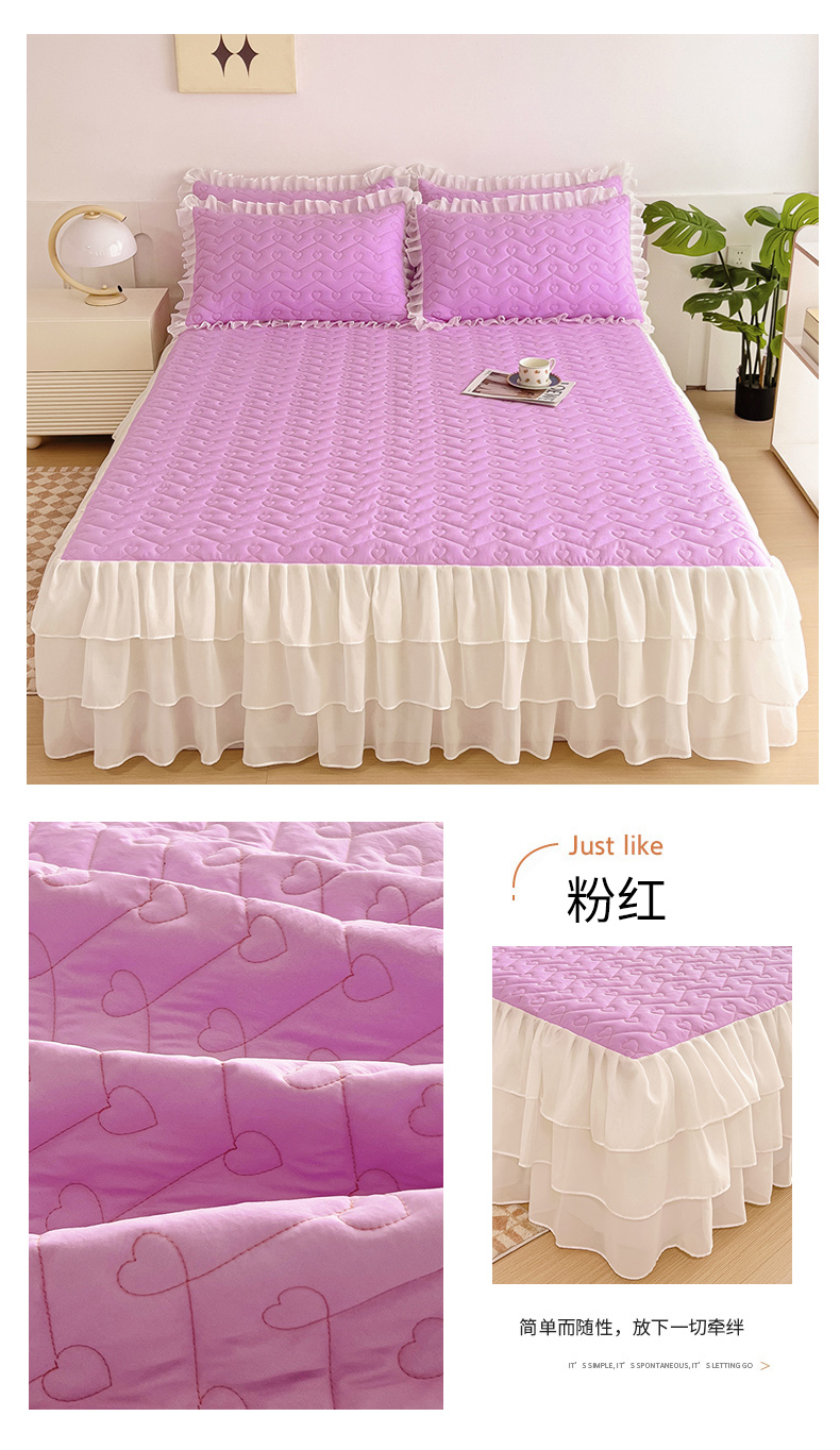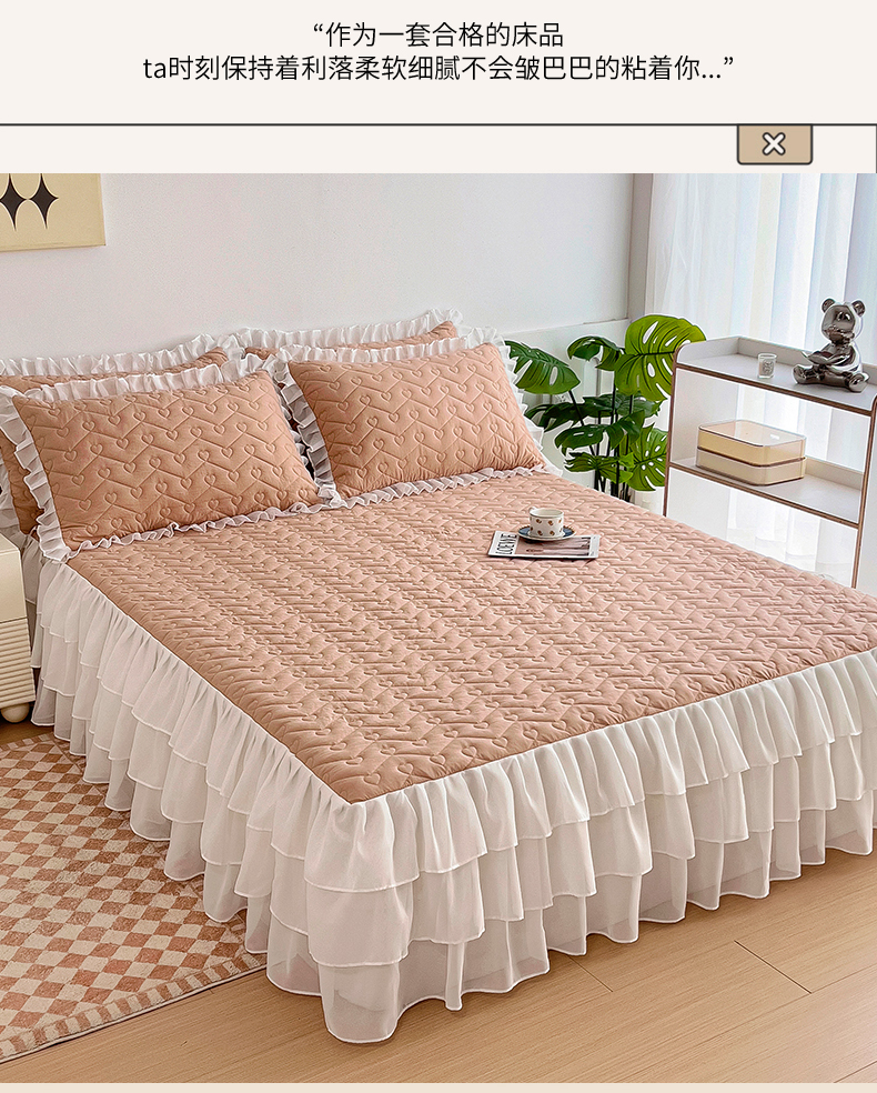 (总)屹成家纺2025新款水晶绒夹棉绗缝蕾丝床裙三件套(塞纳河畔)床裙单件起售价不低于105元,大红,豆沙,翡翠绿,粉玉,橄榄绿,蔚蓝,银灰