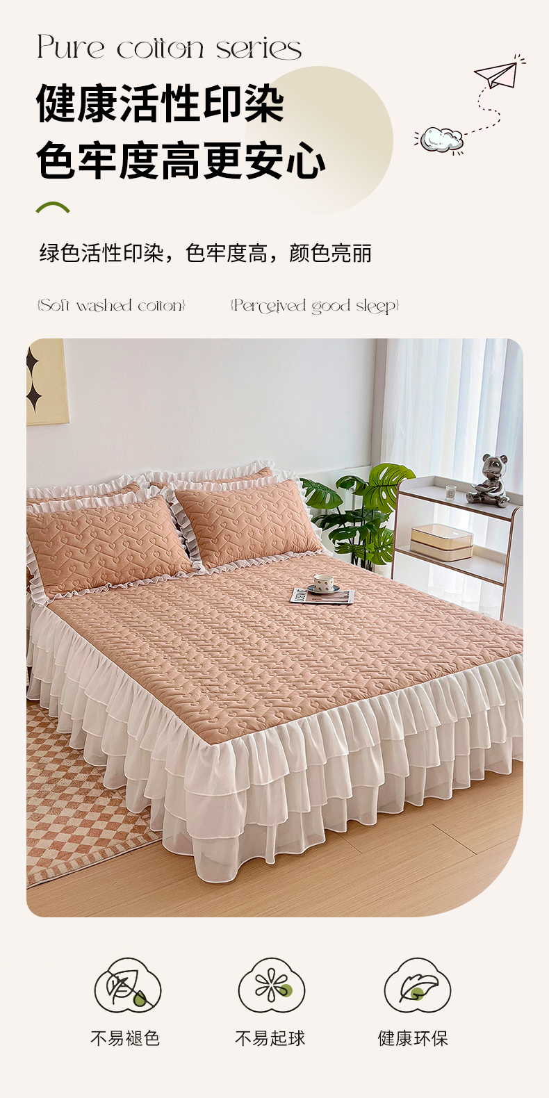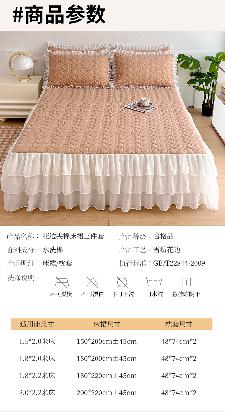 (总)屹成 2024新款水洗棉蕾丝四季款床笠床裙单品套件-床裙三件套,粉玉,豆沙,粉红,大红,橄榄绿,卡其,玫红,浅紫,水绿,天蓝,银灰