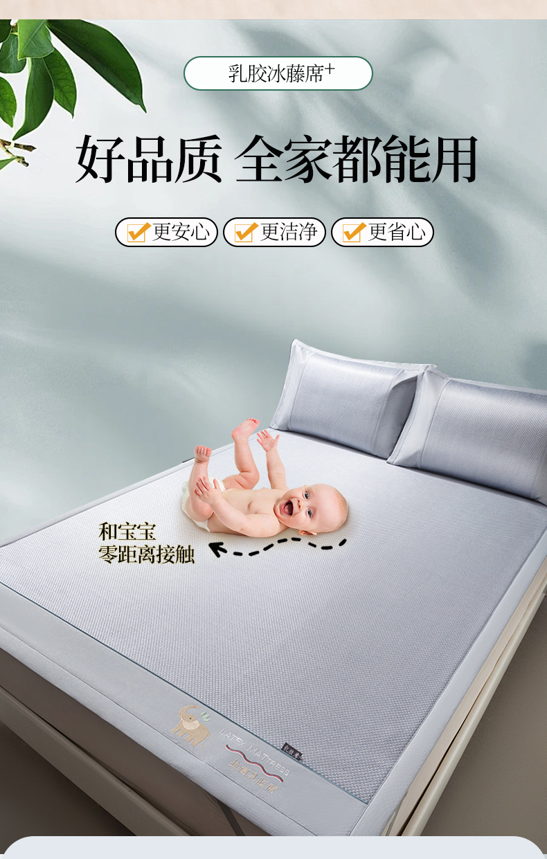 宜派家纺 2024新款冰藤席 床席款 灰蓝