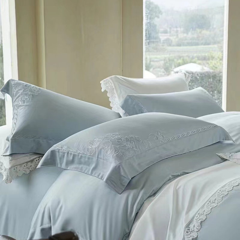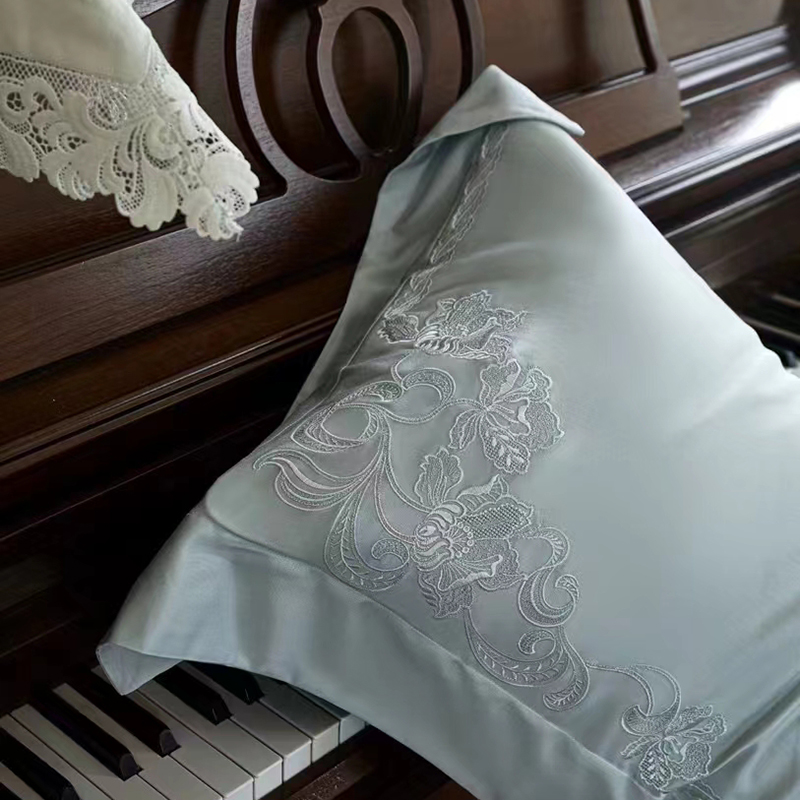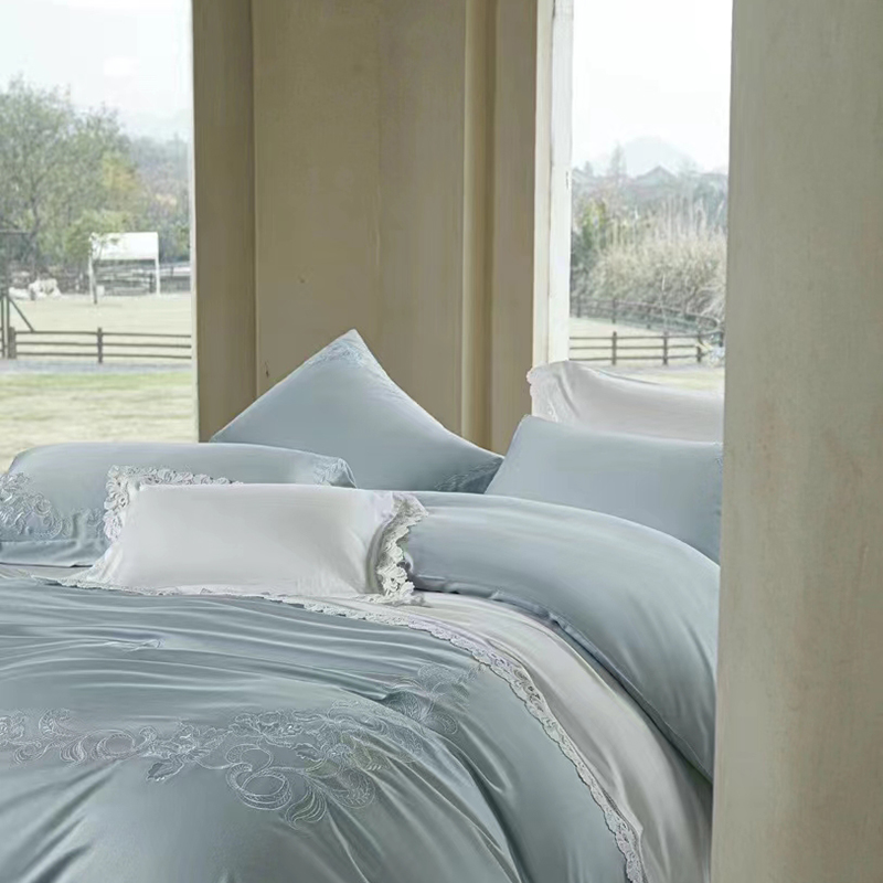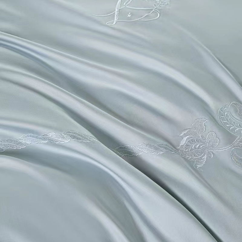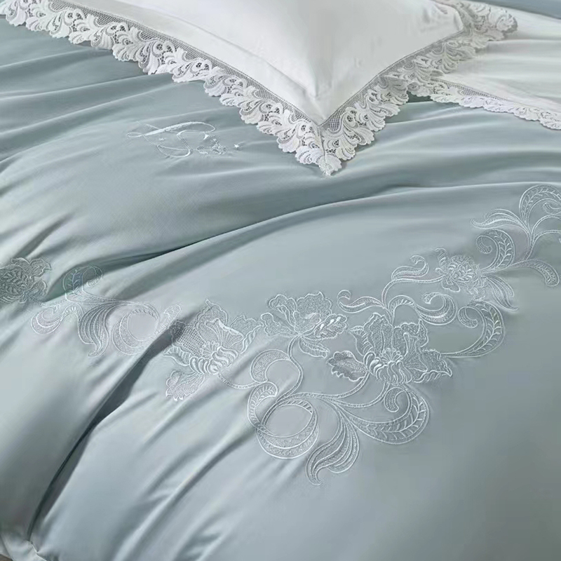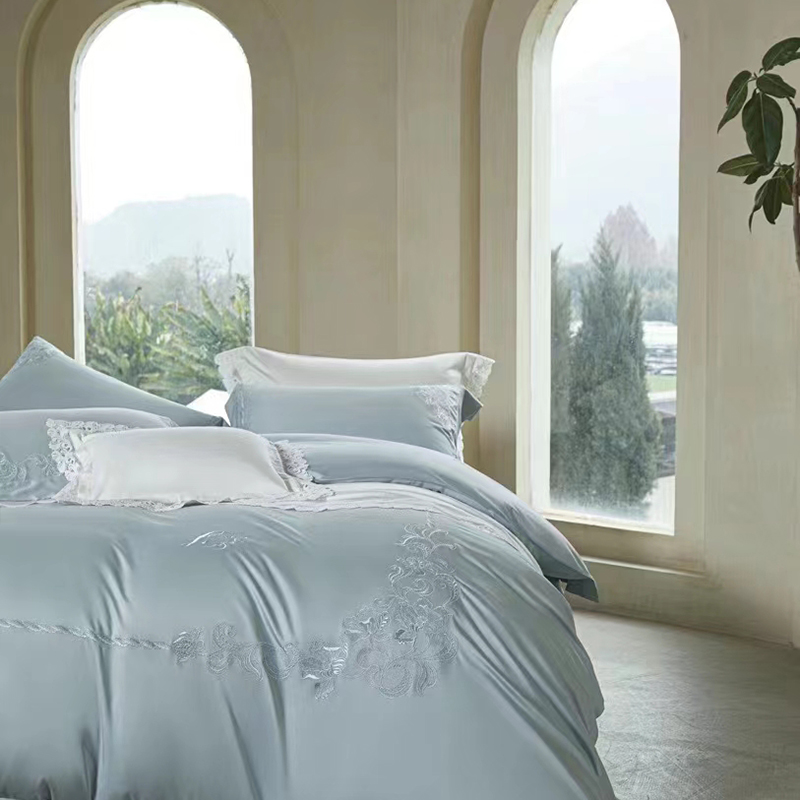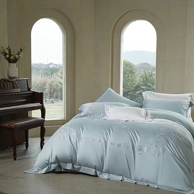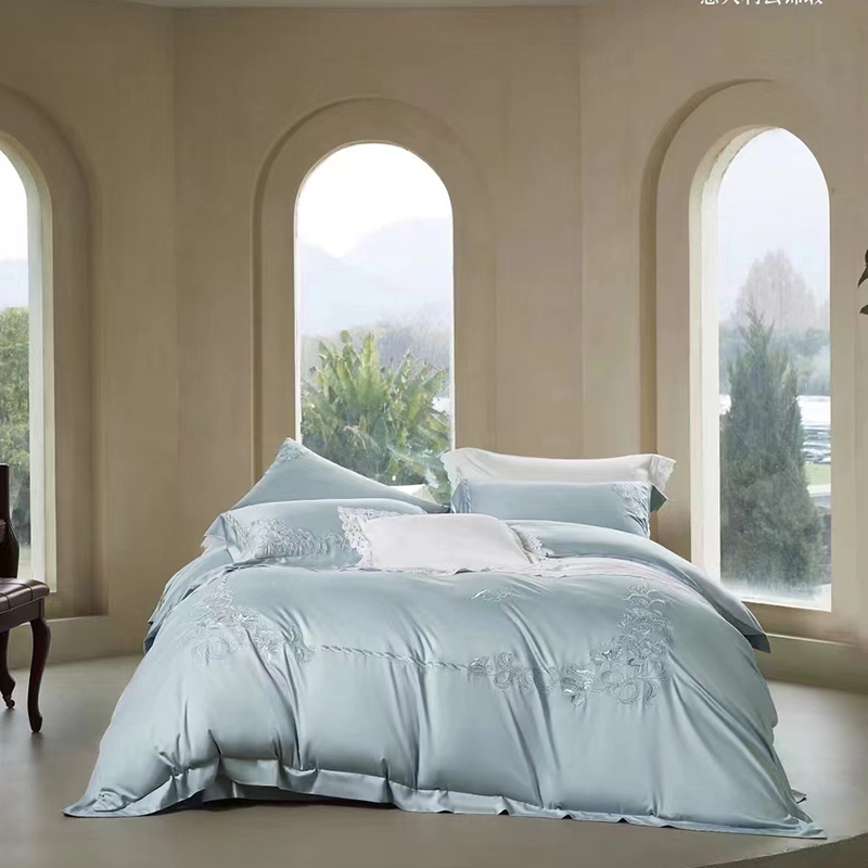 (总)玖玖爱家纺 2023新款120支贡缎长绒棉刺绣梦柔系列四件套,梦柔-香槟金,梦柔-香橙桔,梦柔-高级灰,梦柔-水蓝,梦柔-芙蓉玉