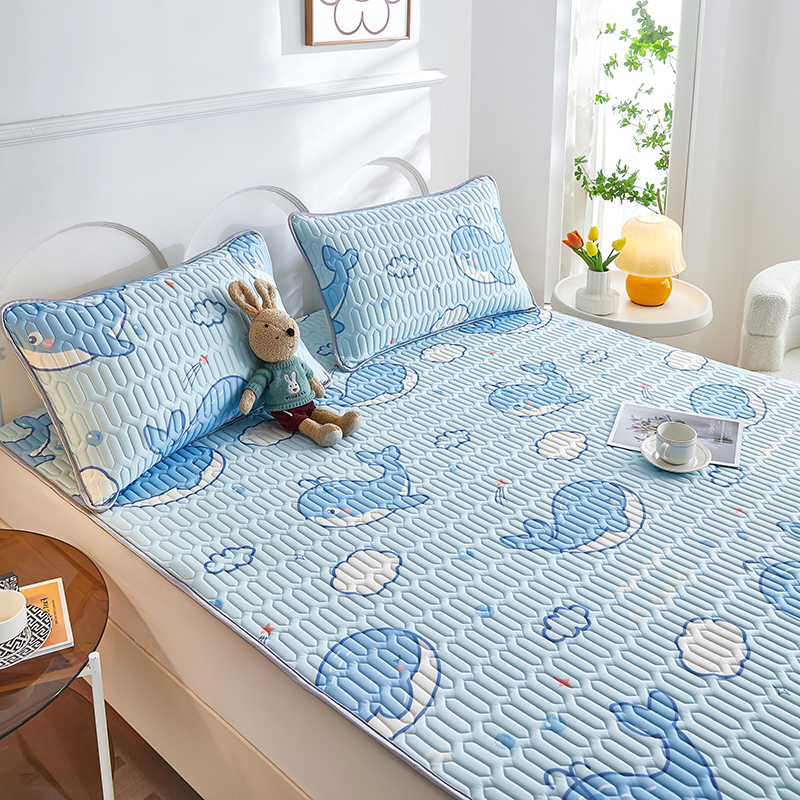 爱上家居 2024新款印花凉席床裙床单款夏被-床单款 鲸鱼