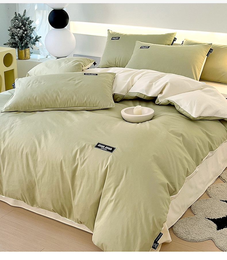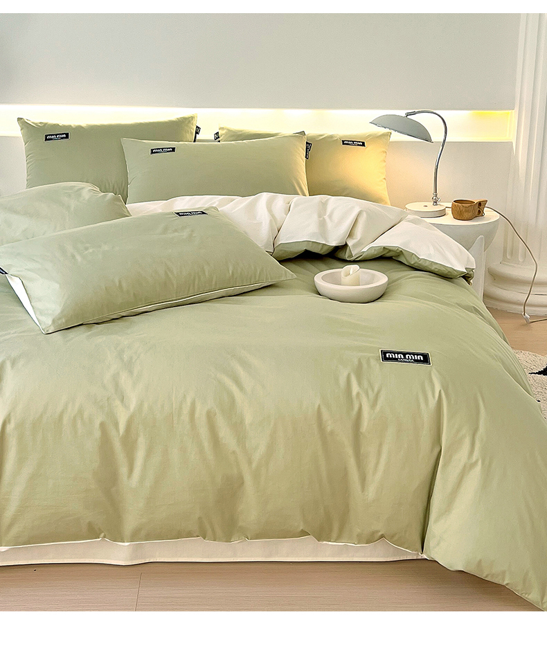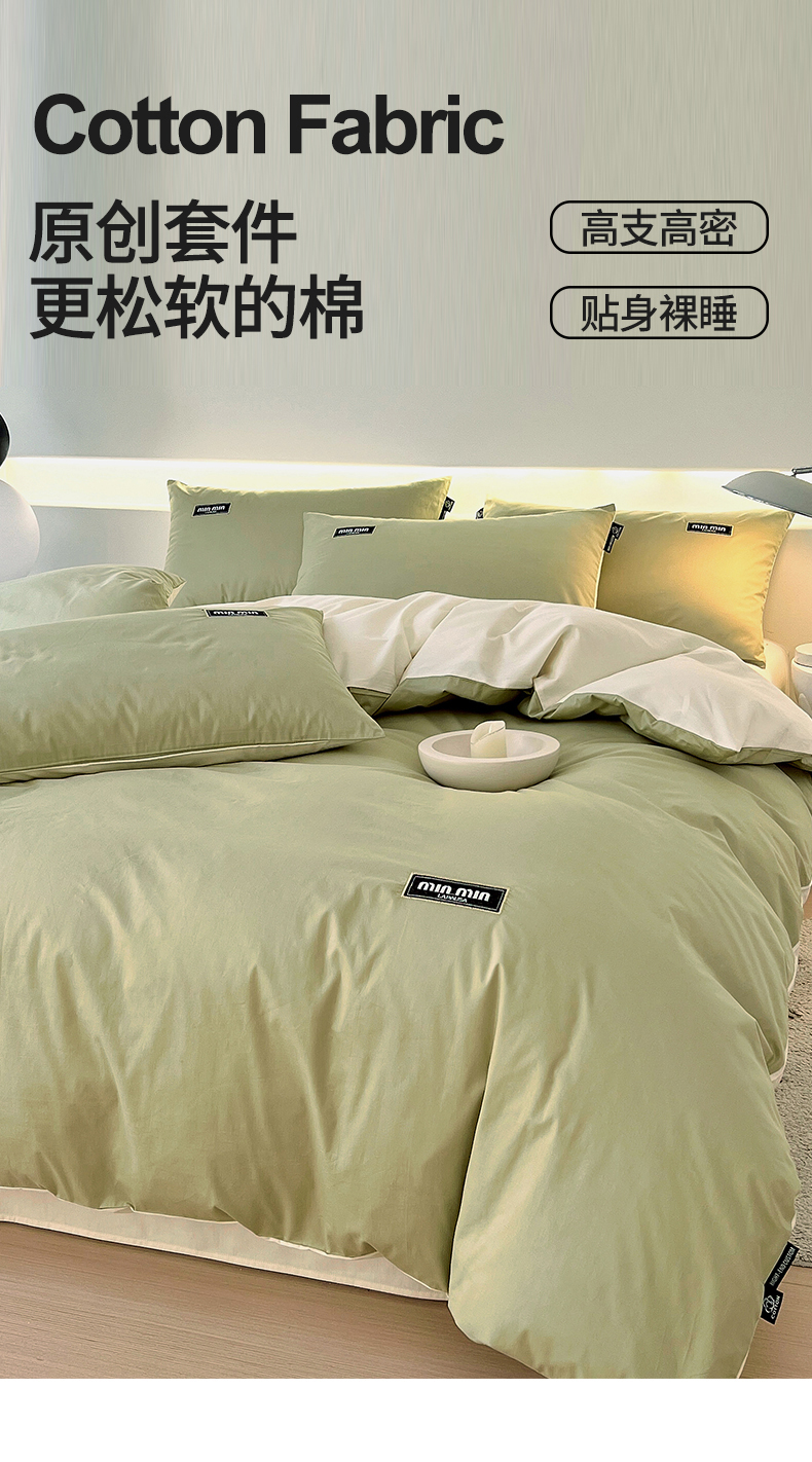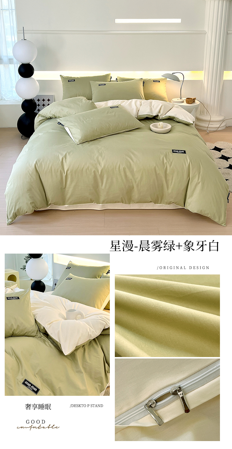 当前位置: 91家纺网 > 商品网购 > 床品套件 > 四件套 > 全棉普通四件套 > 凯磊家纺 2024新款高支高密.纯色拼色四件套-星漫系列 星漫-晨雾绿+象牙白