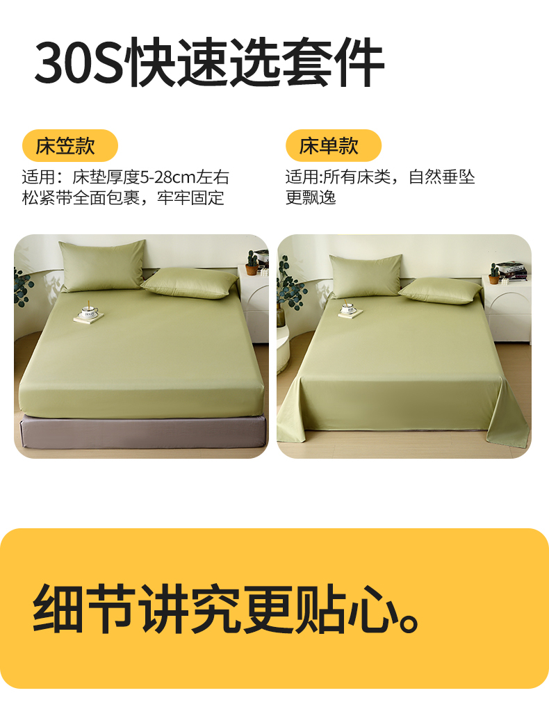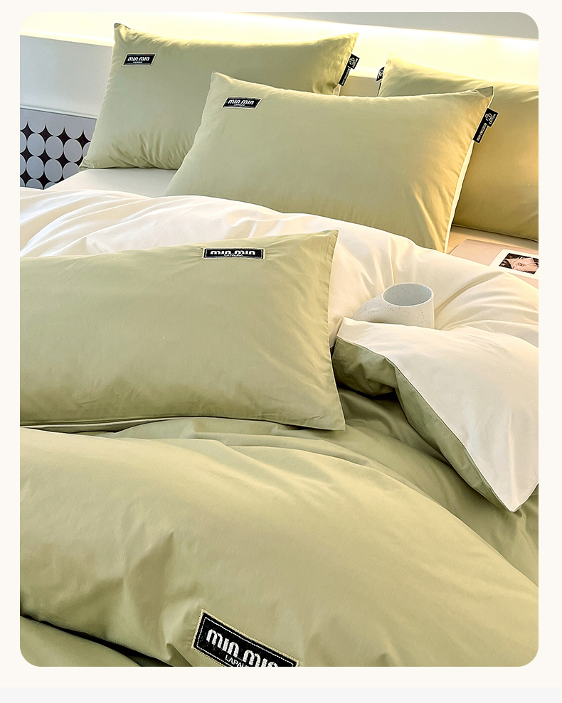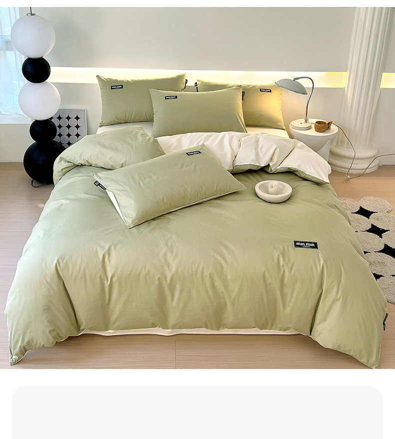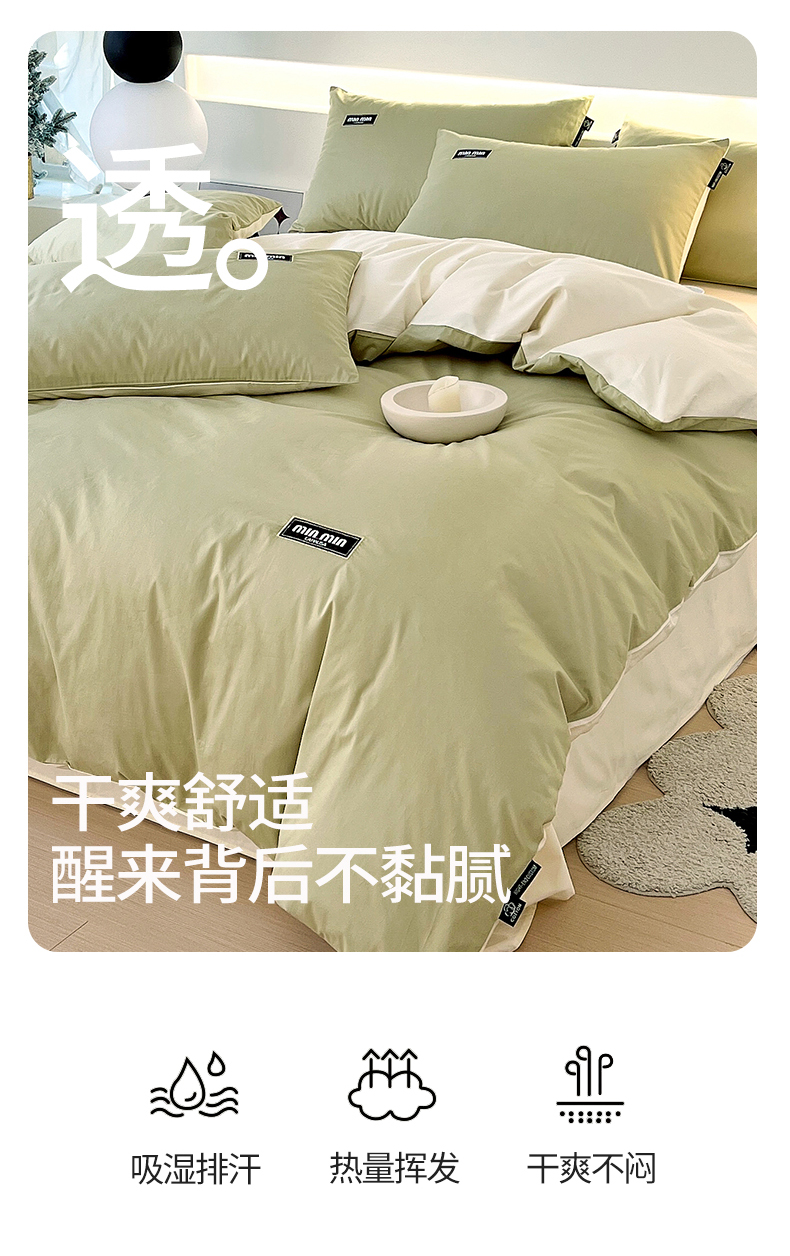 当前位置: 91家纺网 > 商品网购 > 床品套件 > 四件套 > 全棉普通四件套 > 凯磊家纺 2024新款高支高密.纯色拼色四件套-星漫系列 星漫-晨雾绿+象牙白