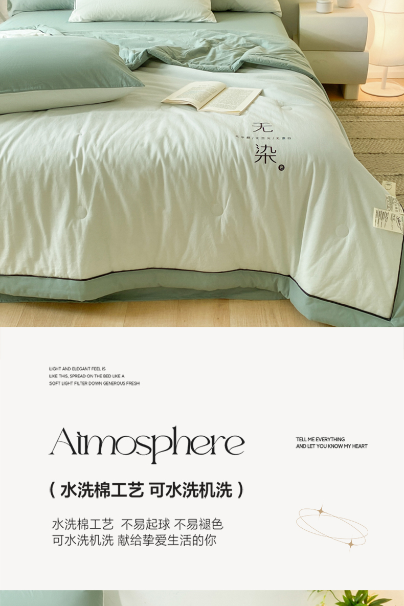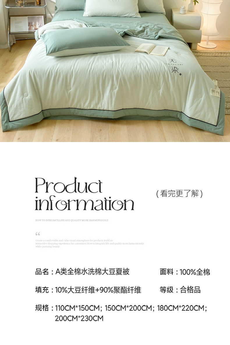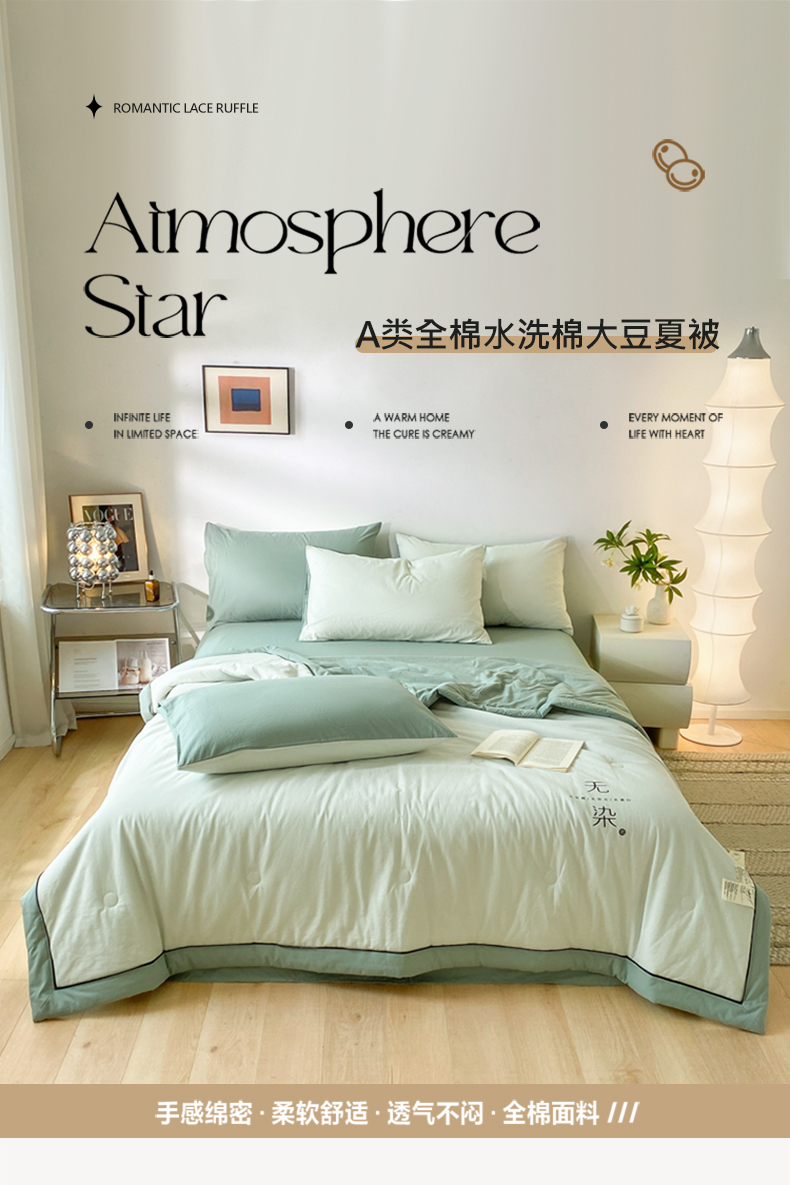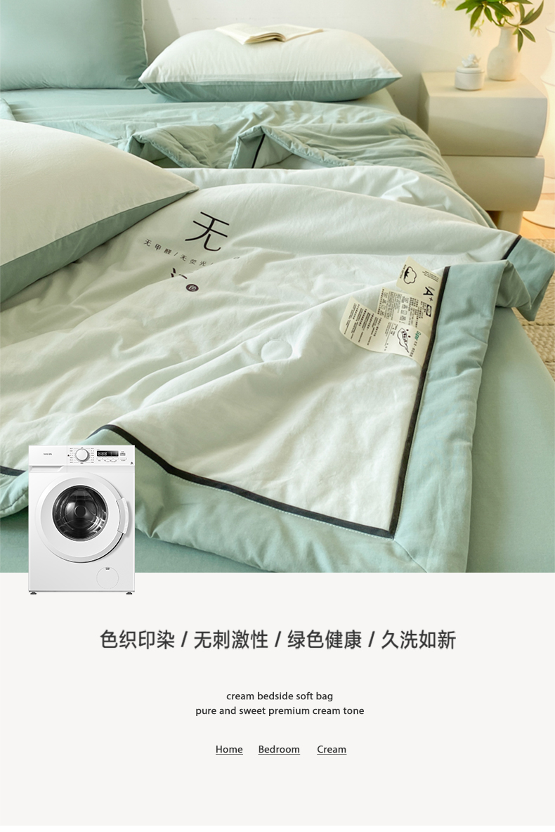 • 91家纺网 家纺一手货源 找家纺 荔禾家居 2024新款A类全棉水洗棉无染夏被 灌木绿
