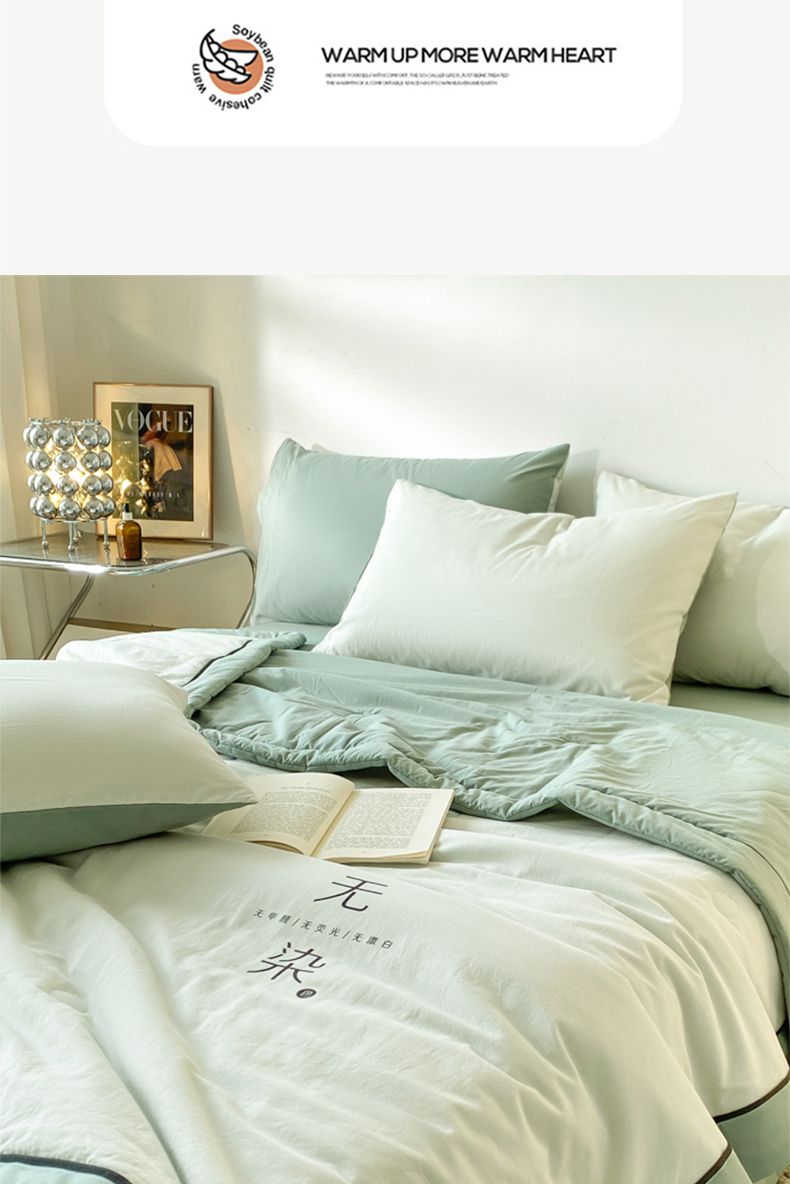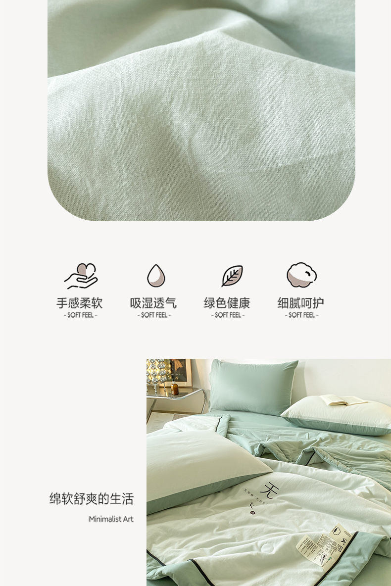 荔禾家居 2024新款A类全棉水洗棉无染夏被 灌木绿
