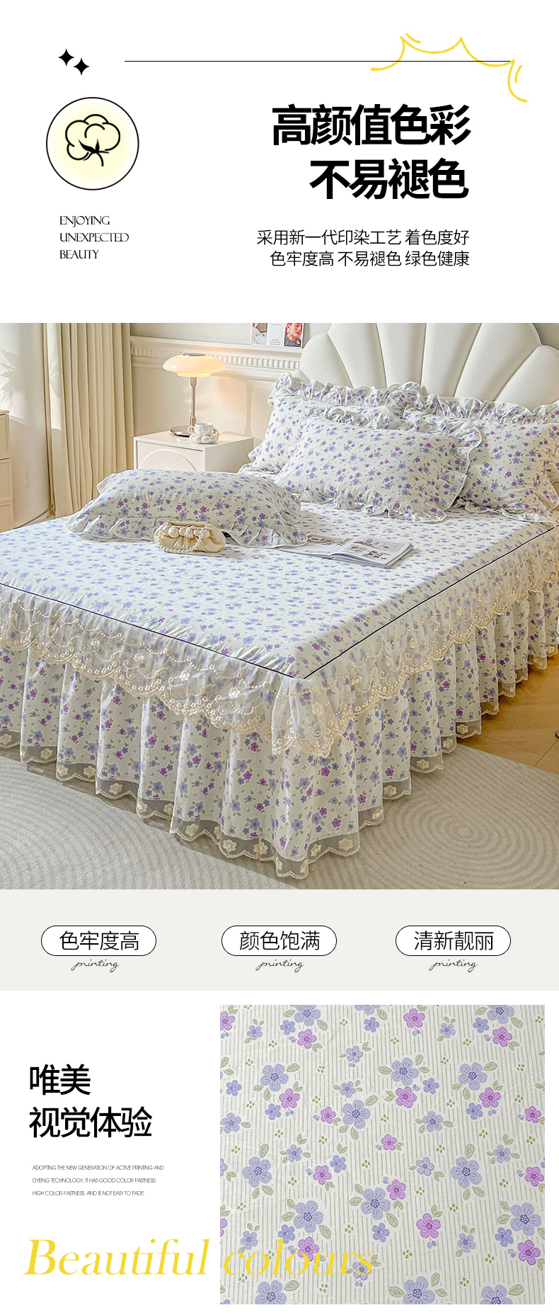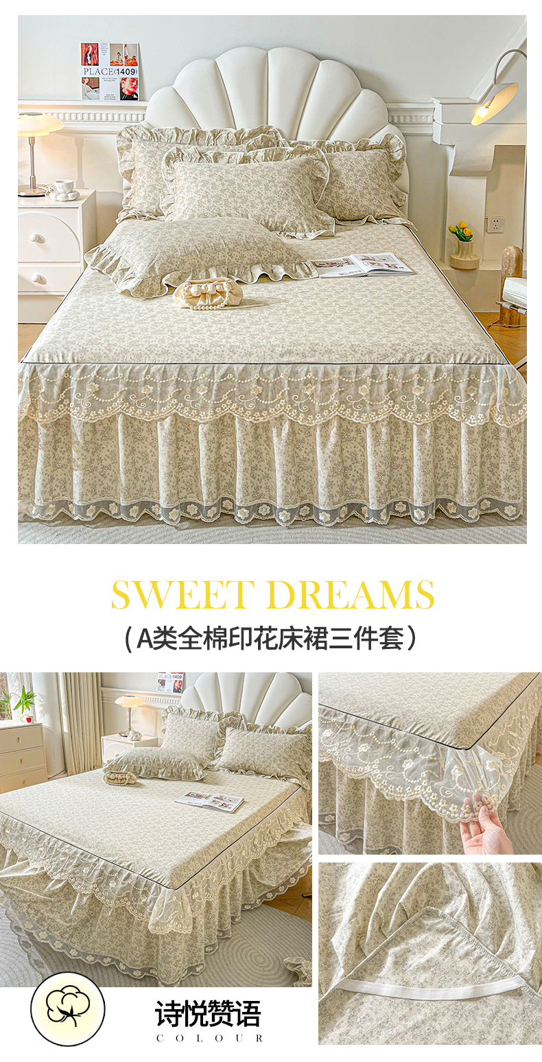 宜凡家纺 2024新款全棉印花单层床裙系列三件套 诗悦赞语
