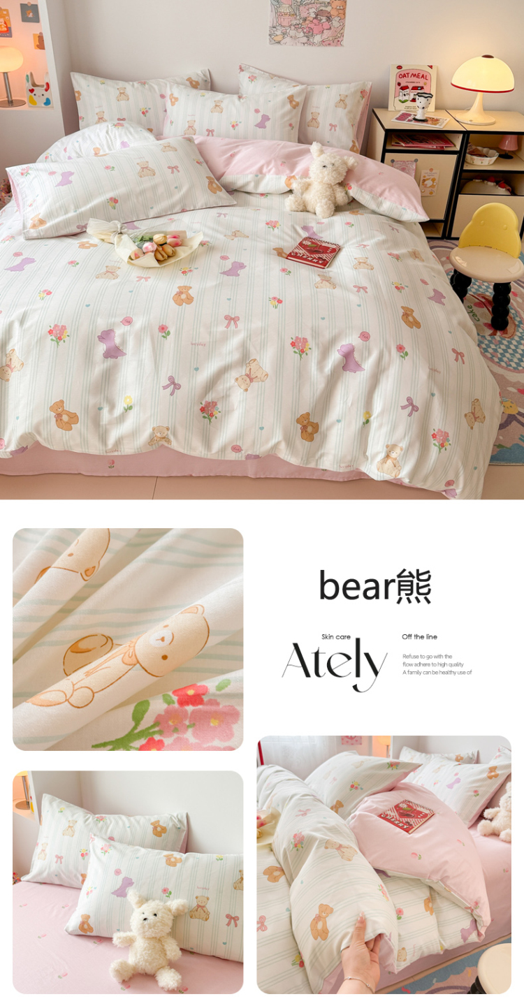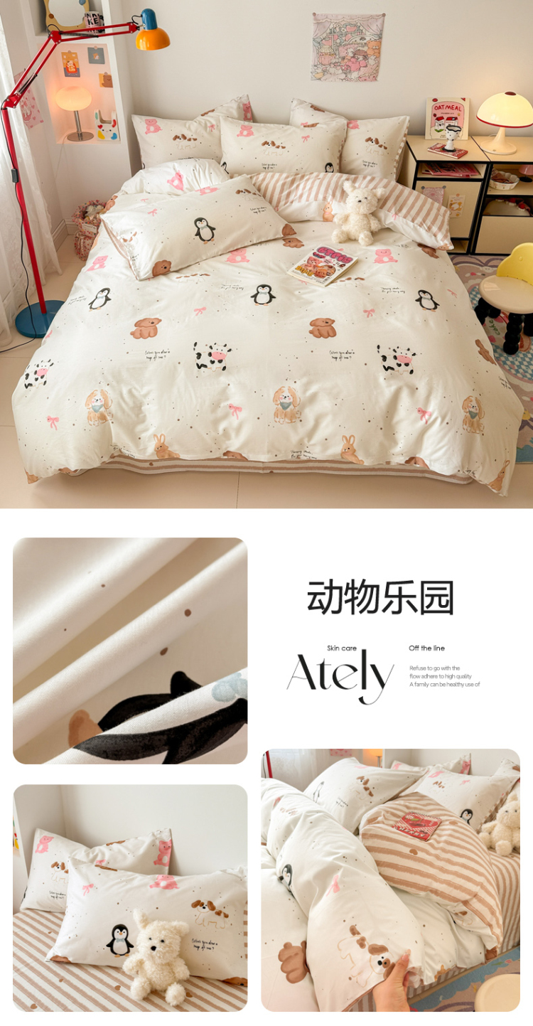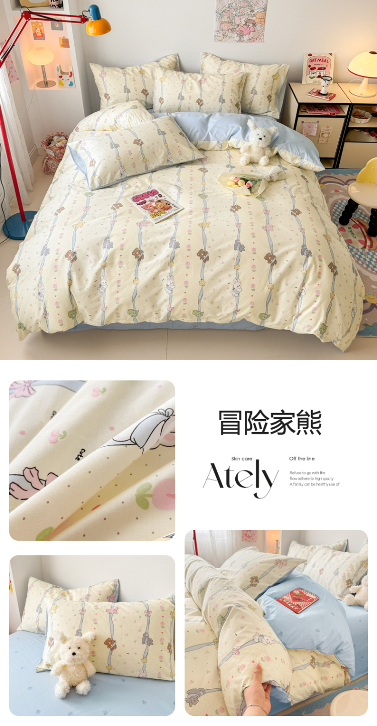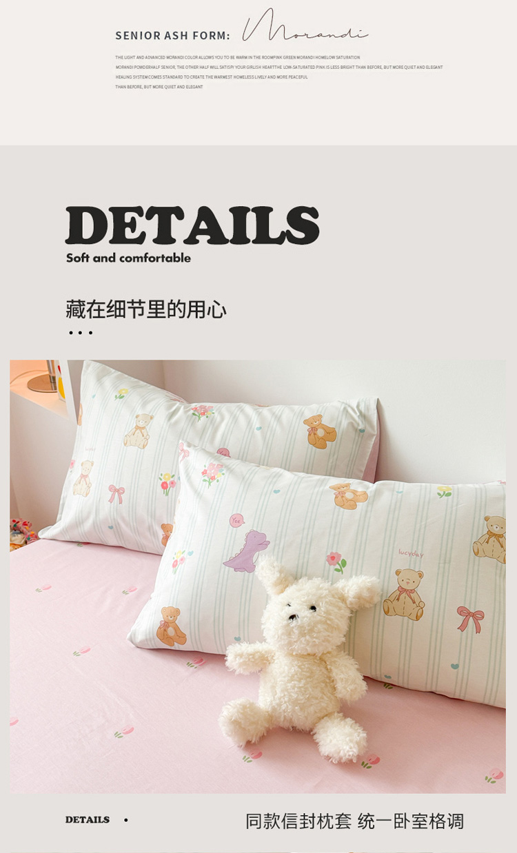 (总)慕尚家纺 2025新款全棉印花学生三件套套件,艾米熊,彩色爱心狗,铃兰花,美食派对,萌宠乐园,书生猫咪,桃心狗,汪可爱,旺旺,樱桃