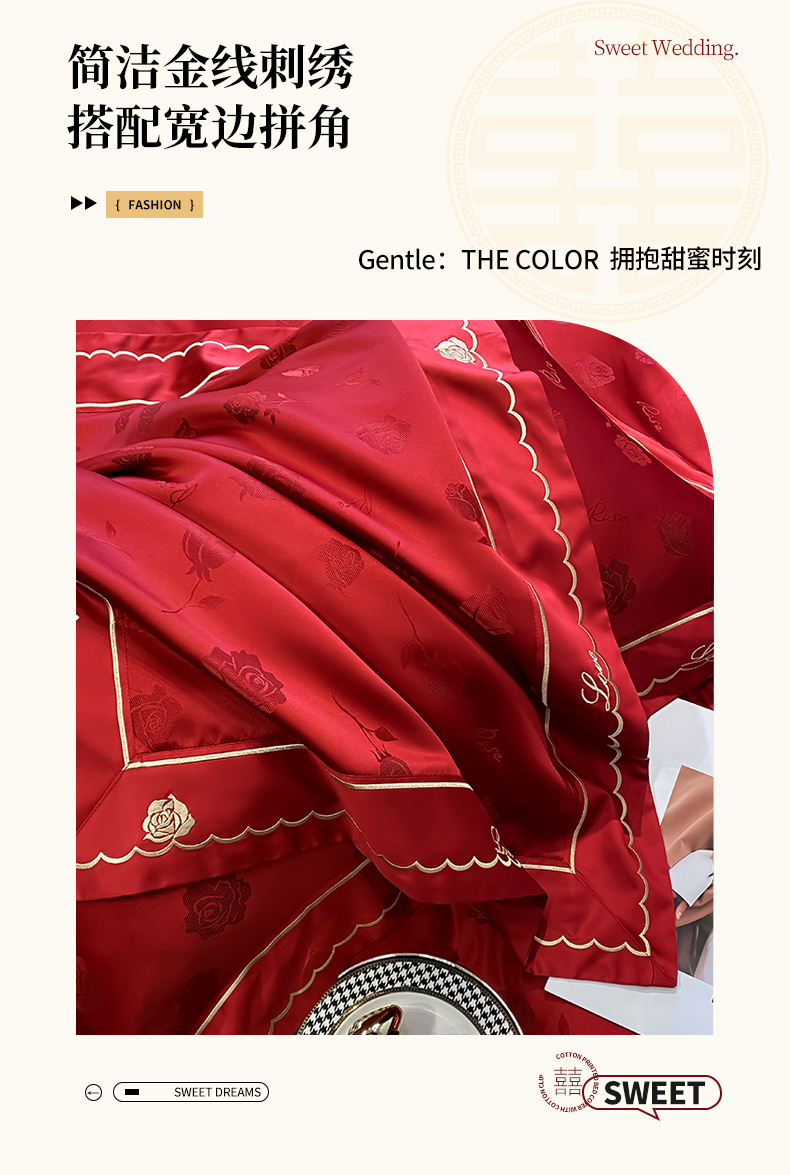 (总)优悦生活馆 2025新款亲肤婚庆夹棉床盖四件套,花嫁,喜悦,心田,予你,缘定