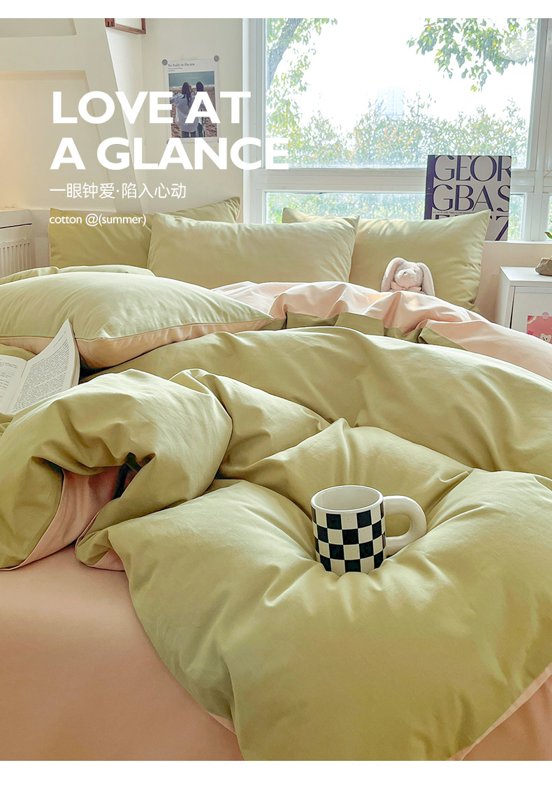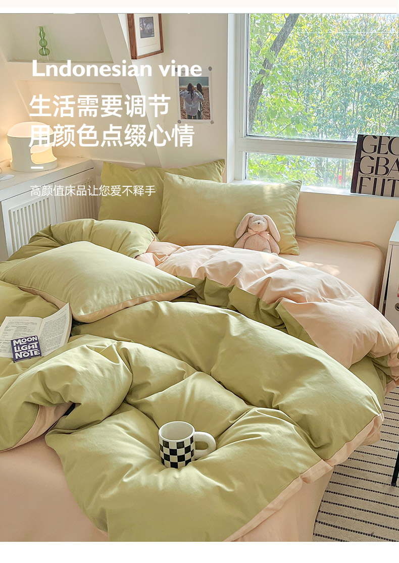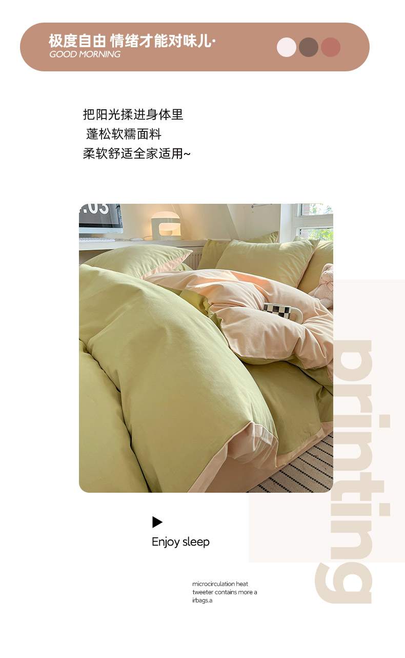 当前位置: 91家纺网 > 商品网购 > 床品套件 > 四件套 > 磨毛活性四件套 > 米粒 2024新款纯色简约双拼磨毛四件套 巴黎绿+咖