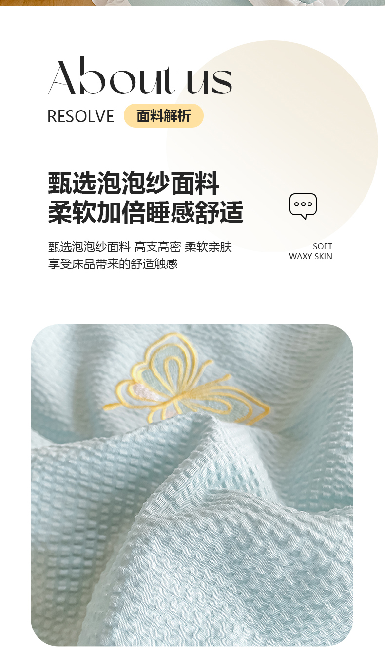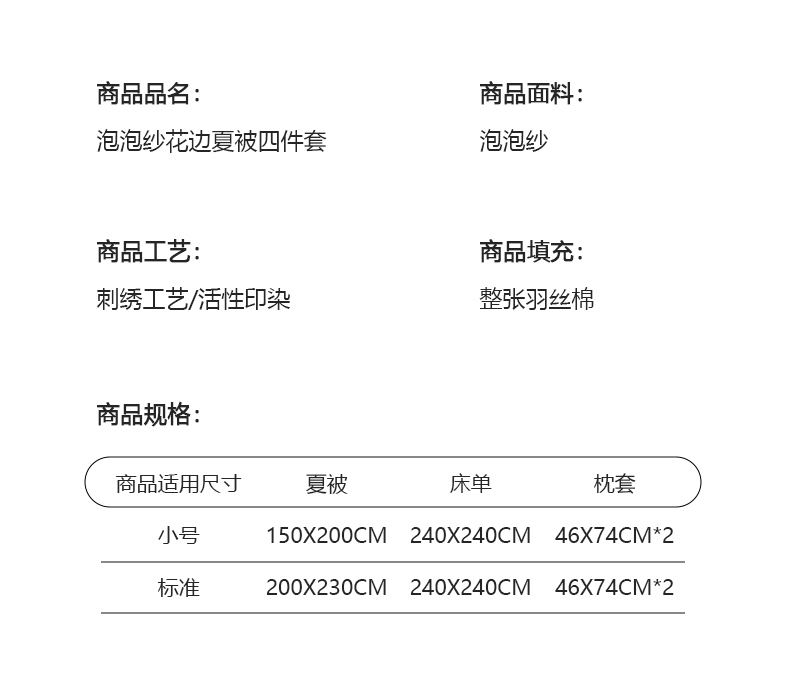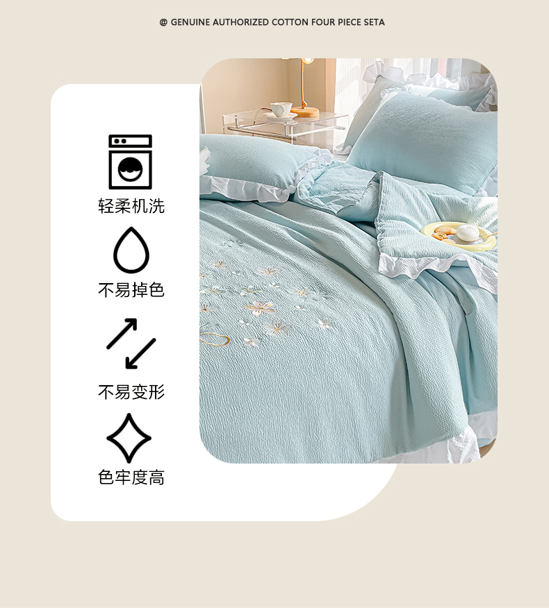 商品名称:金麦家纺 24新款泡泡纱花边夏被四件套 黛蓝