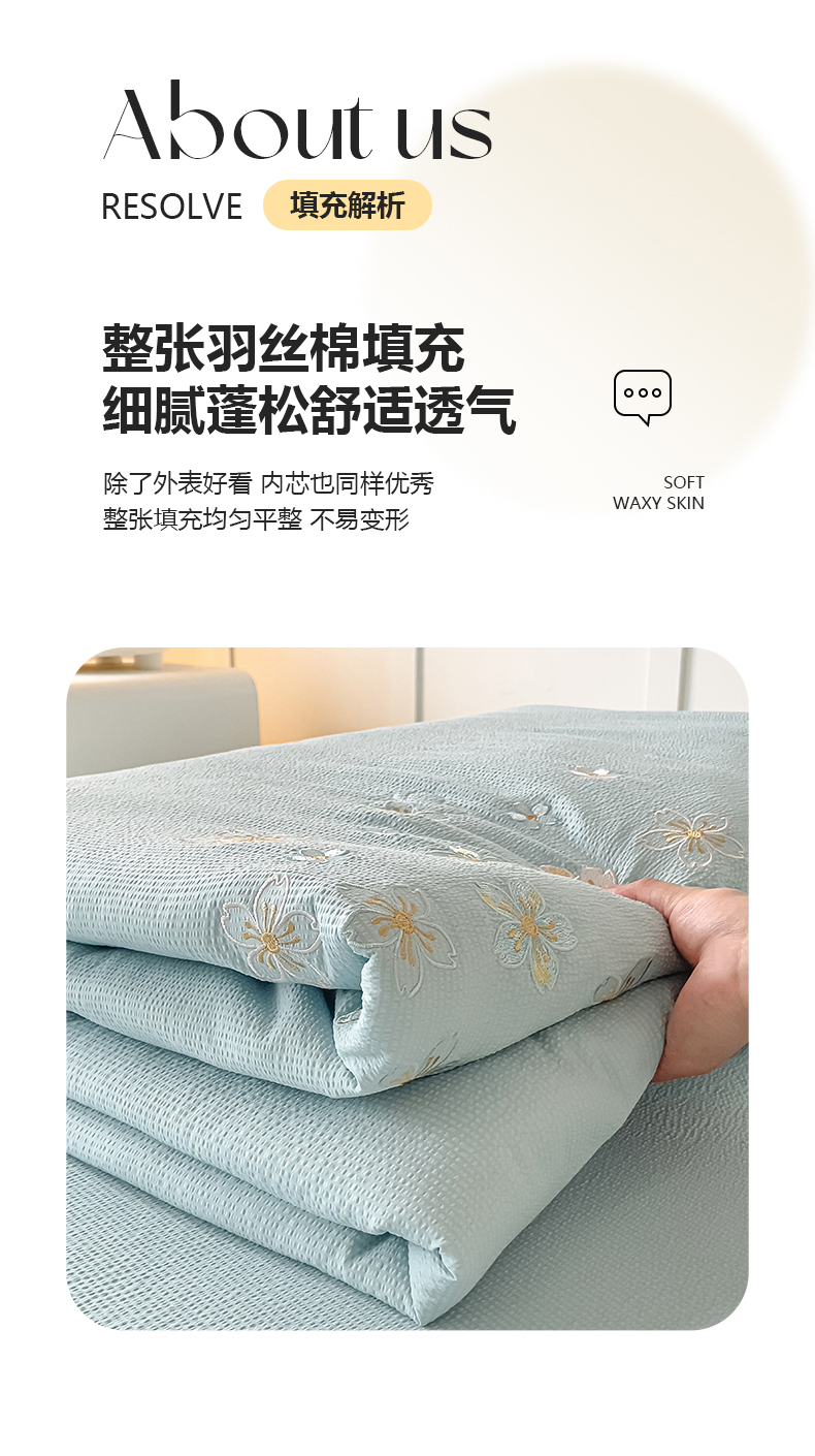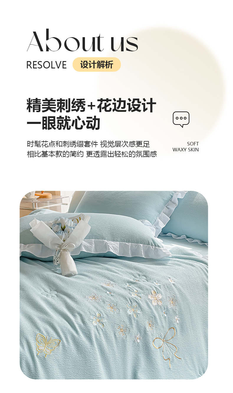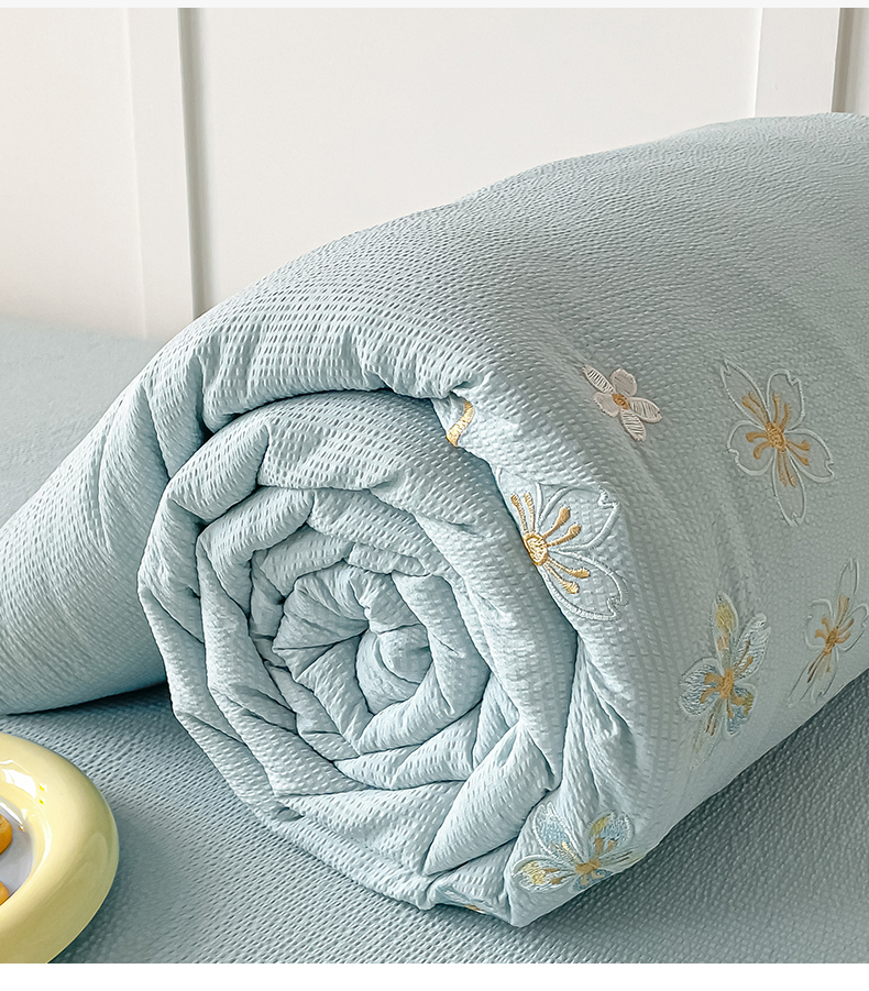 金麦家纺 24新款泡泡纱花边夏被四件套 黛蓝