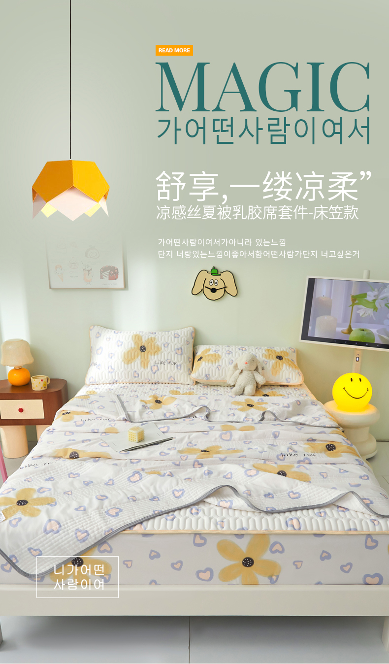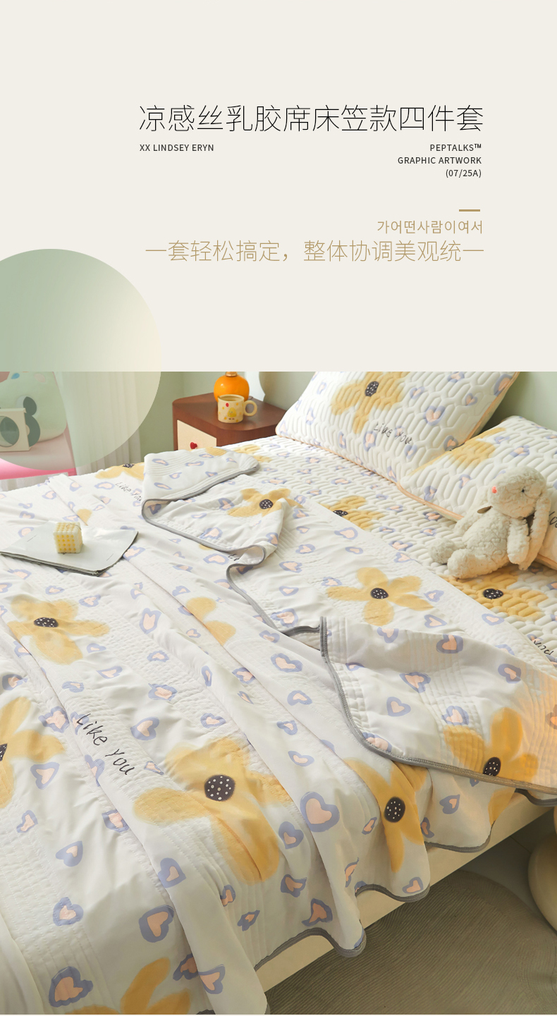 LIFE.丽芙 2024年新品0.4乳胶凉席加厚床笠款三件套+凉感丝夏被可组合四件套-图片一 寐色