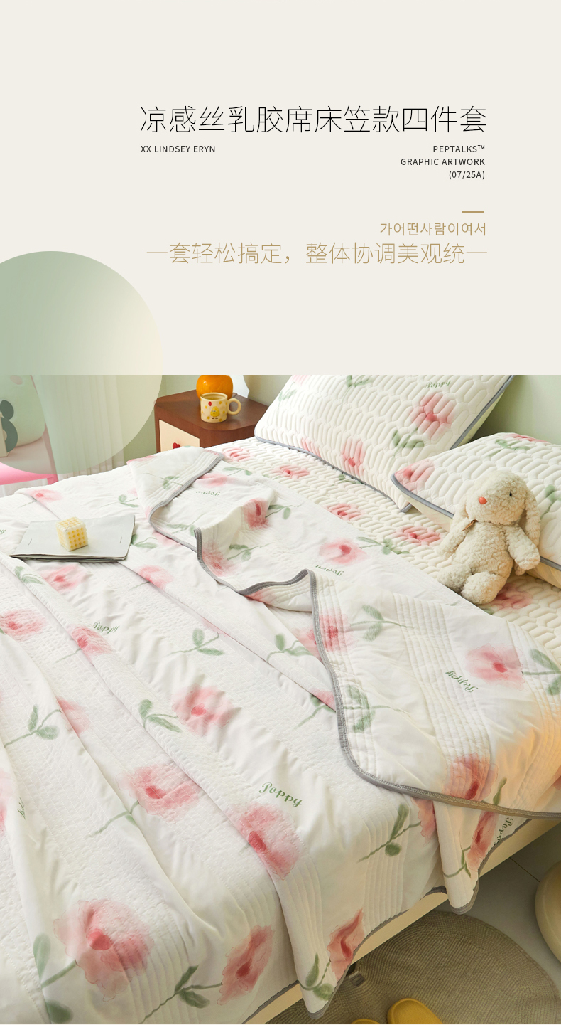 LIFE.丽芙 2024年新品0.4乳胶凉席加厚床笠款三件套+凉感丝夏被可组合四件套-图片一 花语
