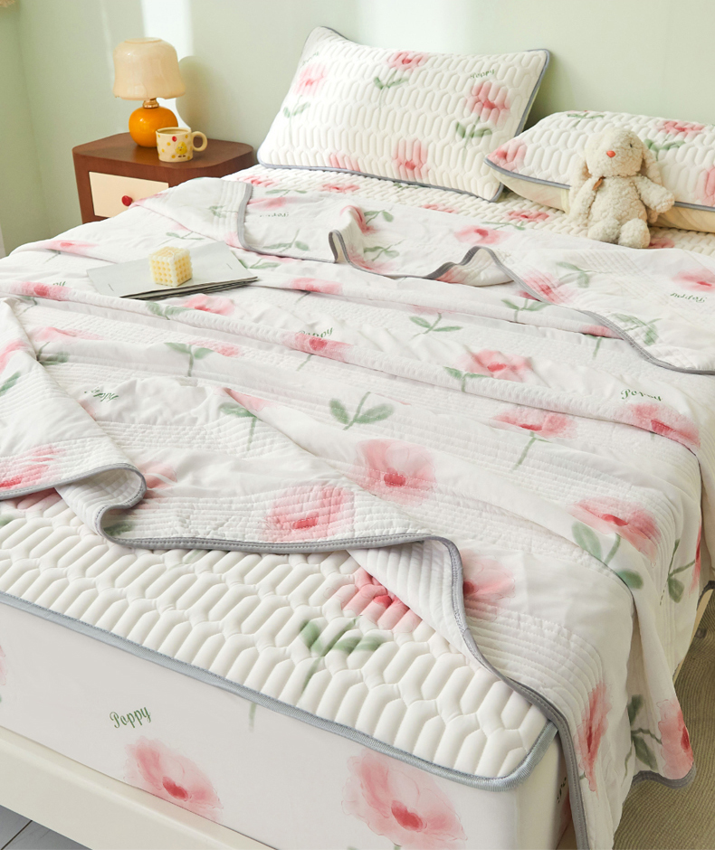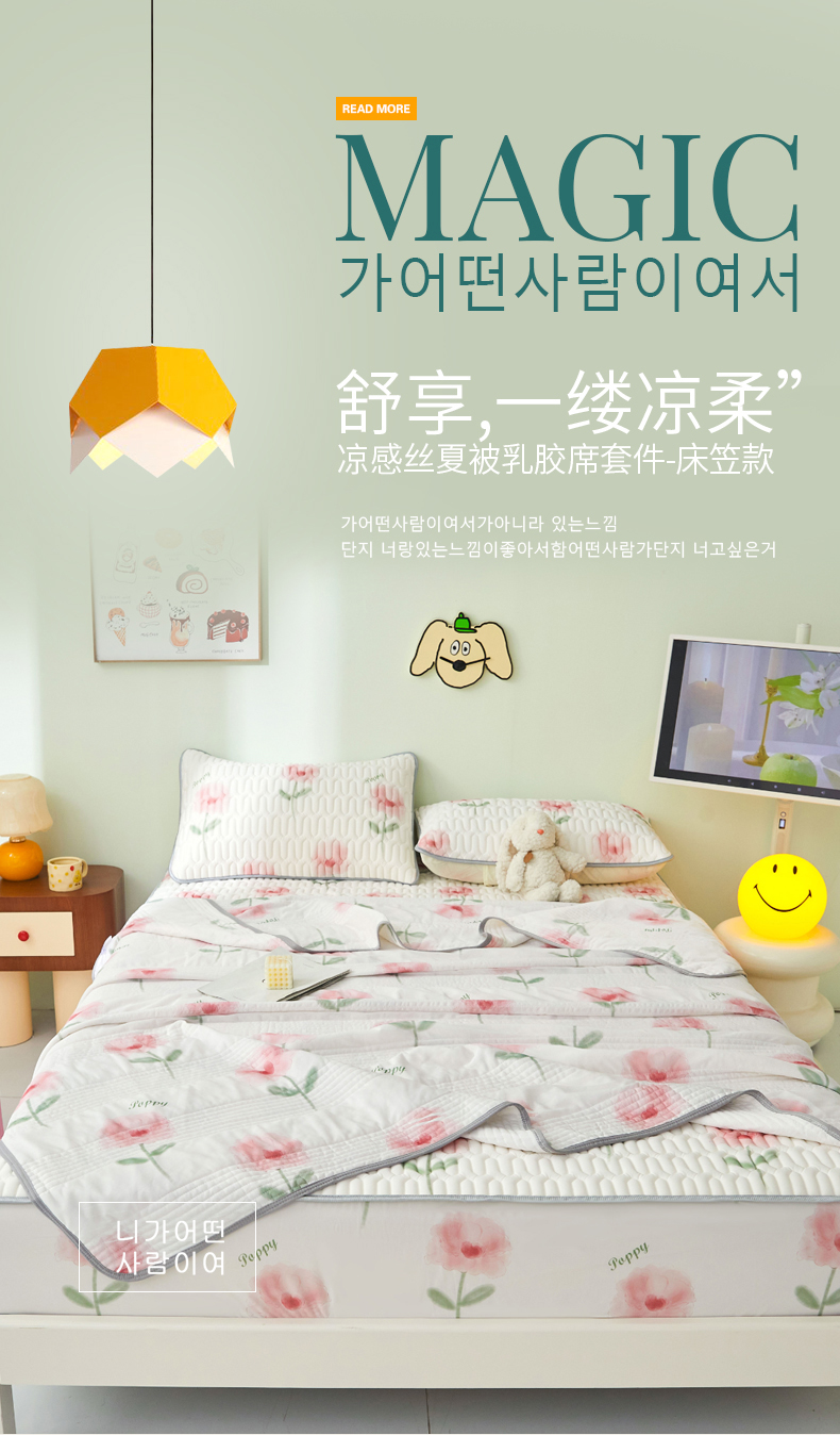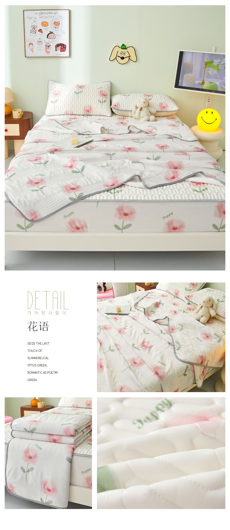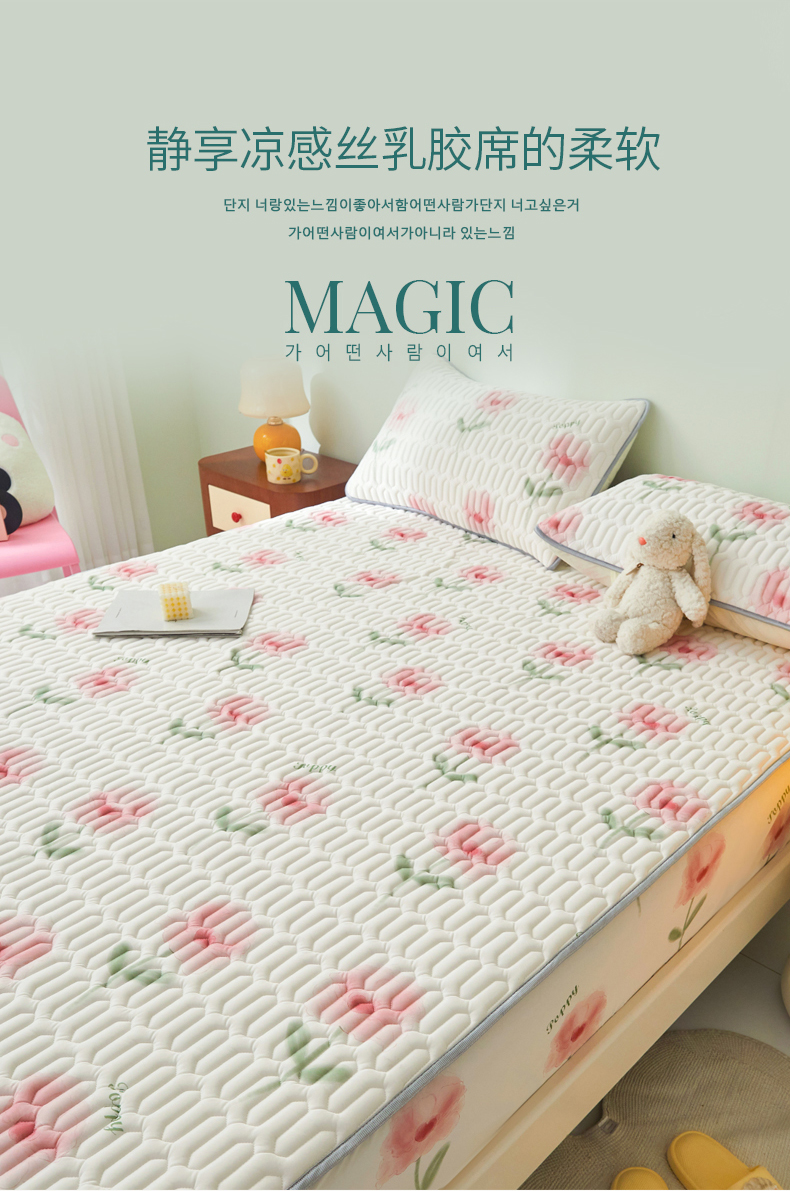 商品名称:LIFE.丽芙 2024年新品0.4乳胶凉席加厚床笠款三件套+凉感丝夏被可组合四件套-图片一 花语