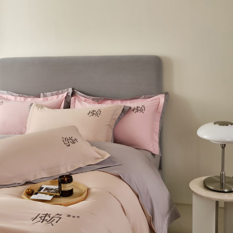 (总)LADYCOCO可可家居 2025新款三开口贡缎夹棉四件套 优易套/U易套 三开口被套,唯一专利发明单位,全球专利布局(控价不低于410元),浅粉+浅灰,浅紫+浅灰,浅灰+卡其