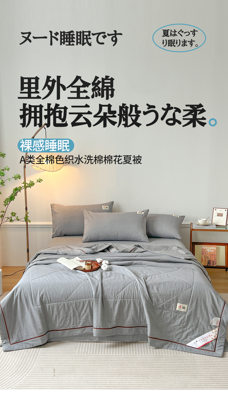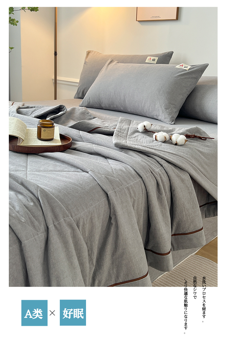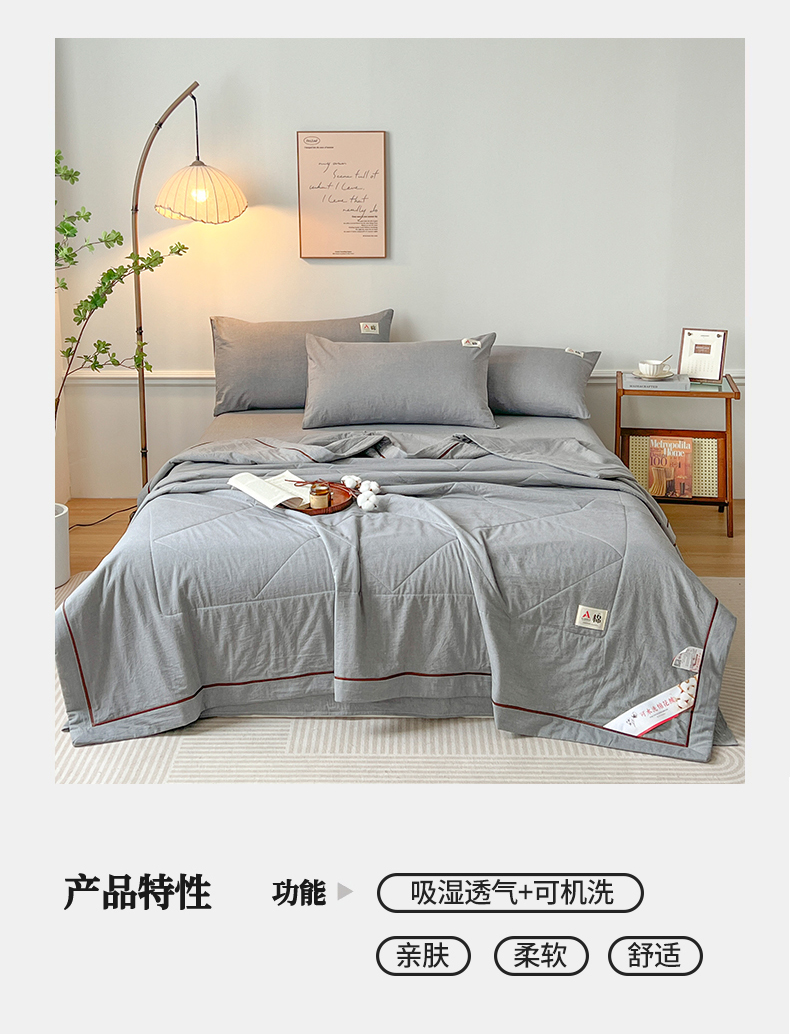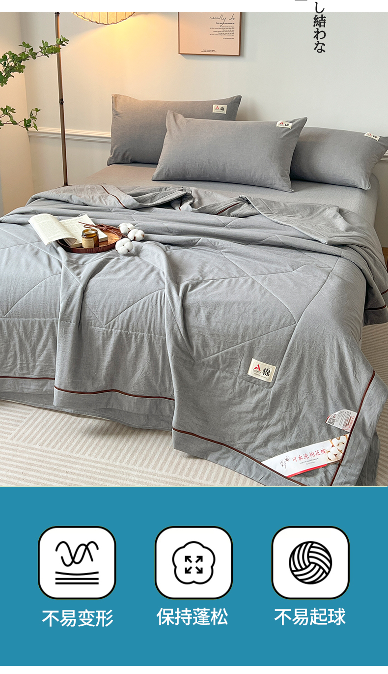 21度C 2024新款A类全棉色织水洗棉棉花夏被 洛卡浅灰