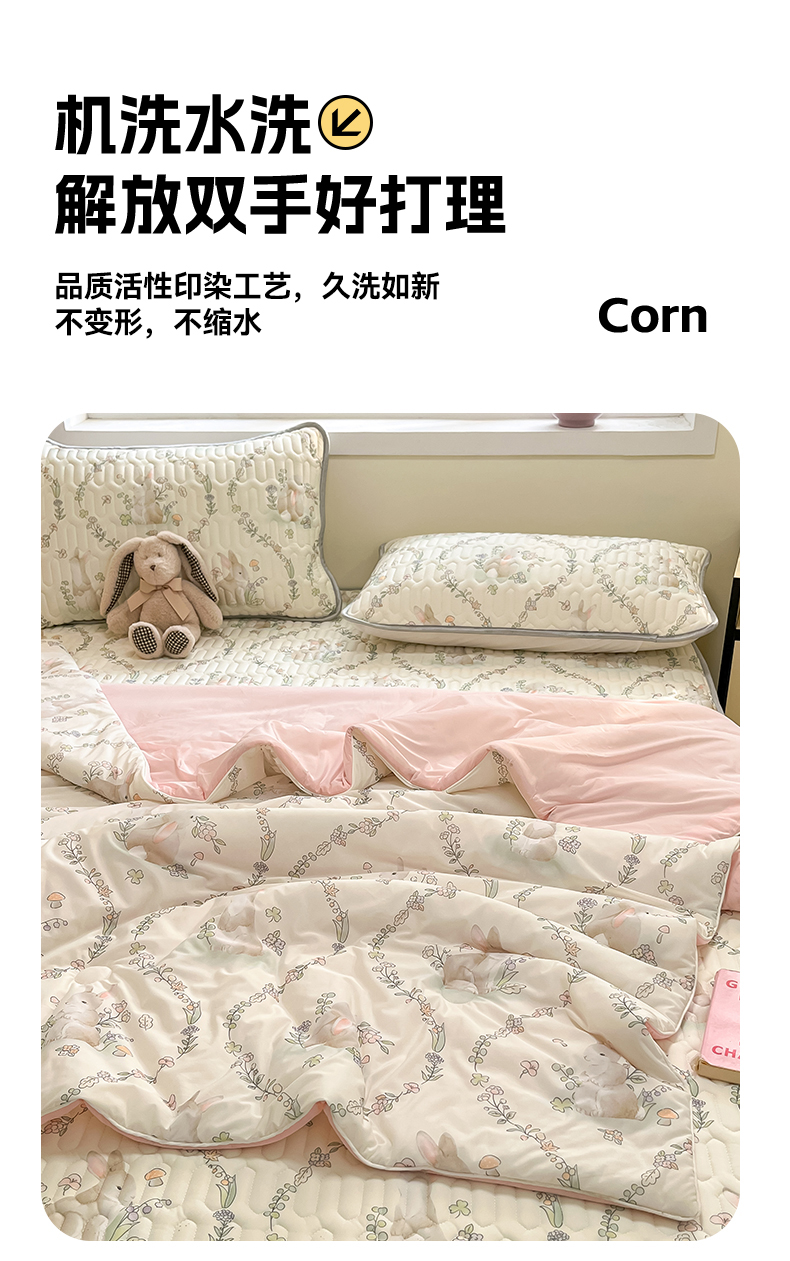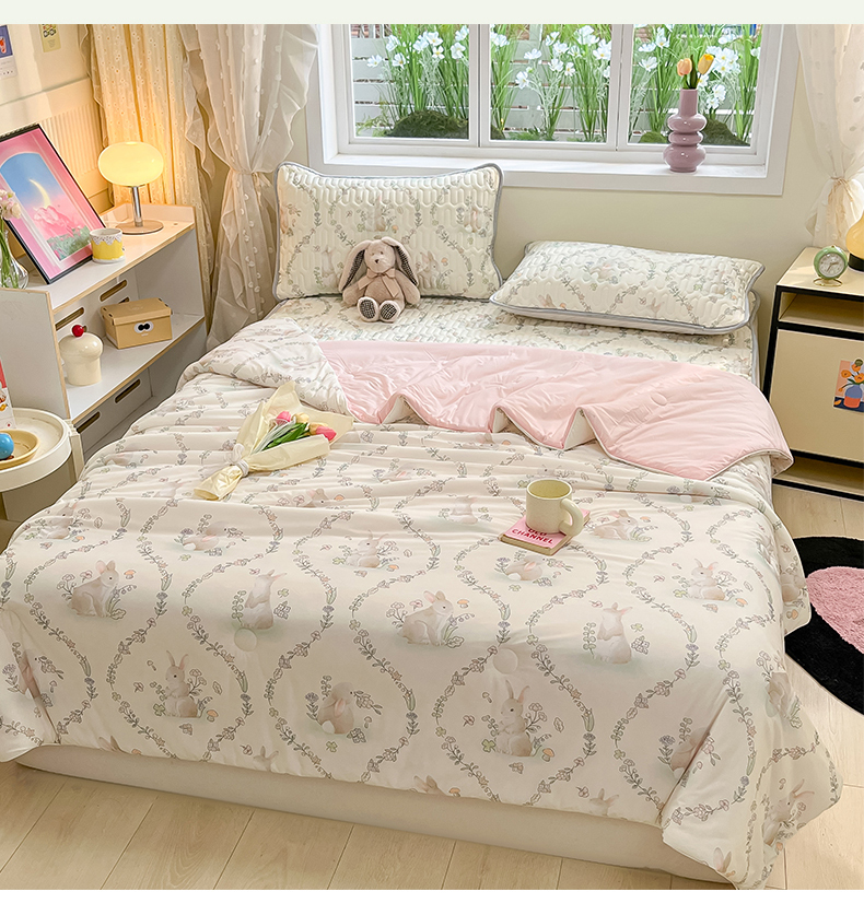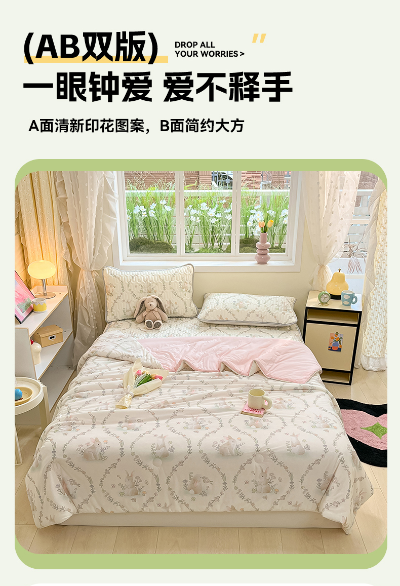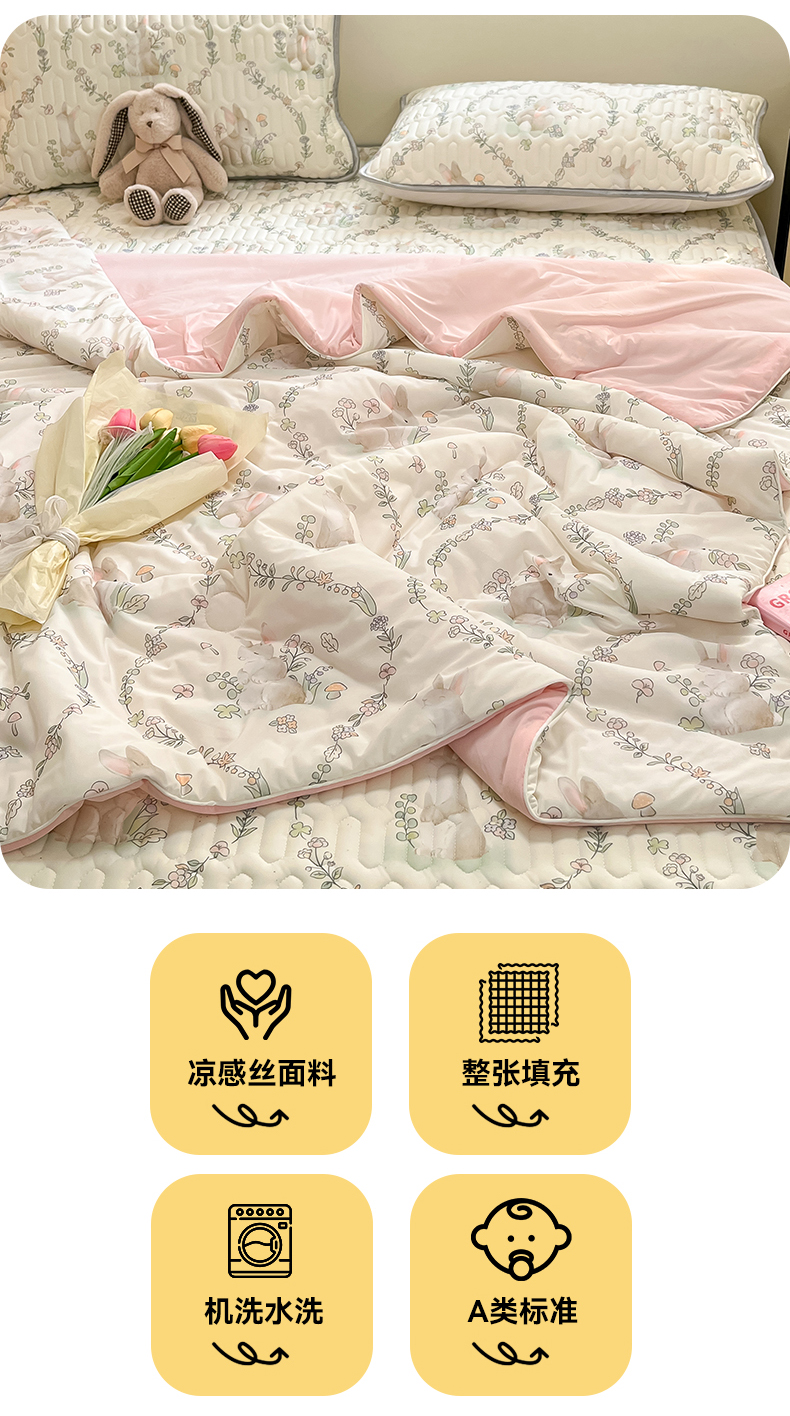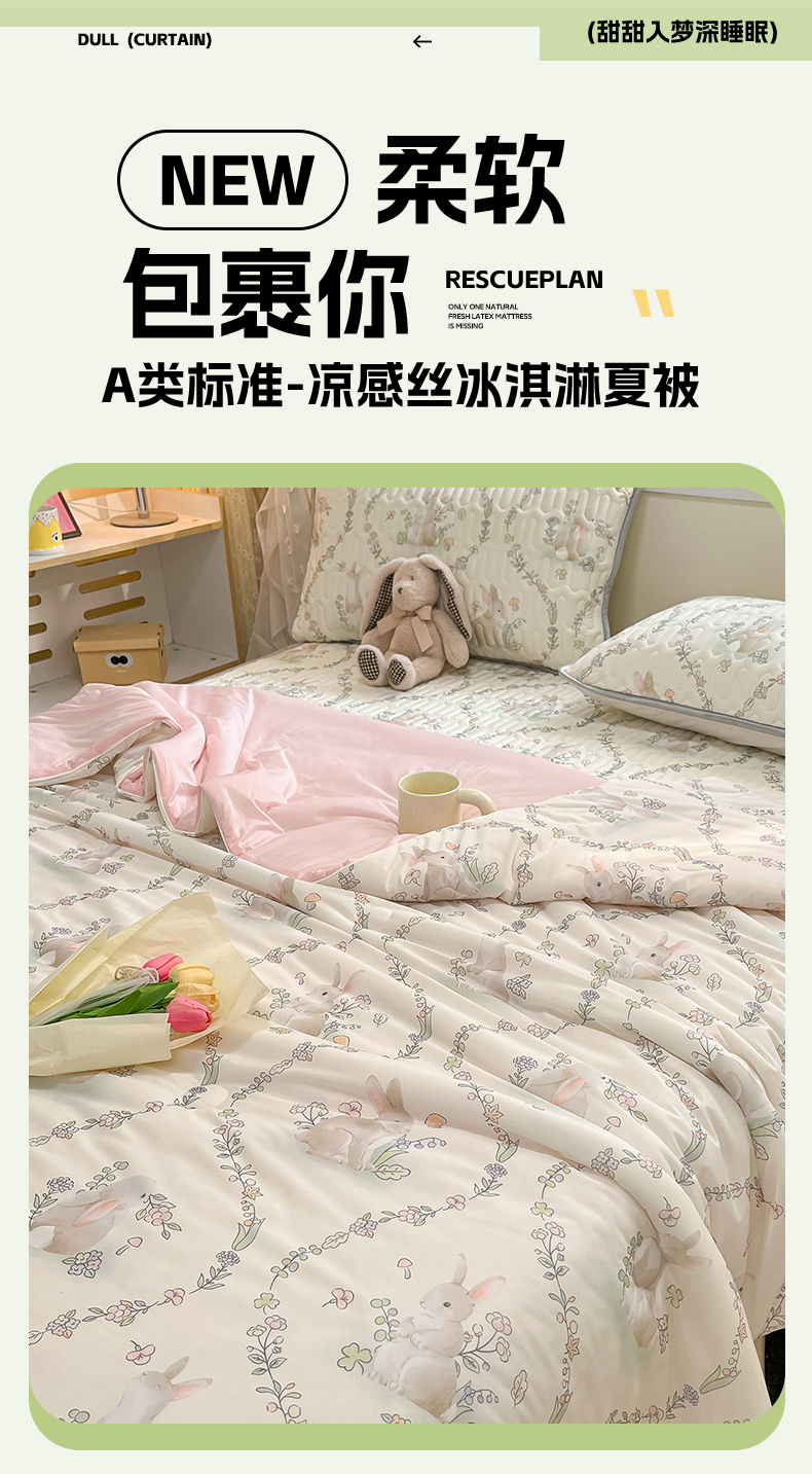 商品名称:古吉梦 2024新款冰激凌凉感丝夏被-小清新 凉感丝夏被-萌兮兔
