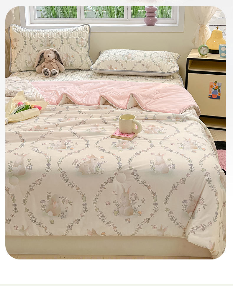 古吉梦 2024新款冰激凌凉感丝夏被-小清新 凉感丝夏被-萌兮兔