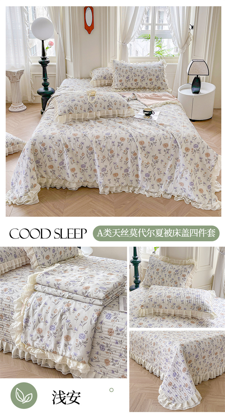 商品名称:宜凡家纺 2024新款莫代尔印花床盖夏被四件套 浅安