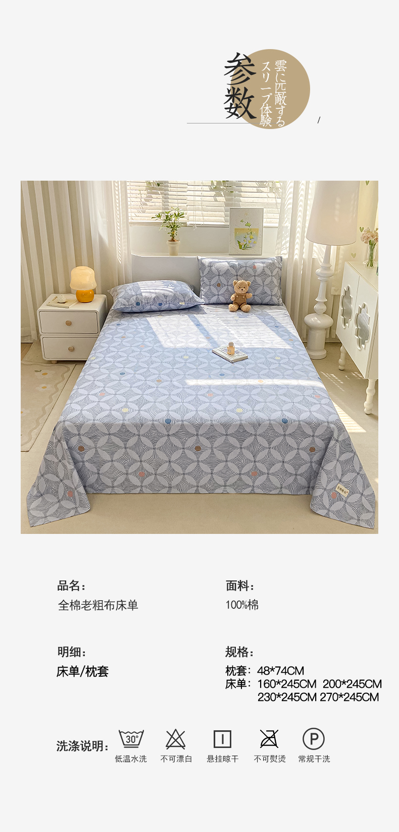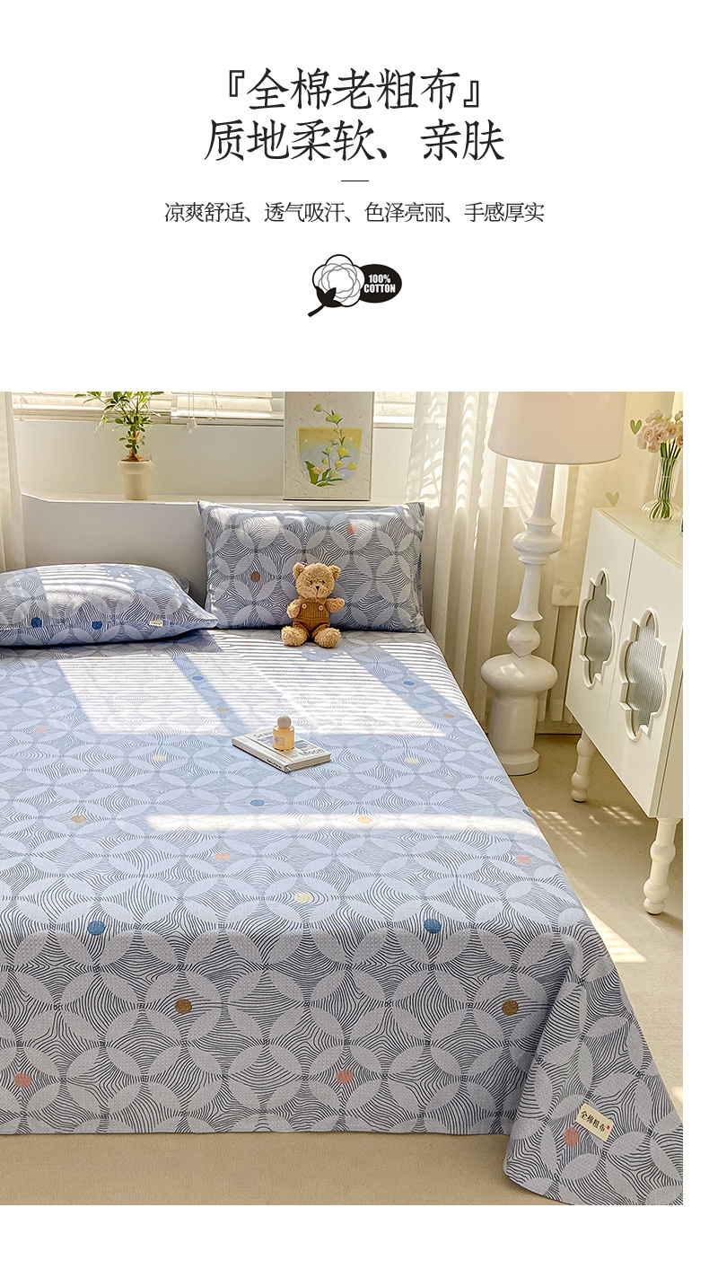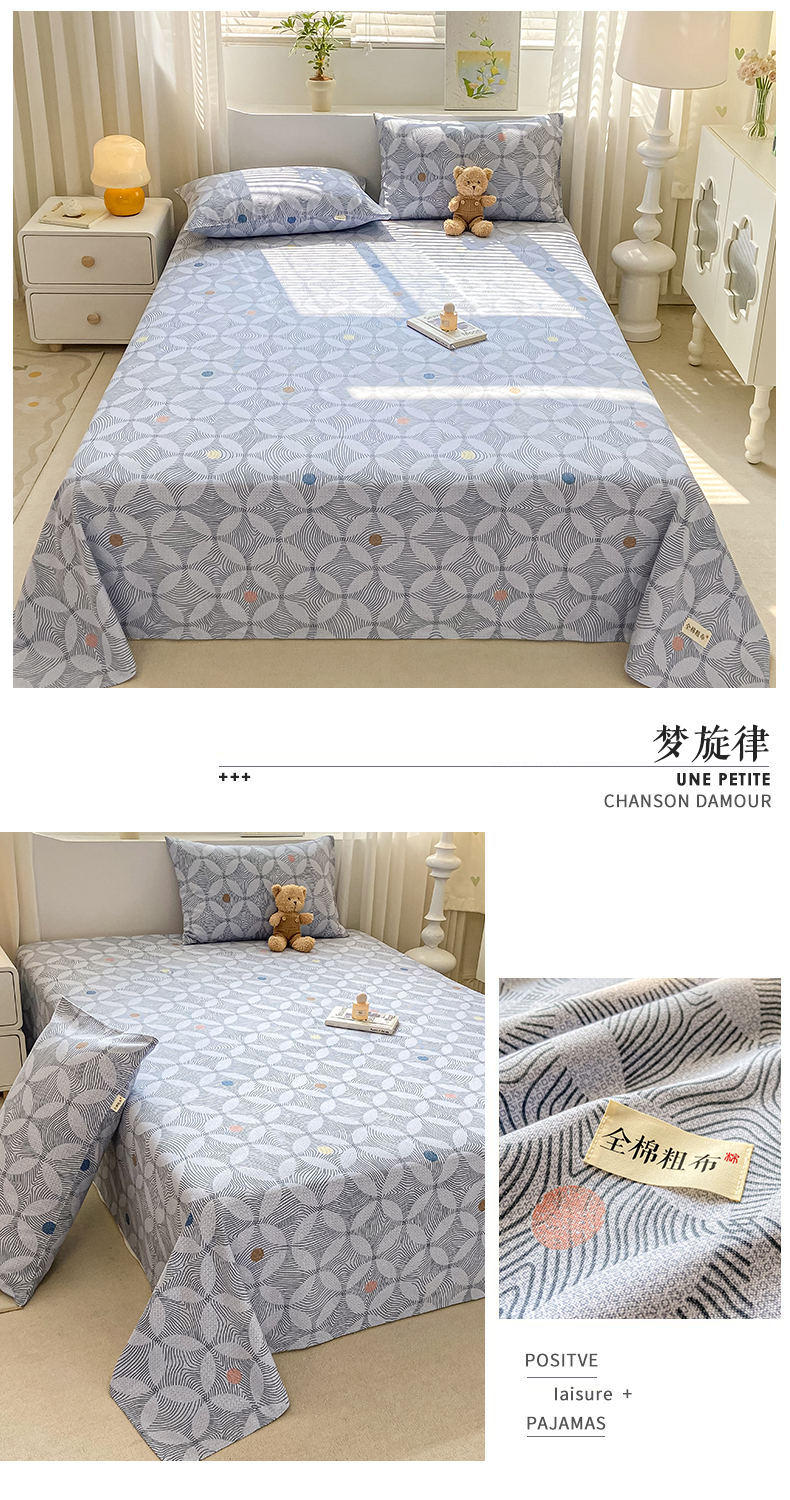 • 91家纺网 家纺一手货源 找家纺 卧趣家纺 2024新品全棉老粗布单品床单床笠系列-单品床单系列 梦旋律