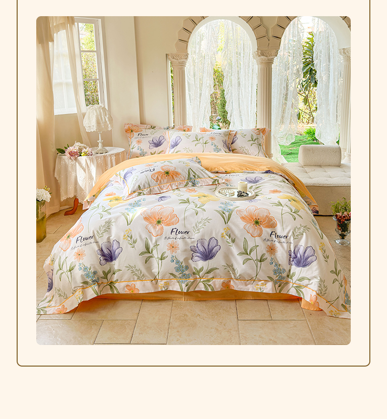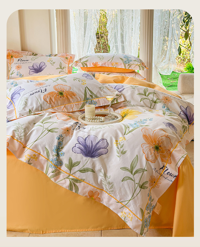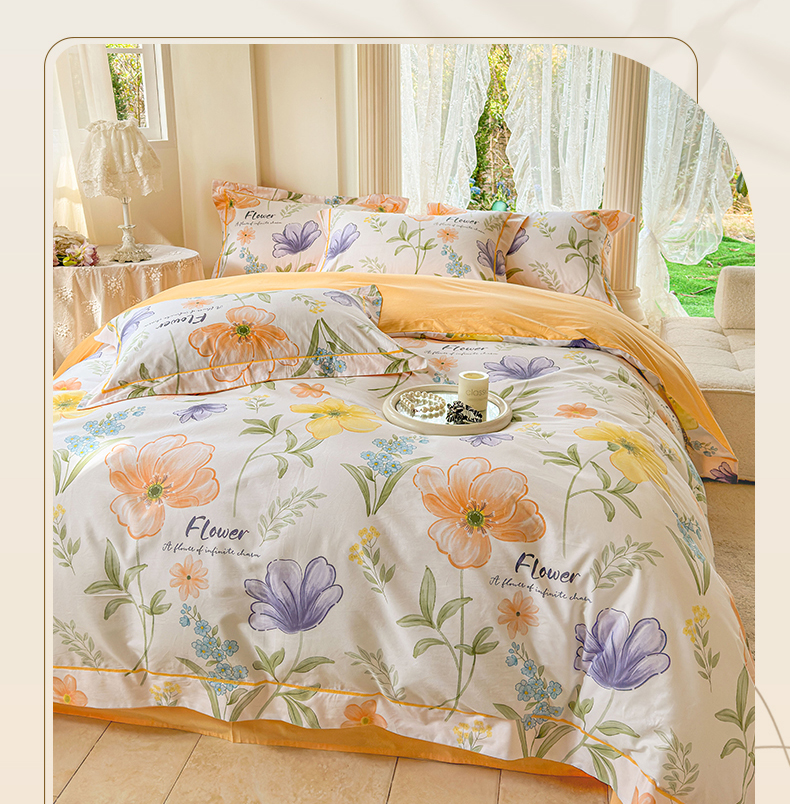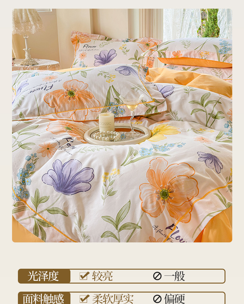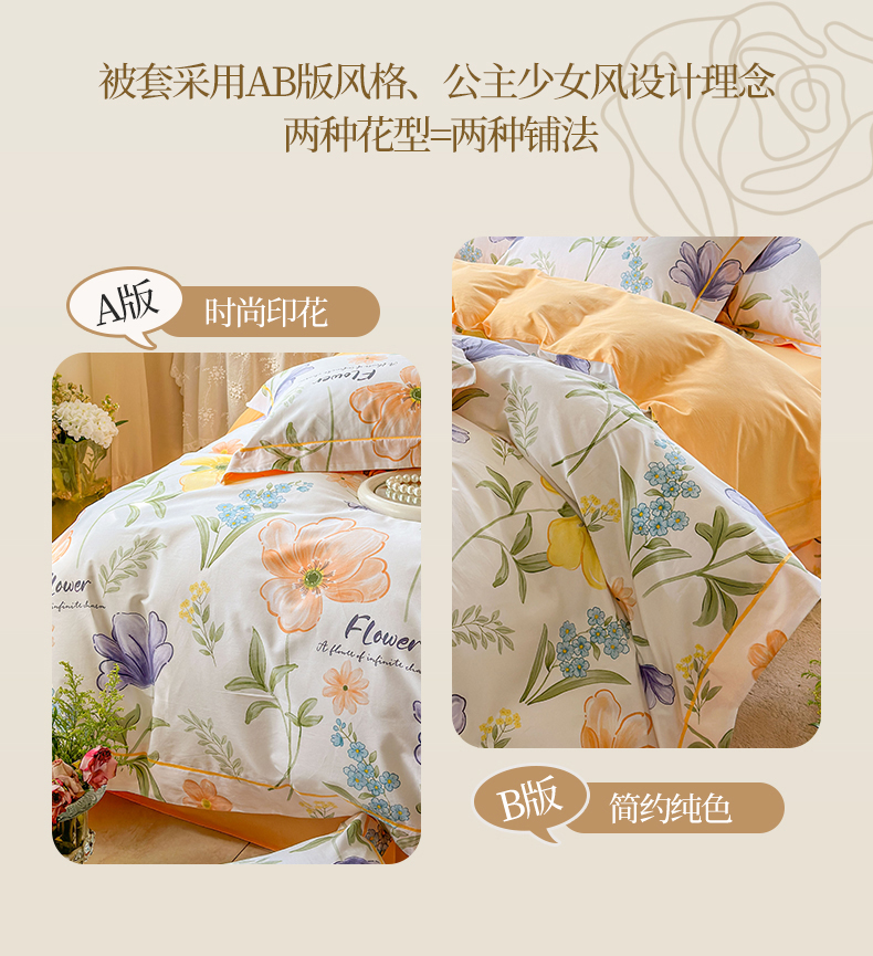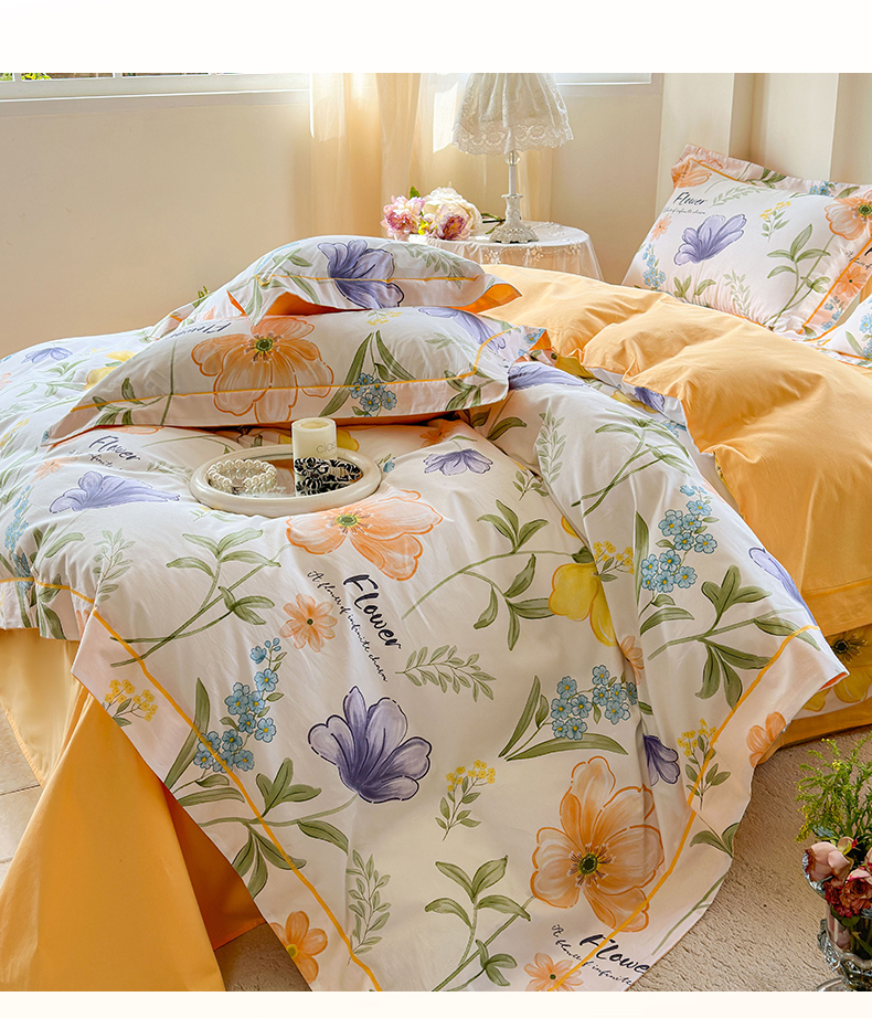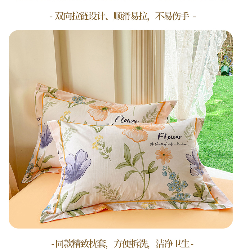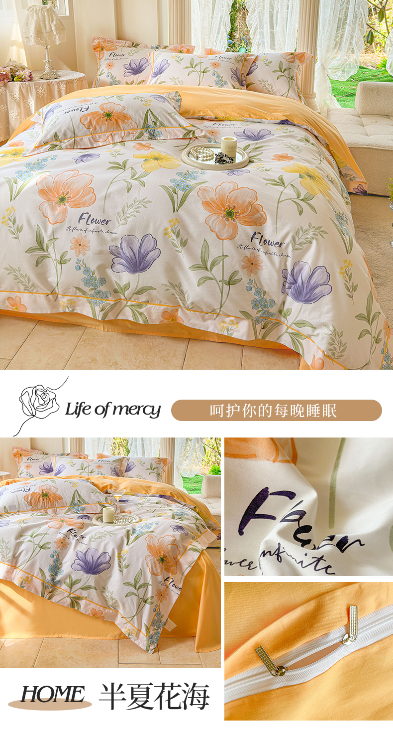 当前位置: 91家纺网 > 商品网购 > 床品套件 > 四件套 > 全棉普通四件套 > 7V 小清新大宽边100%纯棉法式四件套轻奢13376全棉喷气宽幅长绒棉被套床单床笠套件 半夏花海