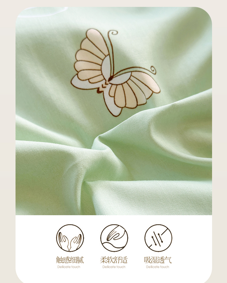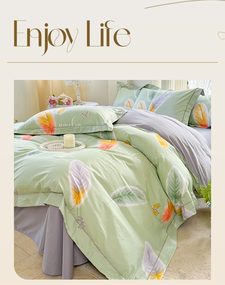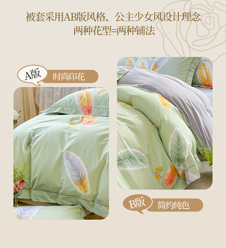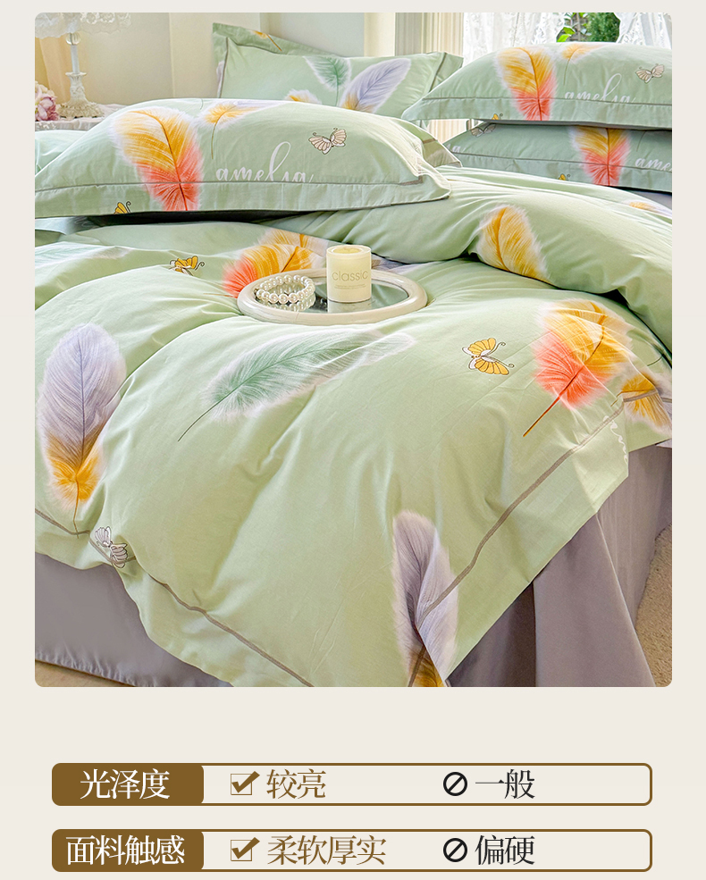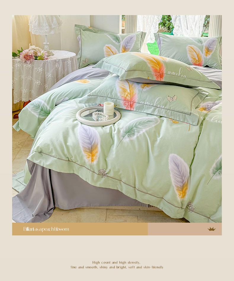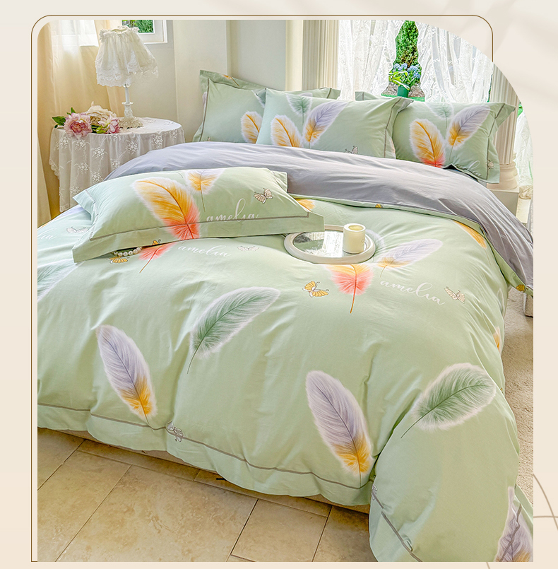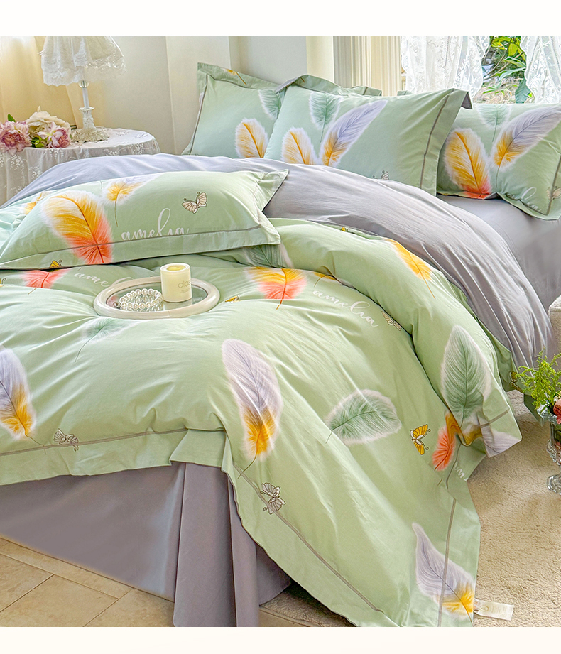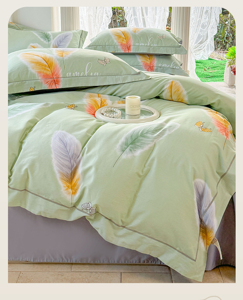 当前位置: 91家纺网 > 商品网购 > 床品套件 > 四件套 > 全棉普通四件套 > 7V 小清新大宽边100%纯棉法式四件套轻奢13376全棉喷气宽幅长绒棉被套床单床笠套件 雨蝶-绿