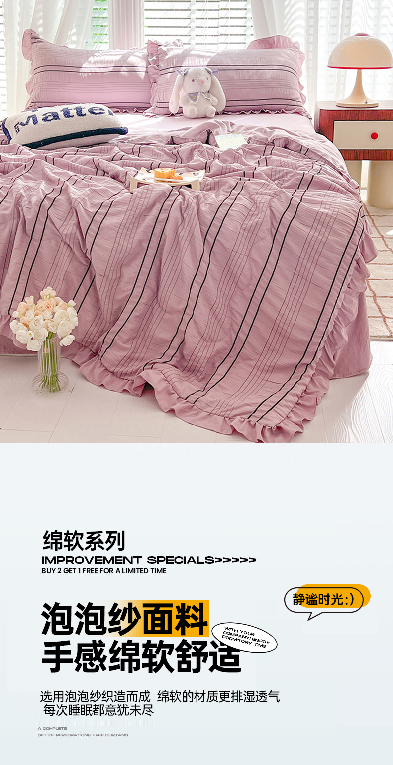 (总)满座家居 2025新款亲肤舒适小清新泡泡棉提花床盖四件套,繁花,漫花语,沐歌,俏佳人,秋水伊人,小美好,小樱桃,心之韵律,紫爱心