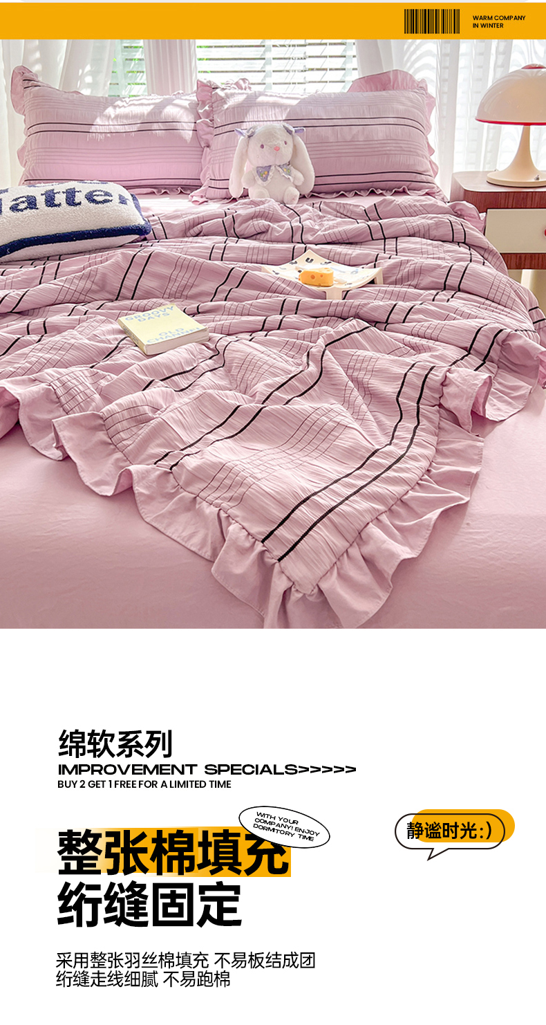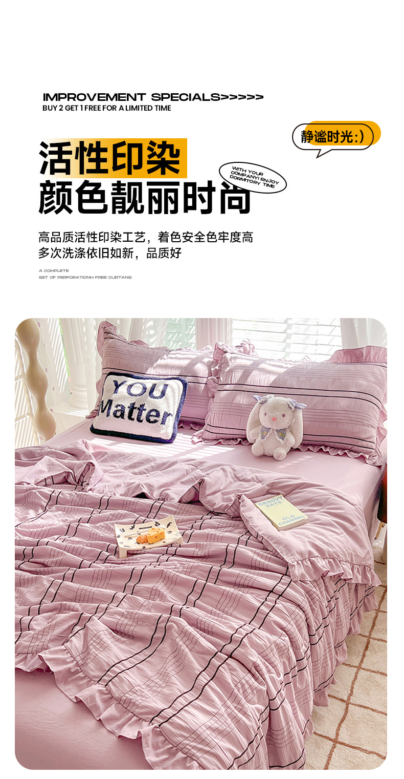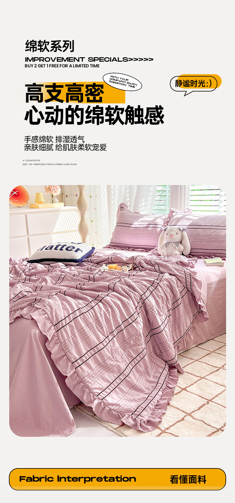 (总)满座家居 2025直播爆款 韩版复古提花公主格四件套 亲肤云朵棉水洗棉四件套,花漾-铂金灰,花漾-淡雅紫,花漾-奶昔黄,花漾-莫妮绿,花漾-月影蓝,花漾-知夏粉