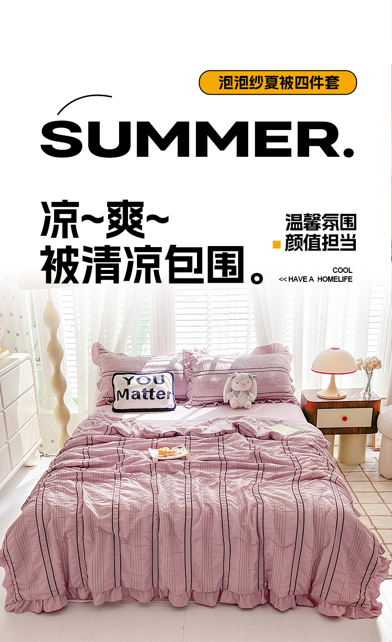 满座家居 2025新款亲肤泡泡纱夏被四件套 云紫