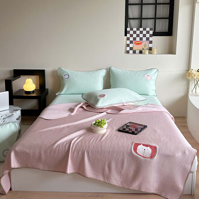 (总)柚子YOUTH 2025新款全棉双层纱贴布绣四件套,棒球熊猫,贝雷帽,冰淇淋小熊,格子玩偶,碎花小兔,小黑猫