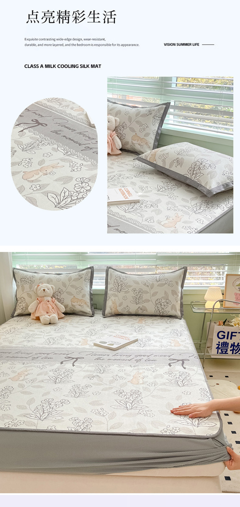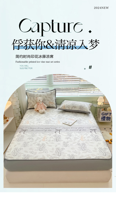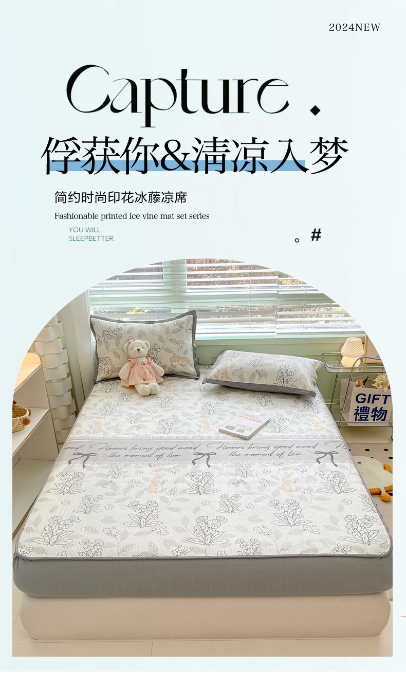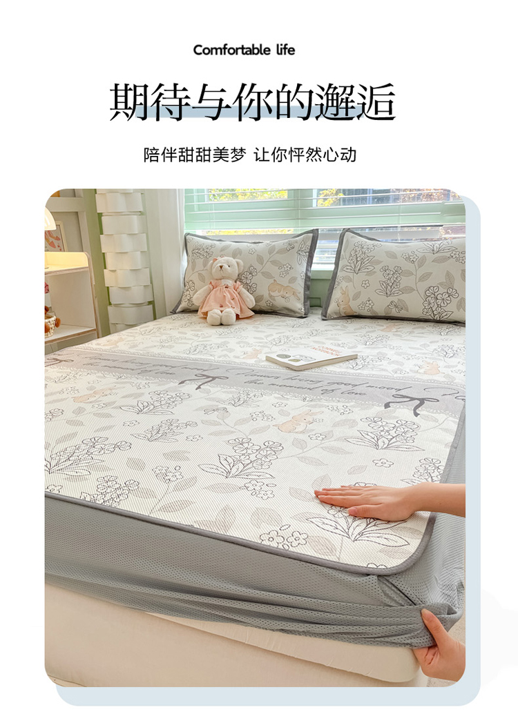 沐慕 2024新款小清新印花冰藤床笠系列 床笠-秘境花园