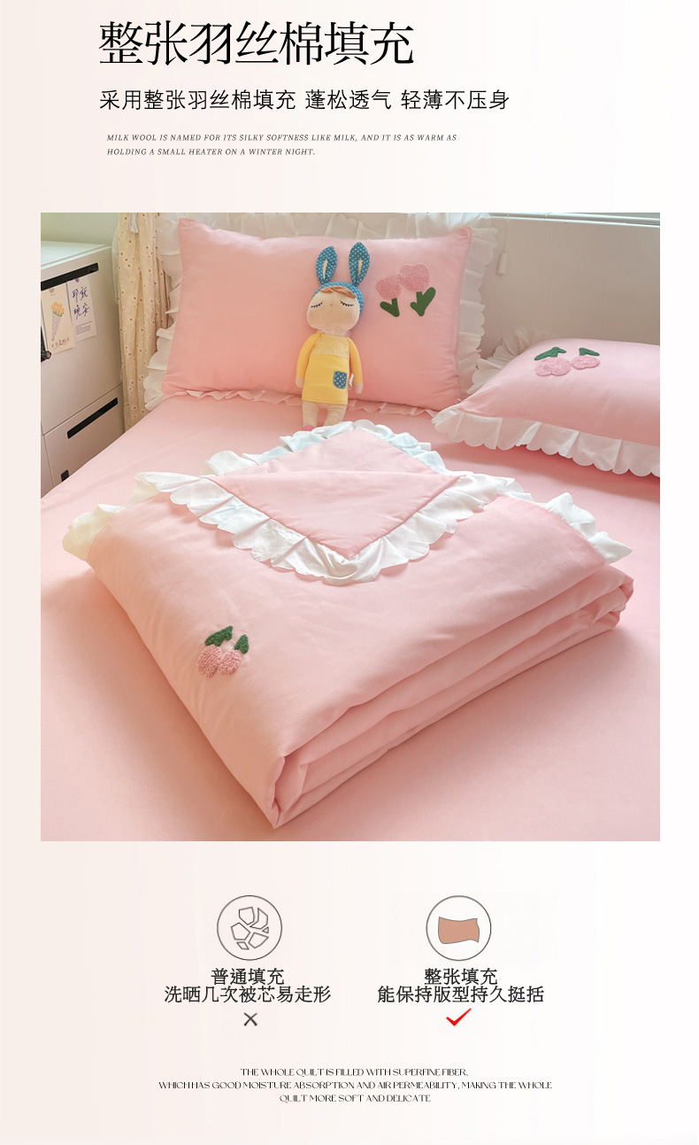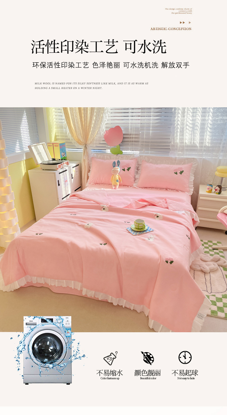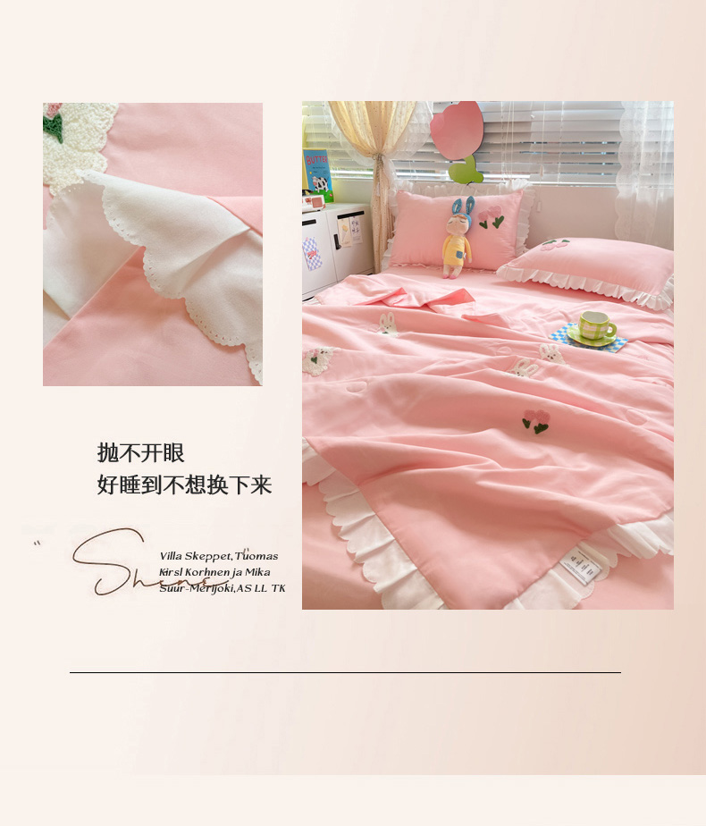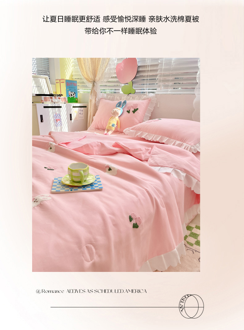 沐慕 2024新款毛巾绣印花夏被四件套 花花白兔-粉
