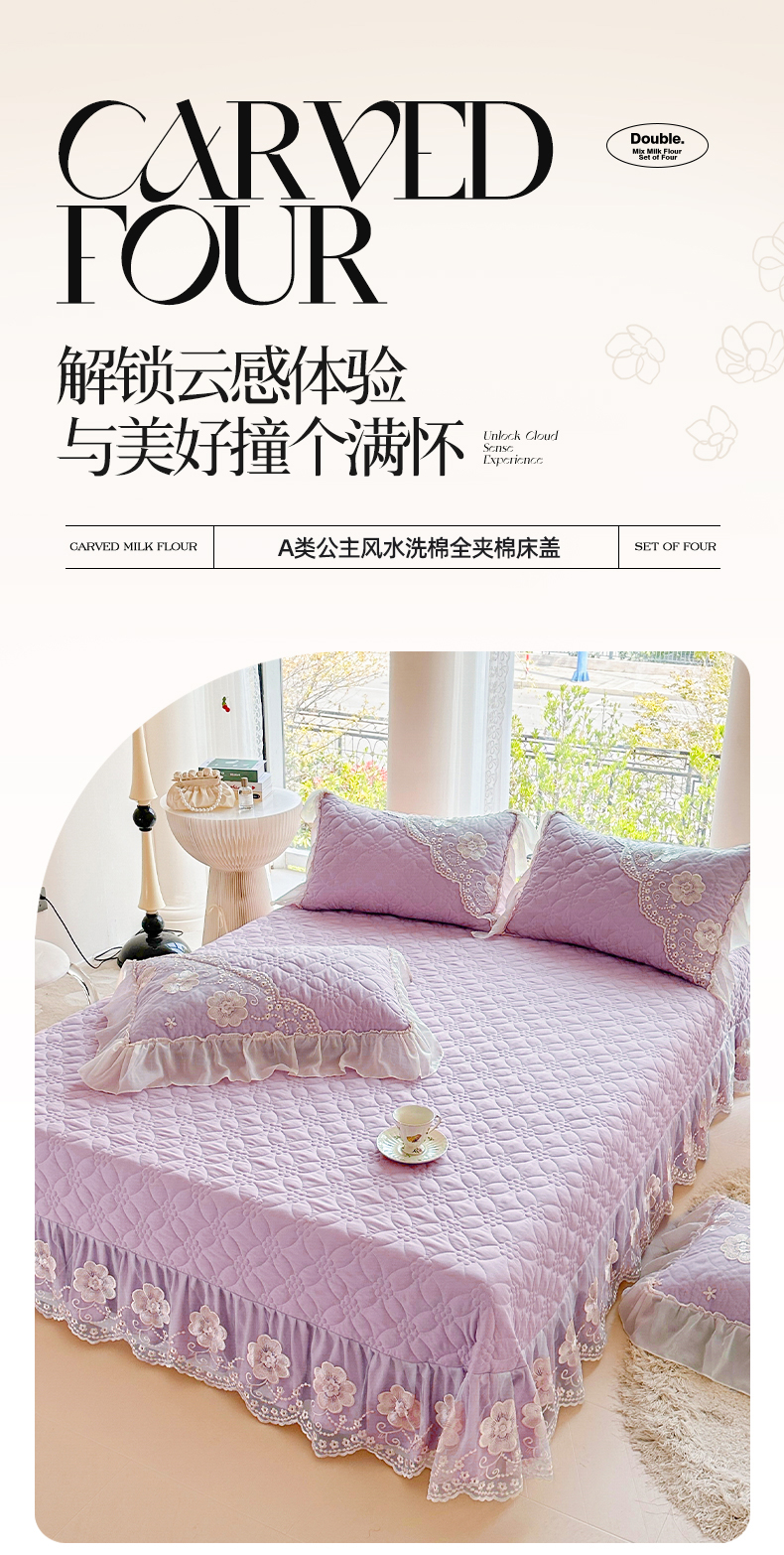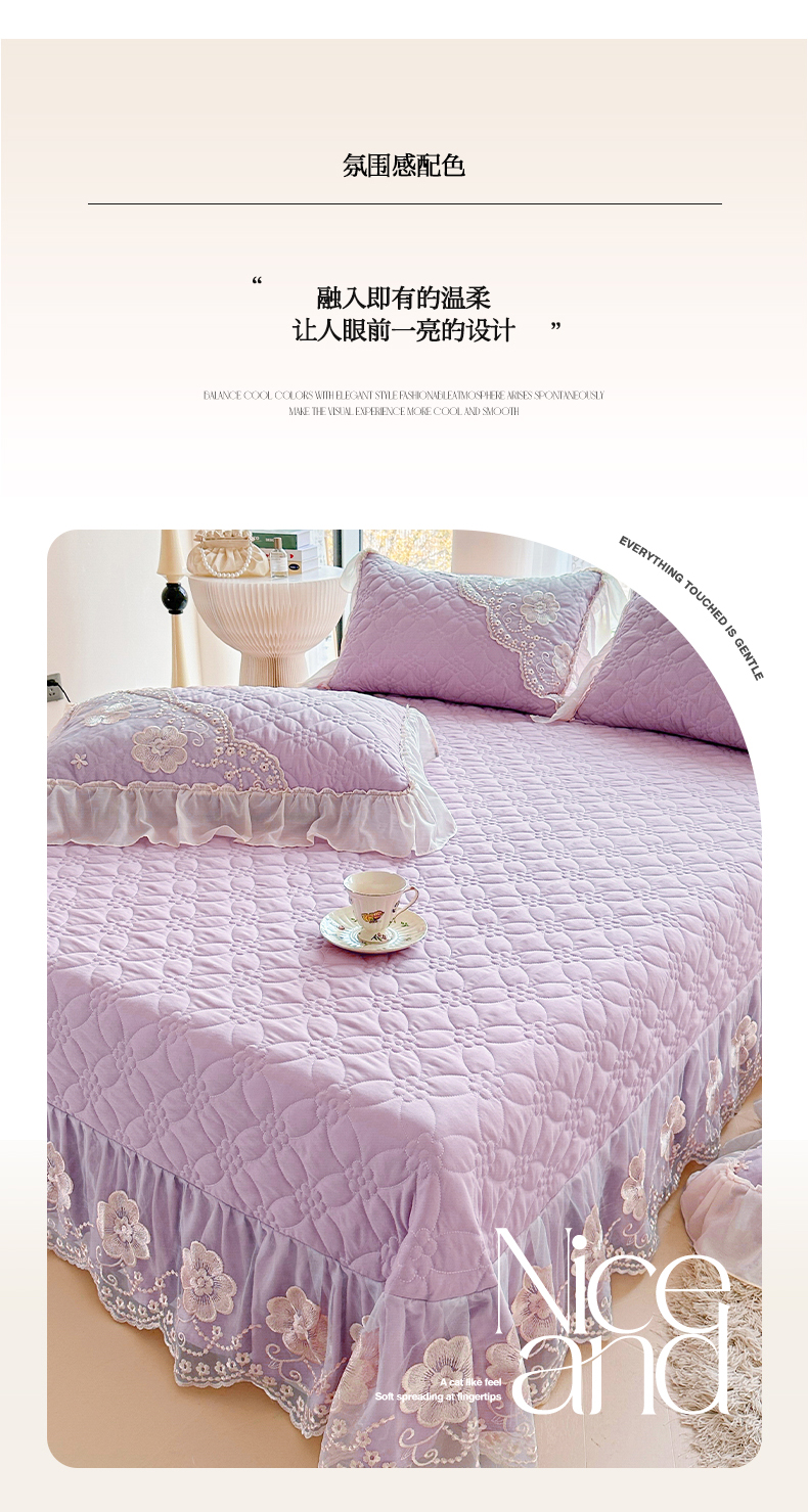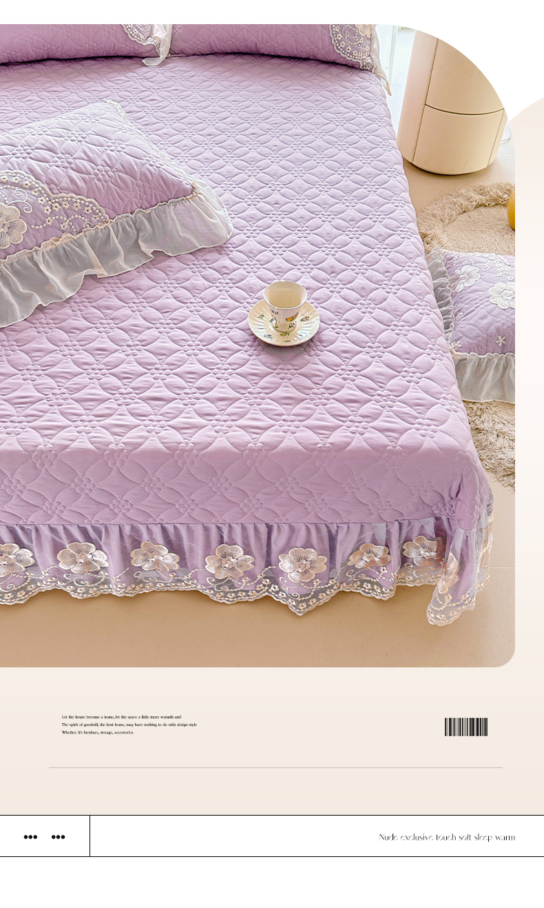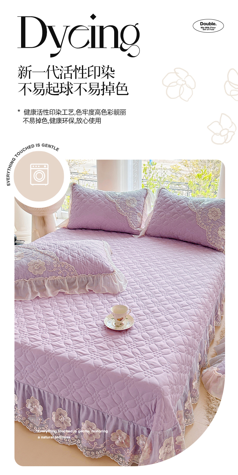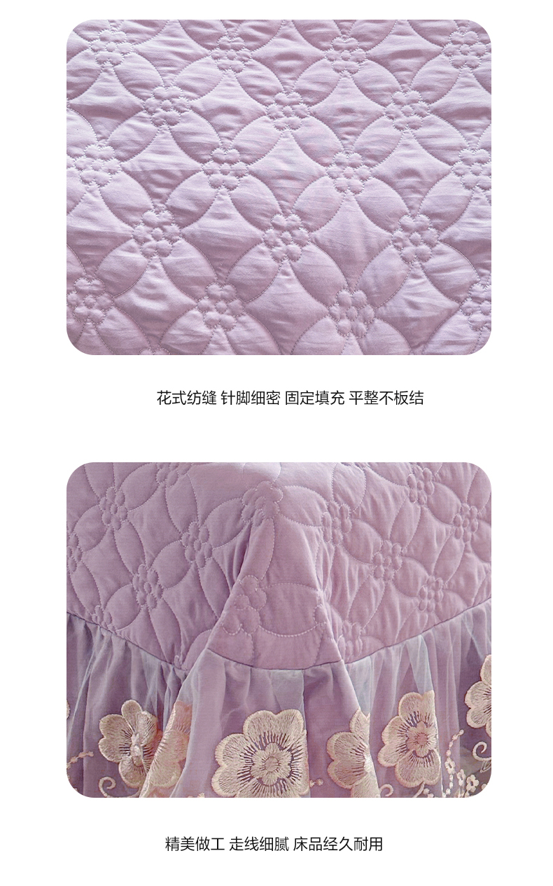 • 91家纺网 家纺一手货源 找家纺 罗艺轩 2024新款公主风水洗棉全夹棉床盖款三件套-盛宴 盛宴-茉莉紫