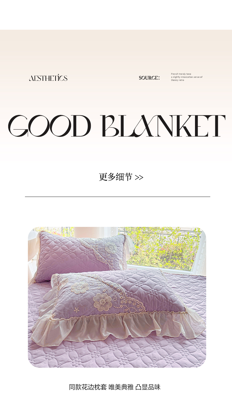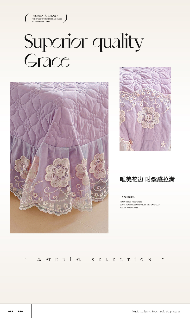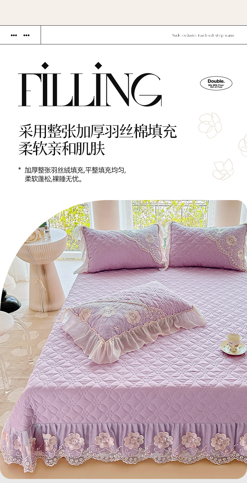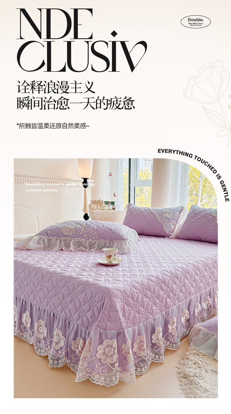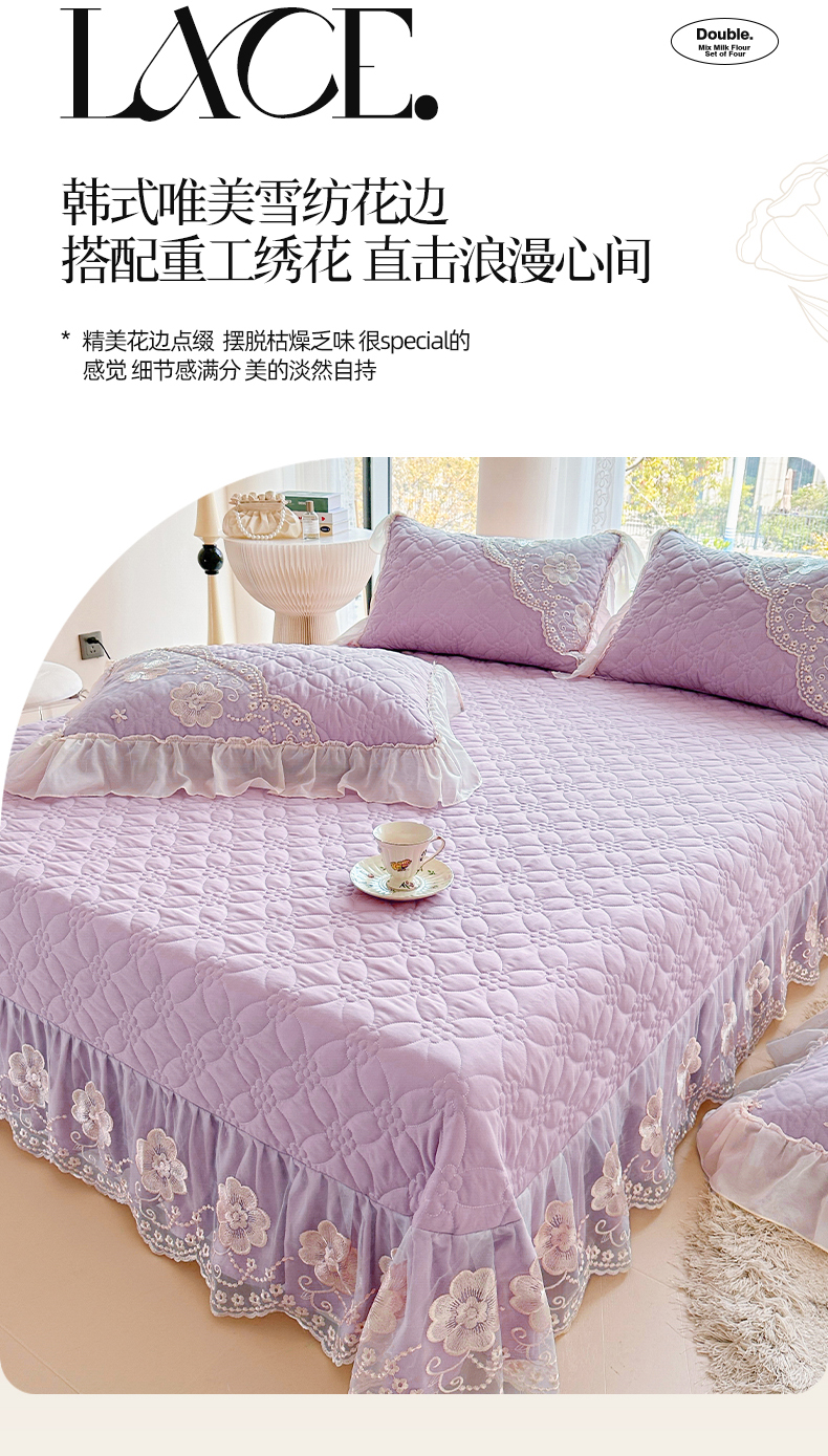 • 91家纺网 家纺一手货源 找家纺 罗艺轩 2024新款公主风水洗棉全夹棉床盖款三件套-盛宴 盛宴-茉莉紫